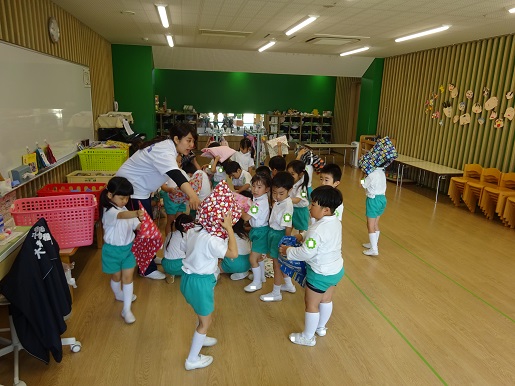 子どもたちはとても喜んで、順番に付けていました♪
