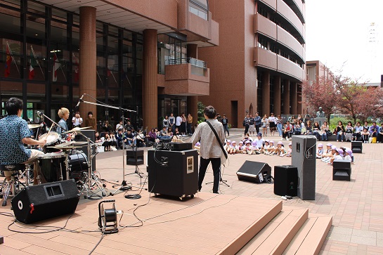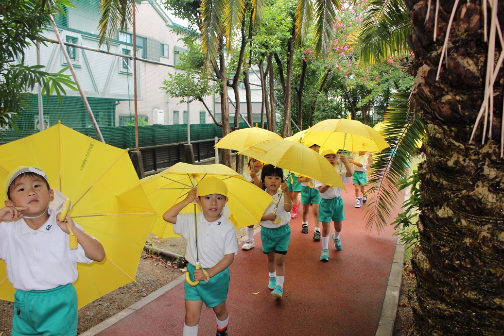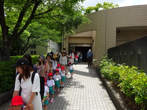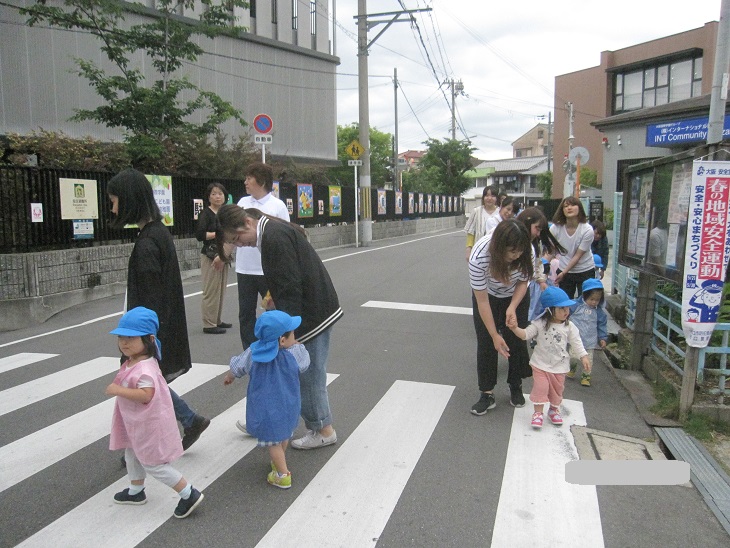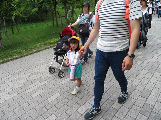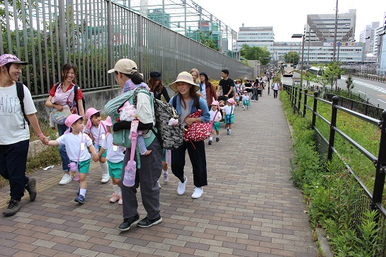 道路を渡ったところにある大学の7号館へみんなで手をつないで行きました。