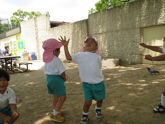 ↑園庭でしゃぼん玉をしました!