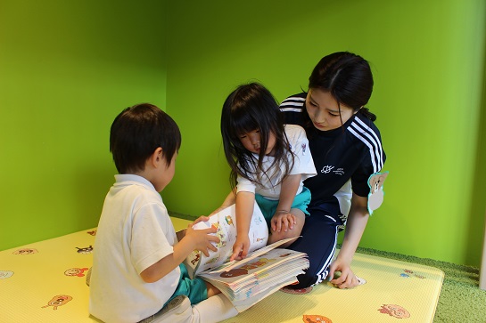 ↑絵本コーナーで絵本の読み聞かせもしています。