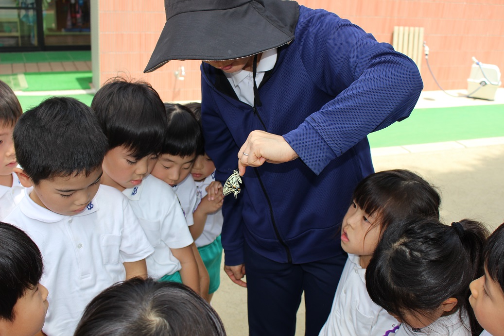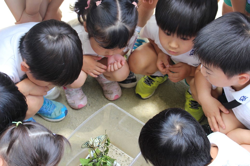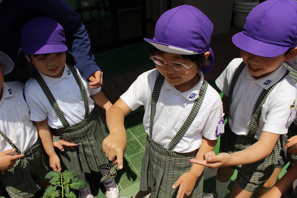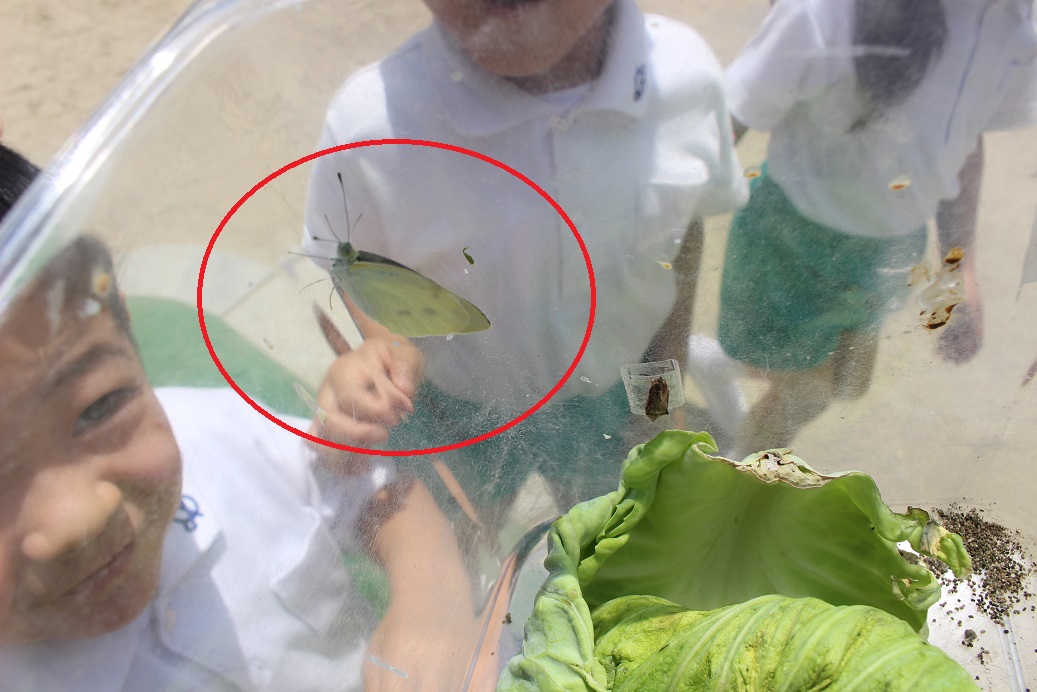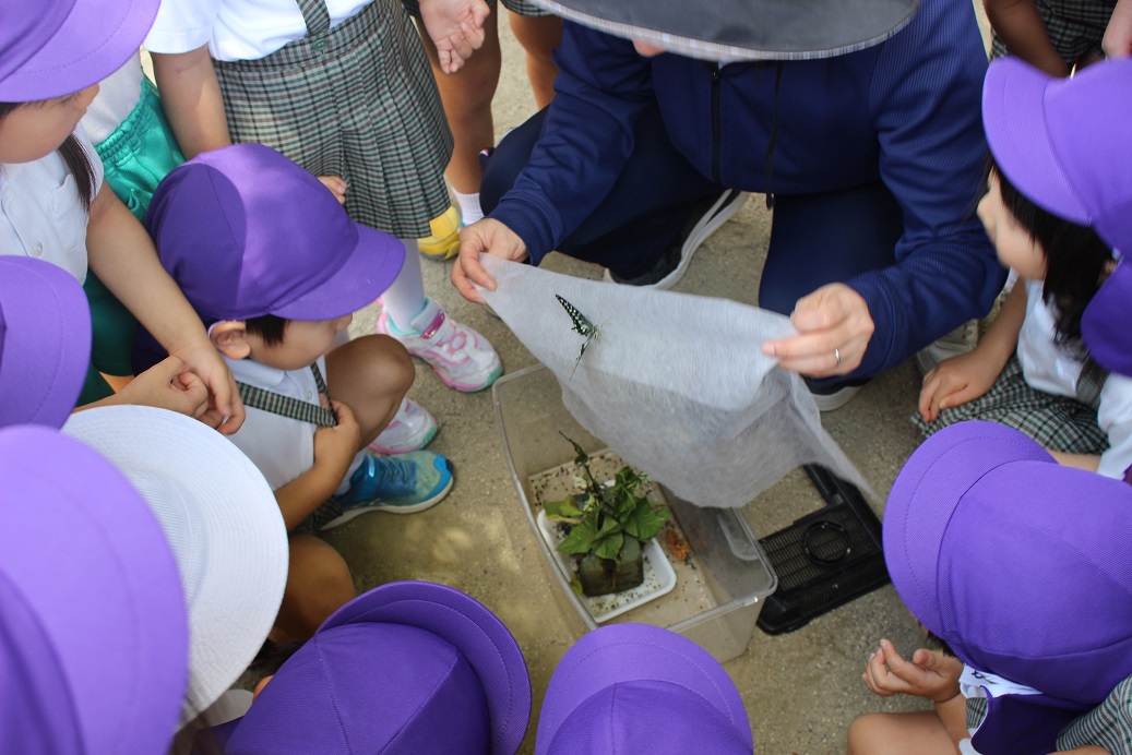 子どもたちが見守ってきたアオムシが蝶になりました!