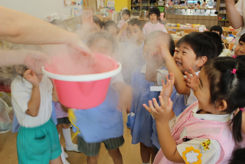 「煙でてきた!」 「すごい!」 「いちごのにおいがするかも!」