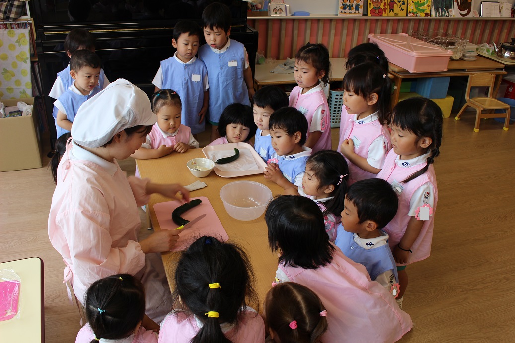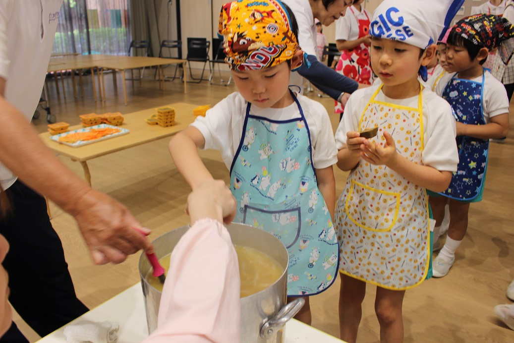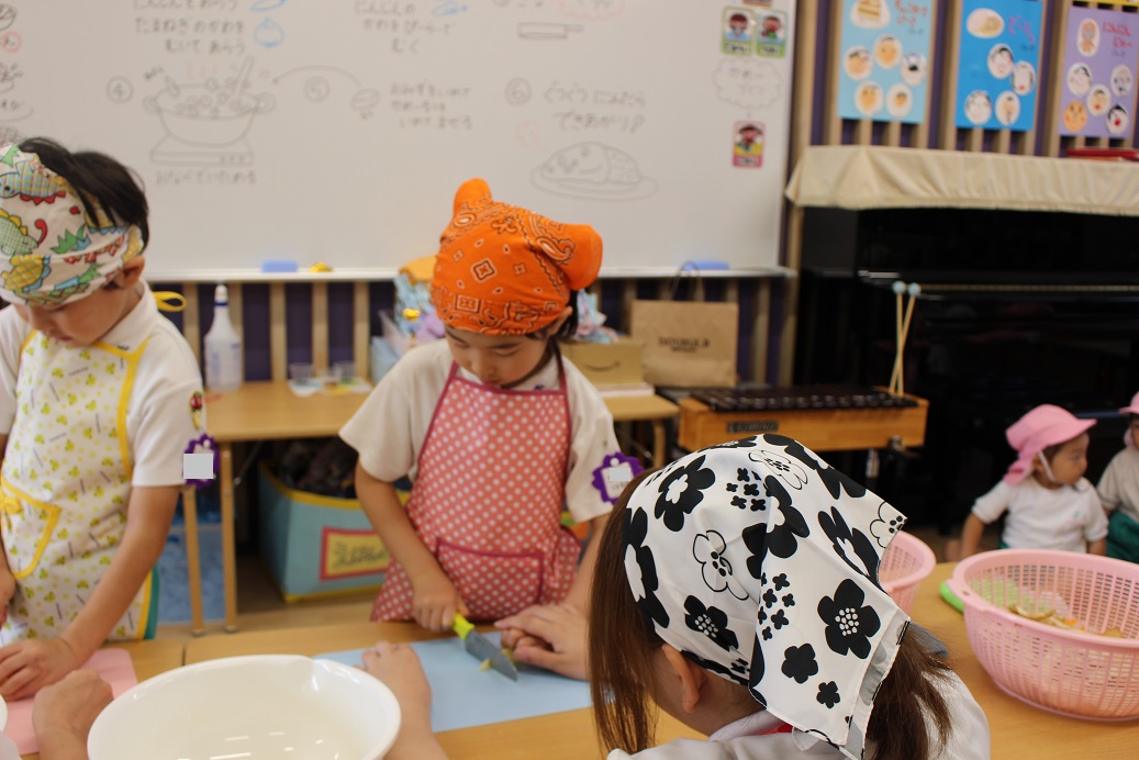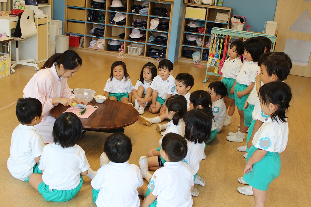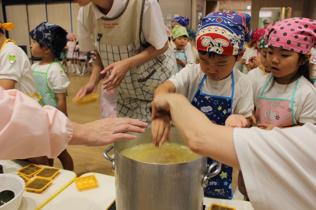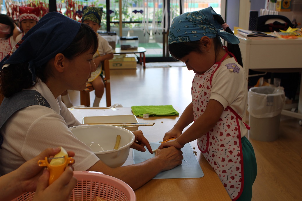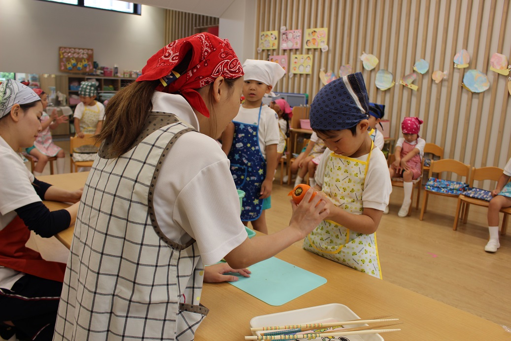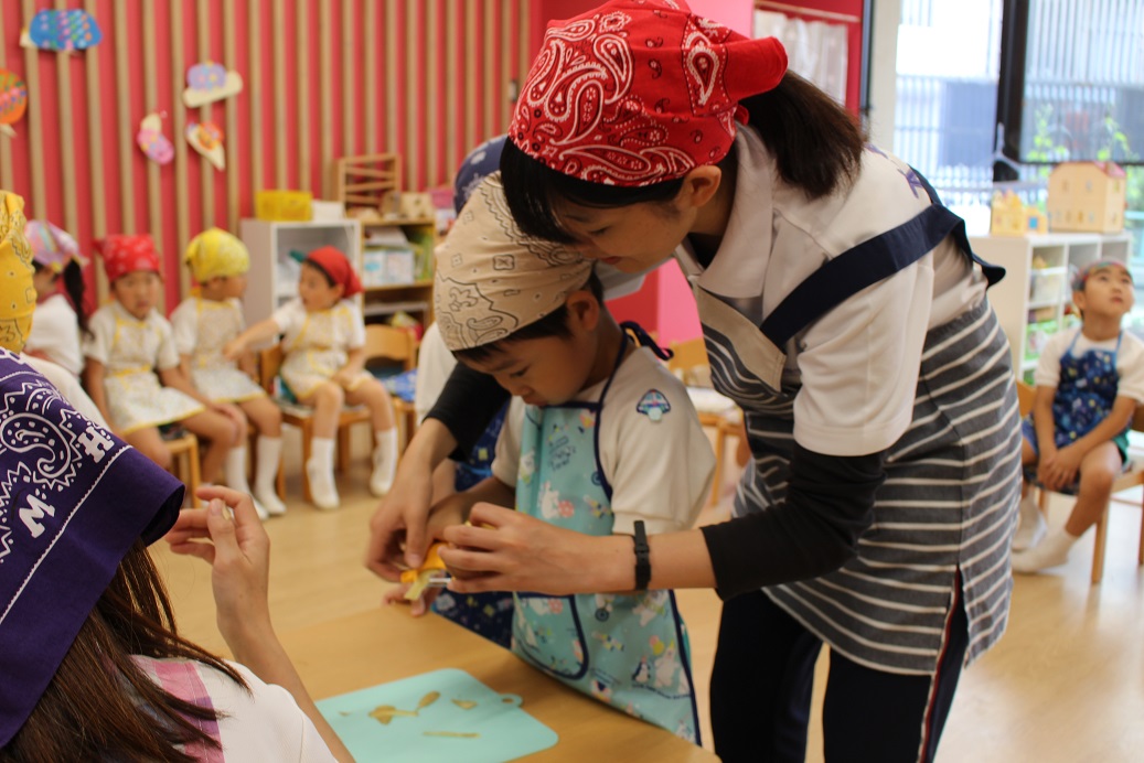 どうやって切るのかを一生懸命見ていた子どもたち。