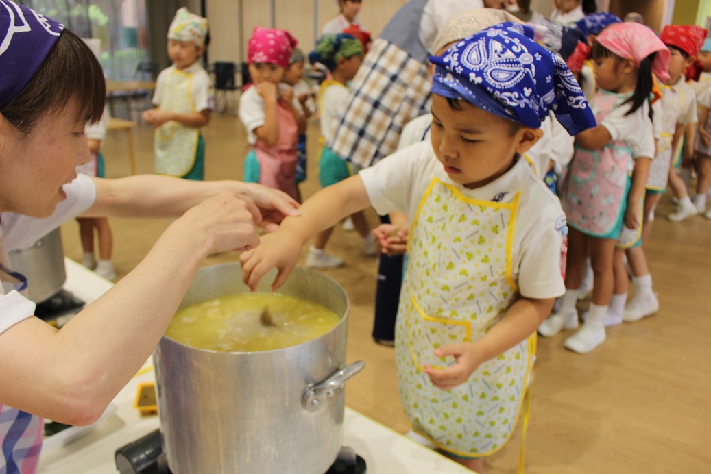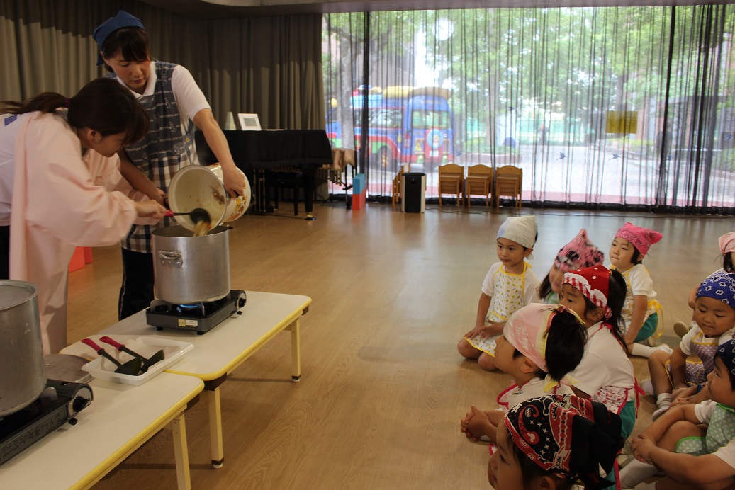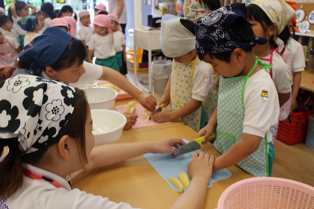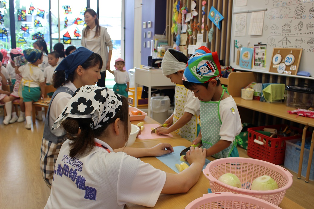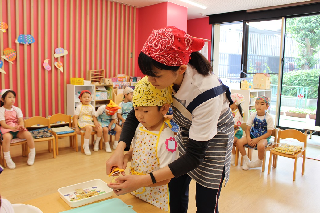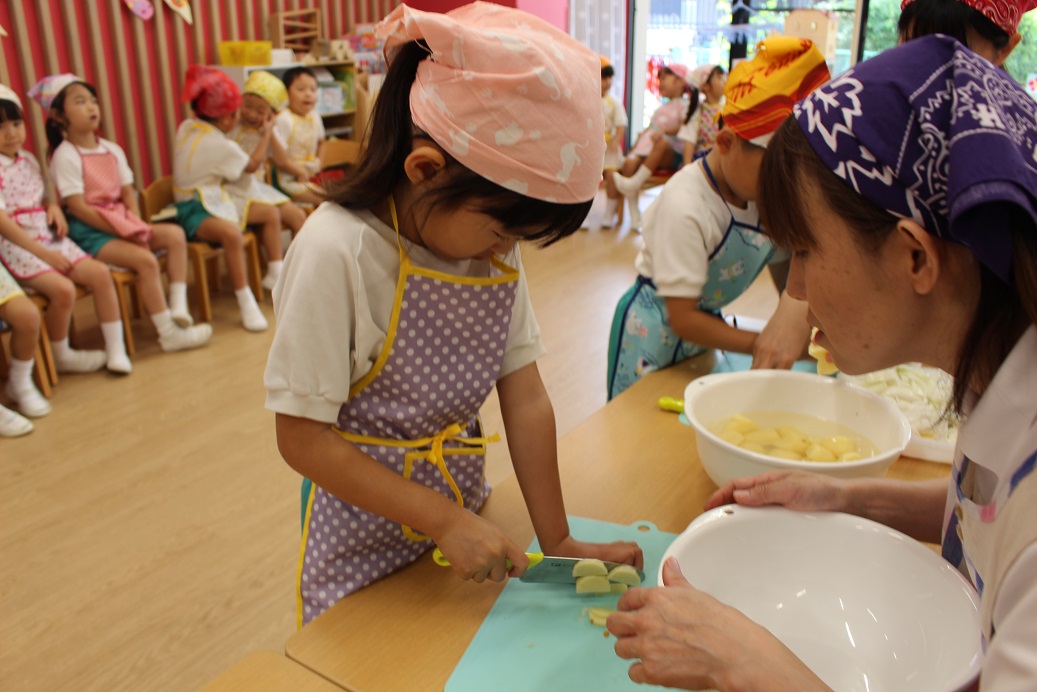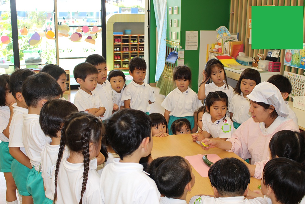 どうやって切るのかを一生懸命見ていた子どもたち。
