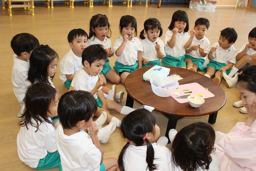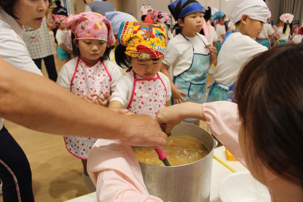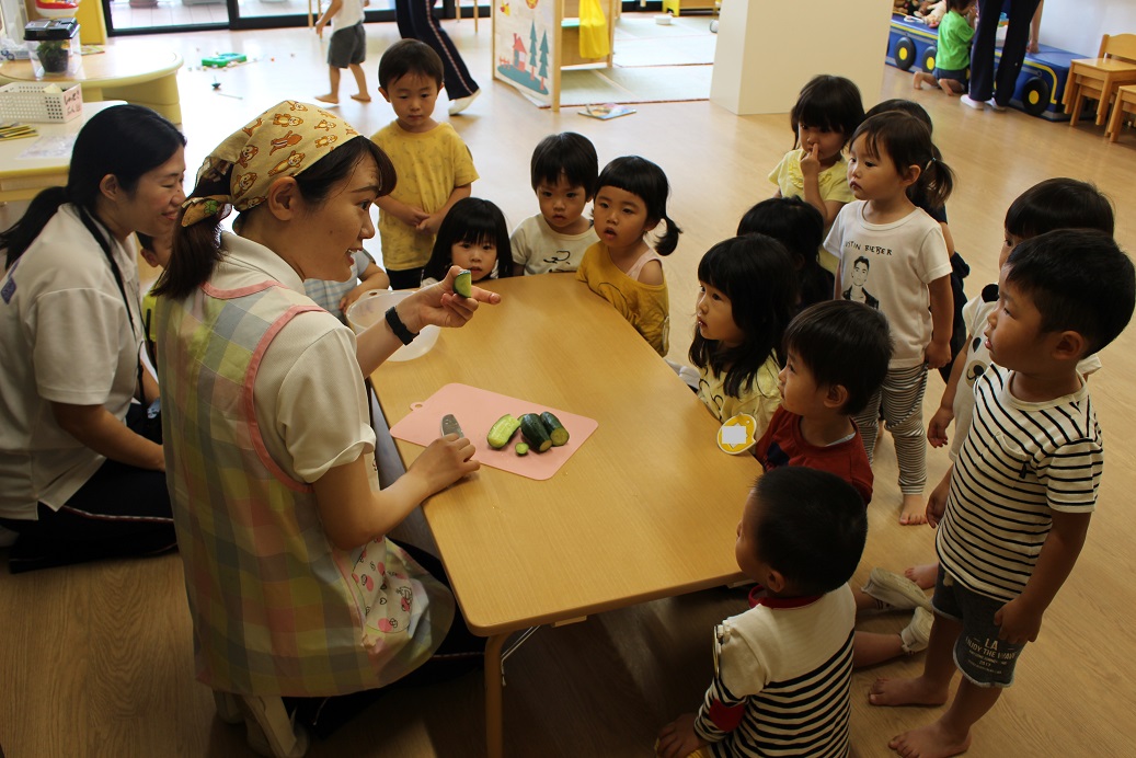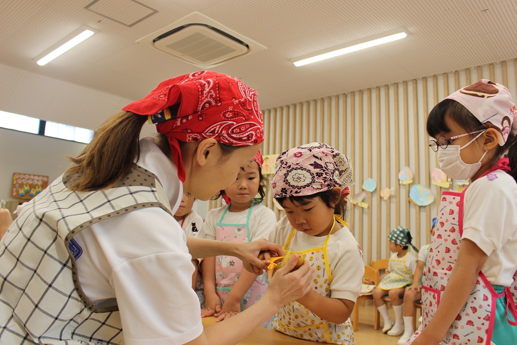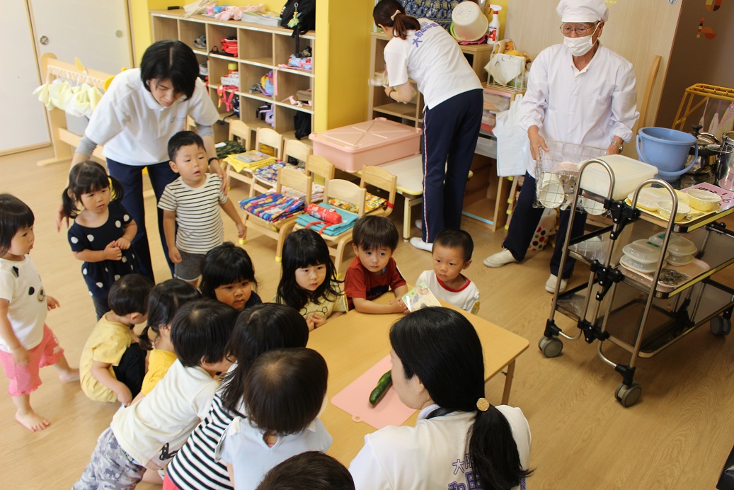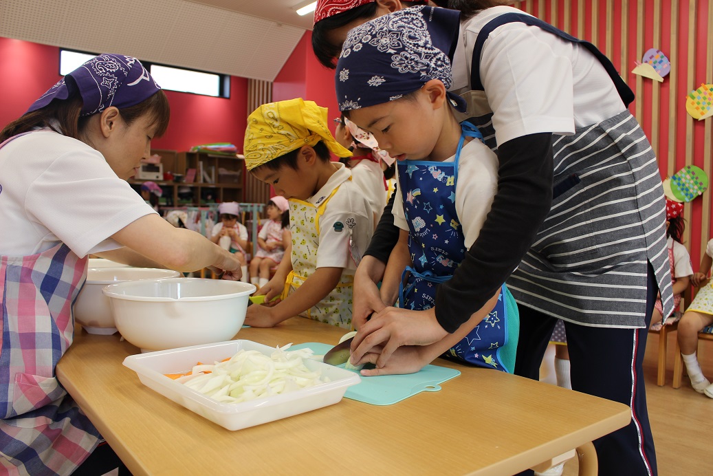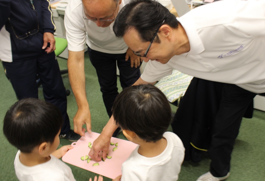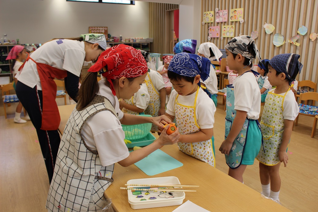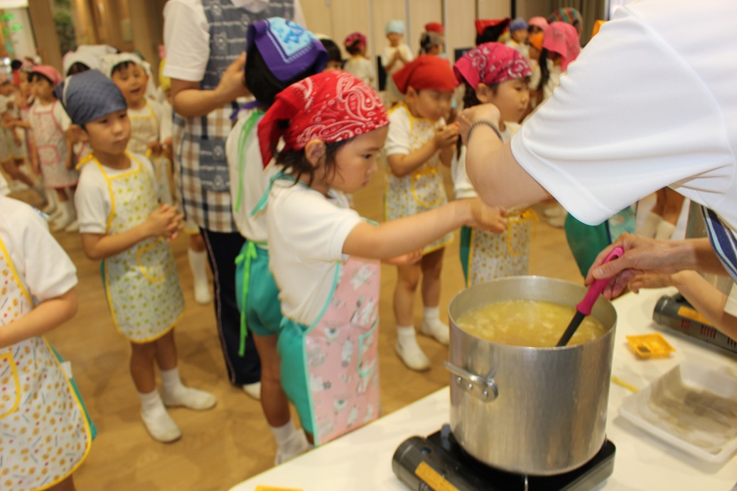 どうやって切るのかを一生懸命見ていた子どもたち。