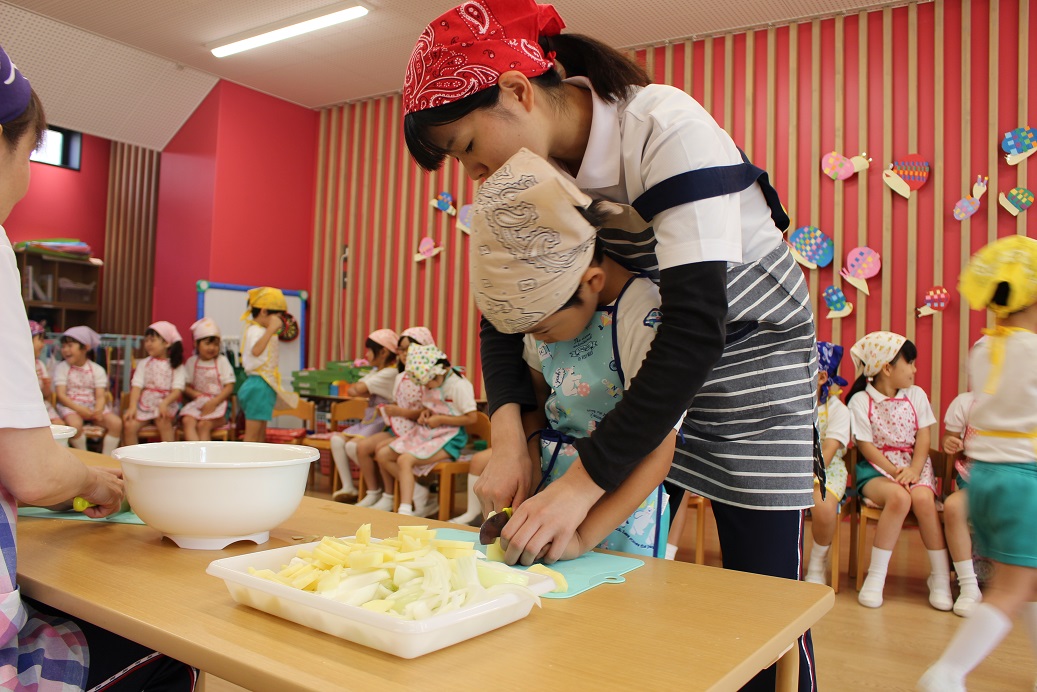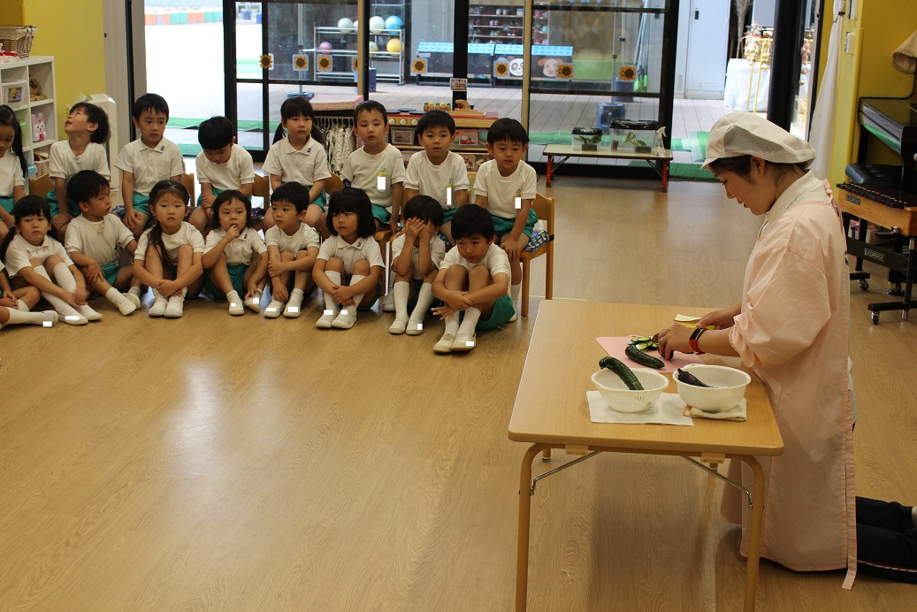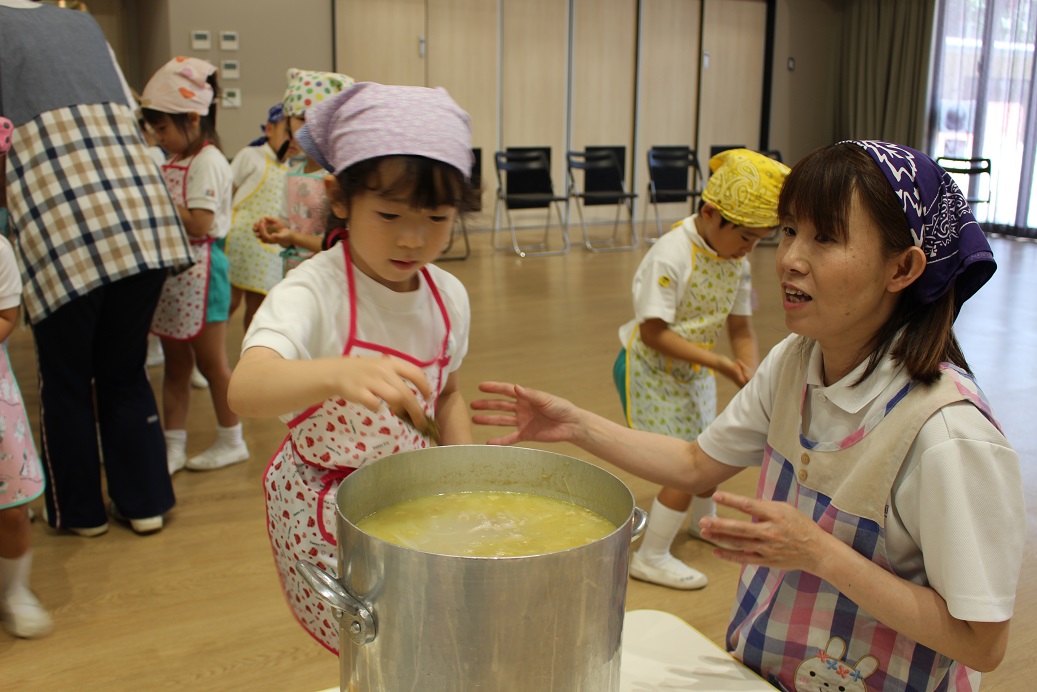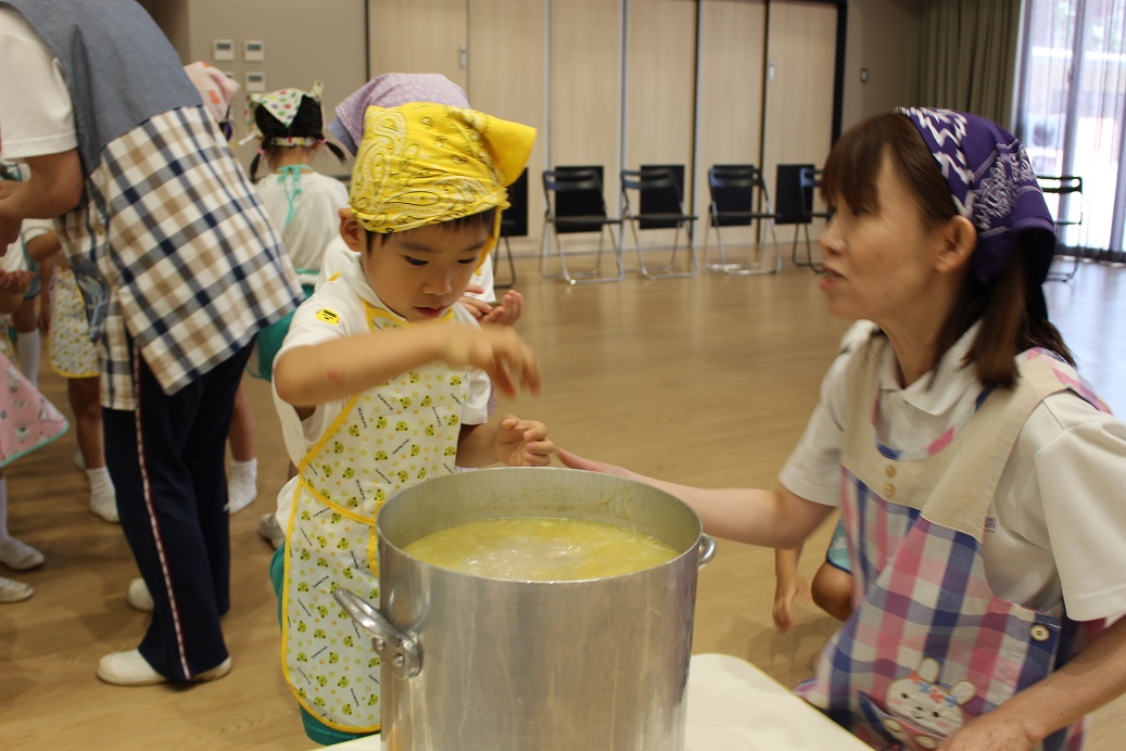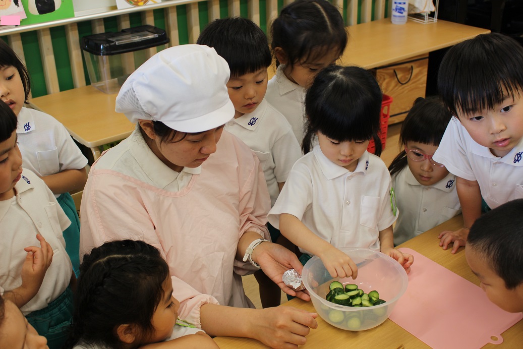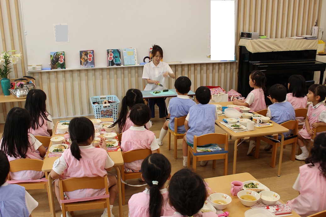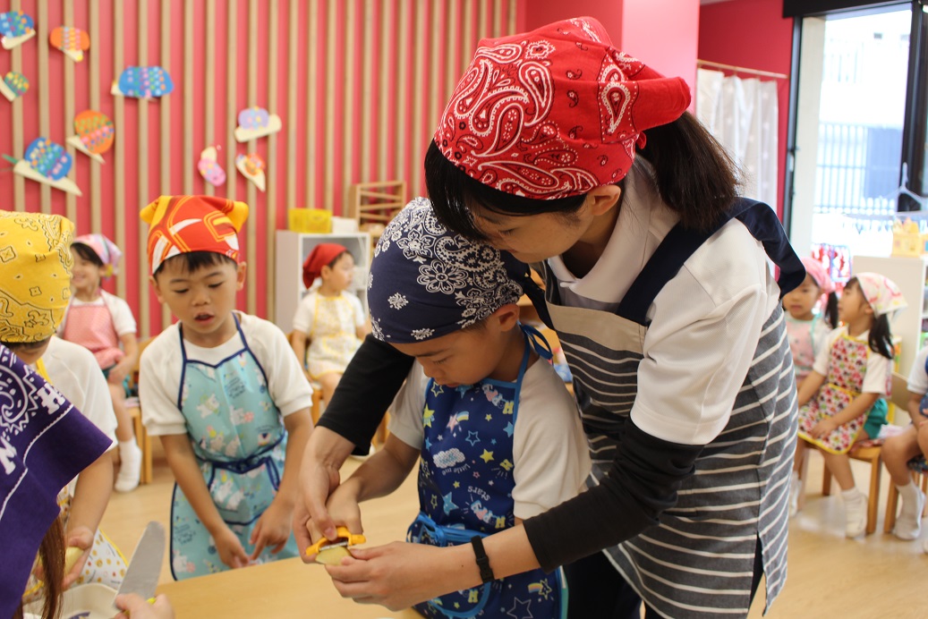 どうやって切るのかを一生懸命見ていた子どもたち。