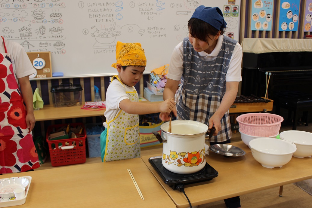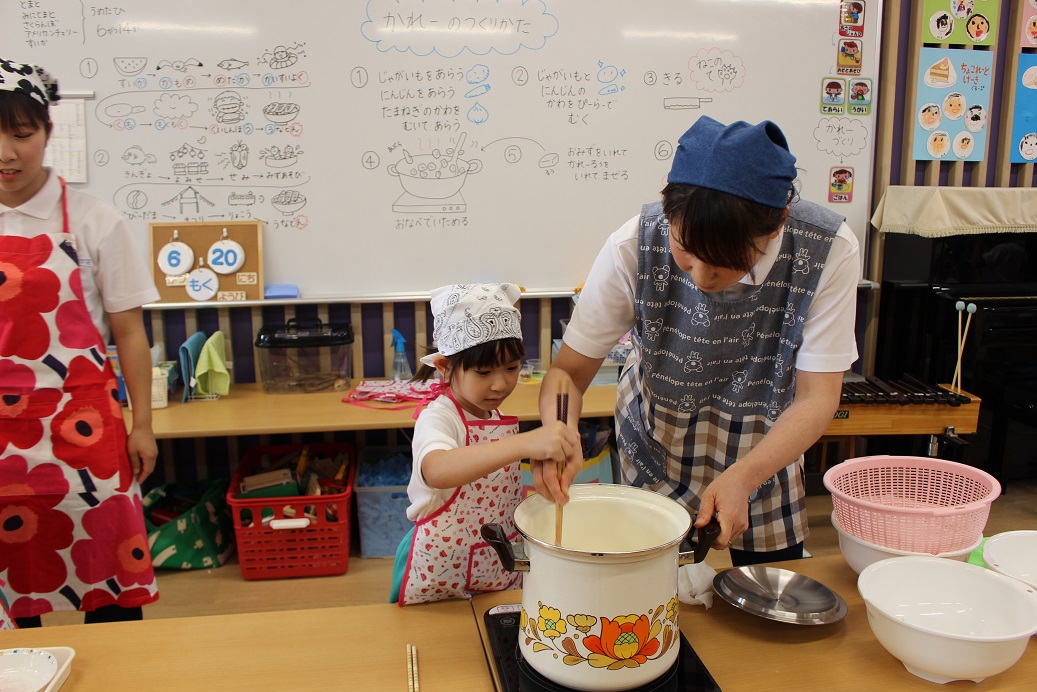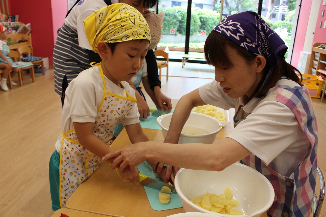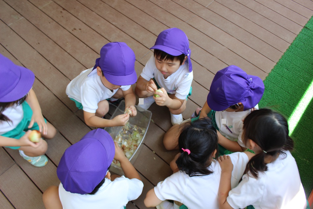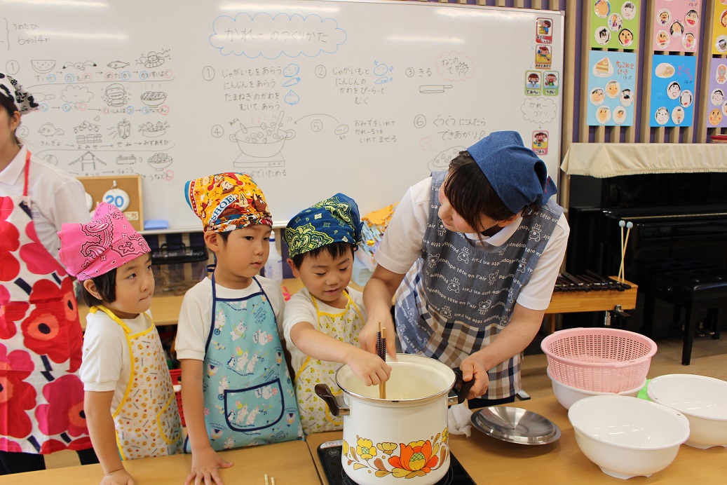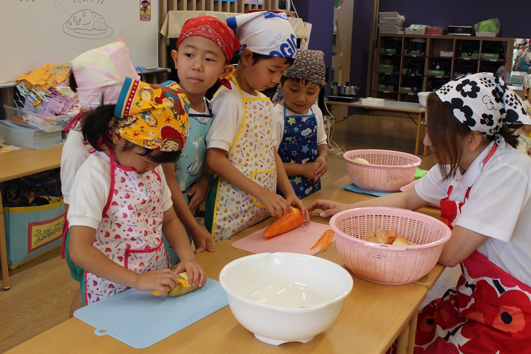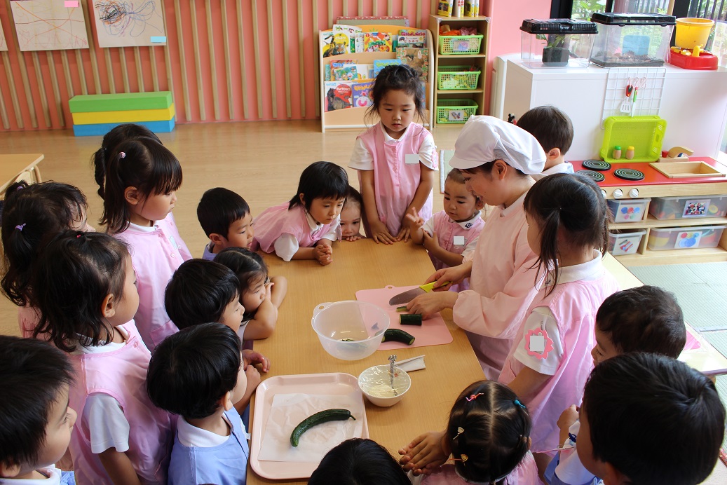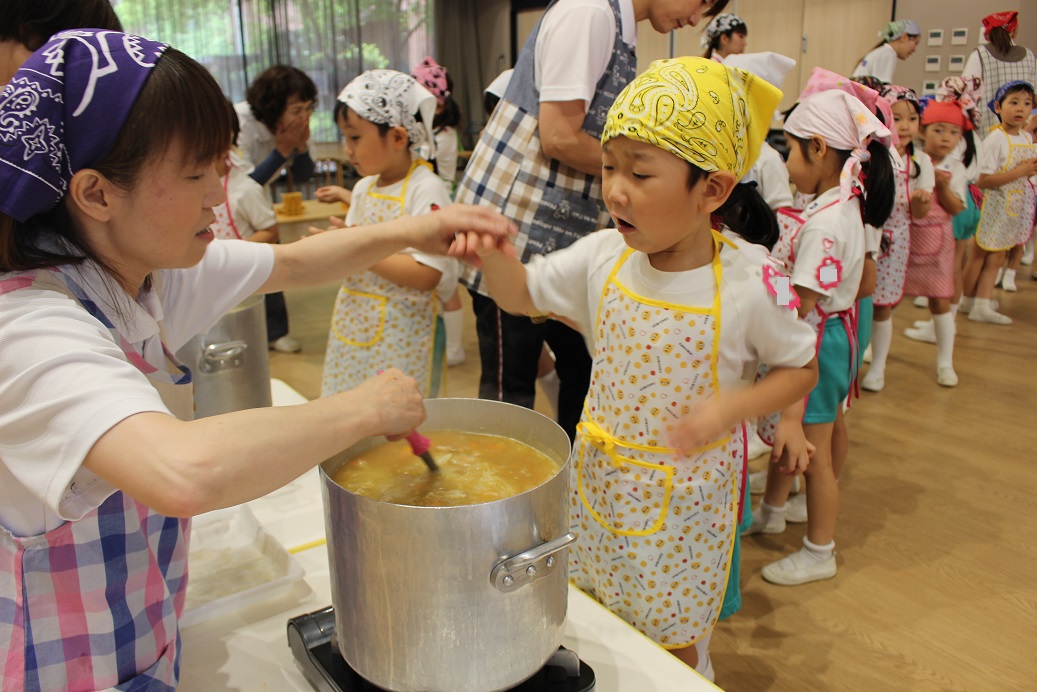 どうやって切るのかを一生懸命見ていた子どもたち。
