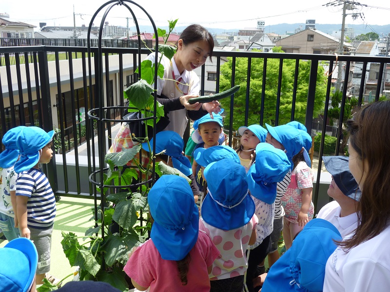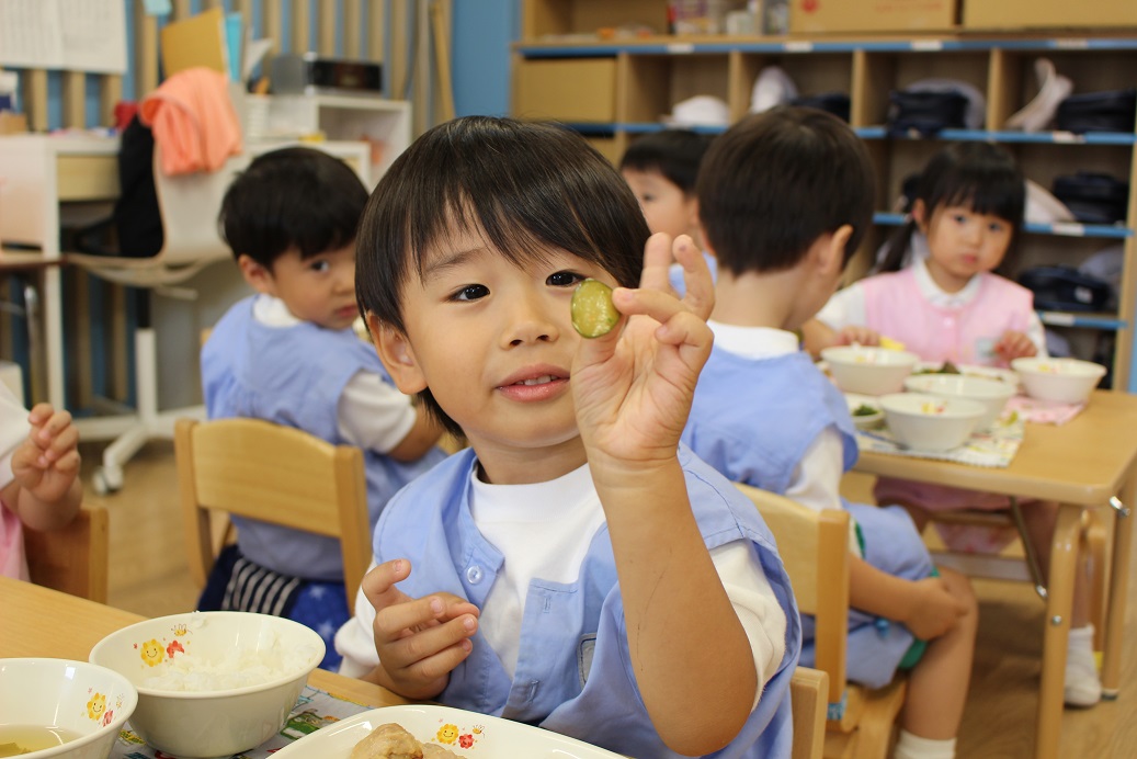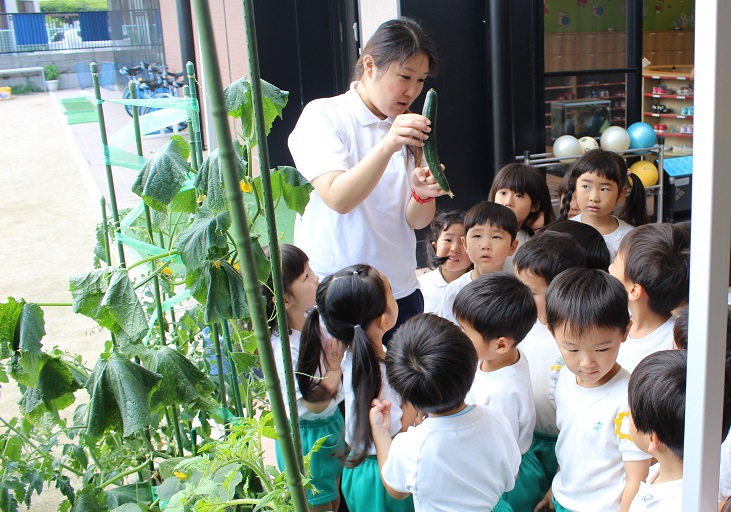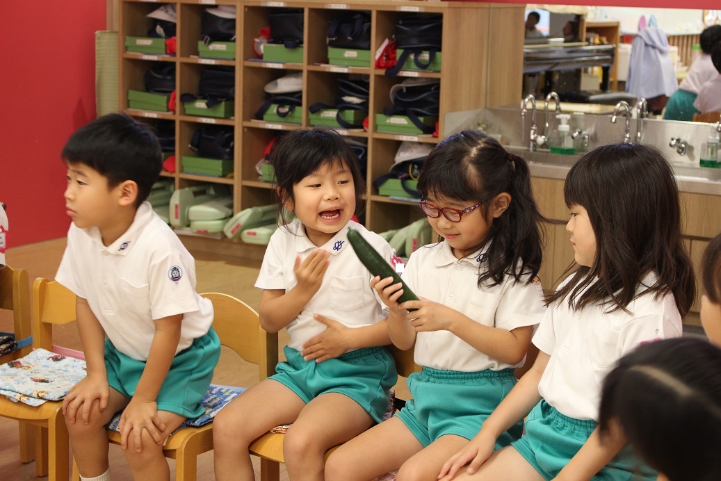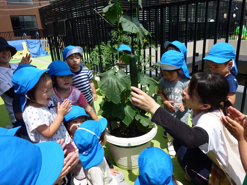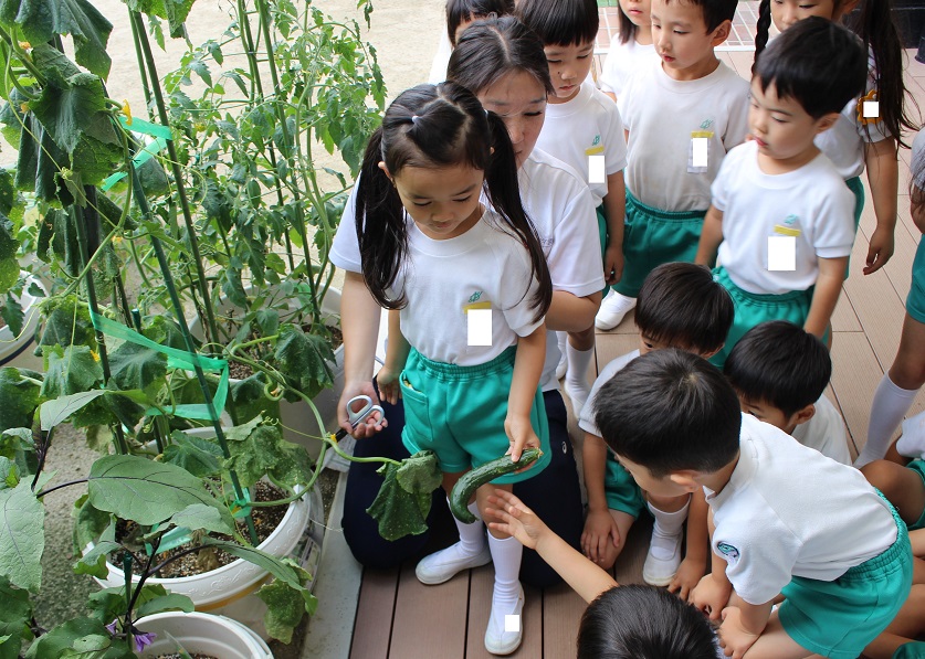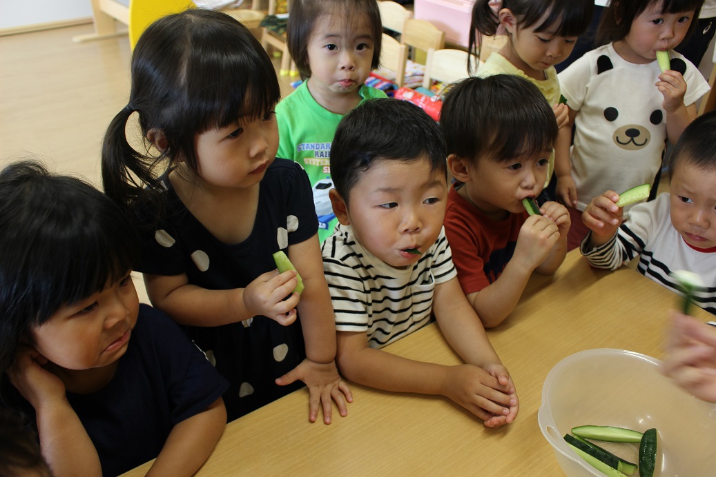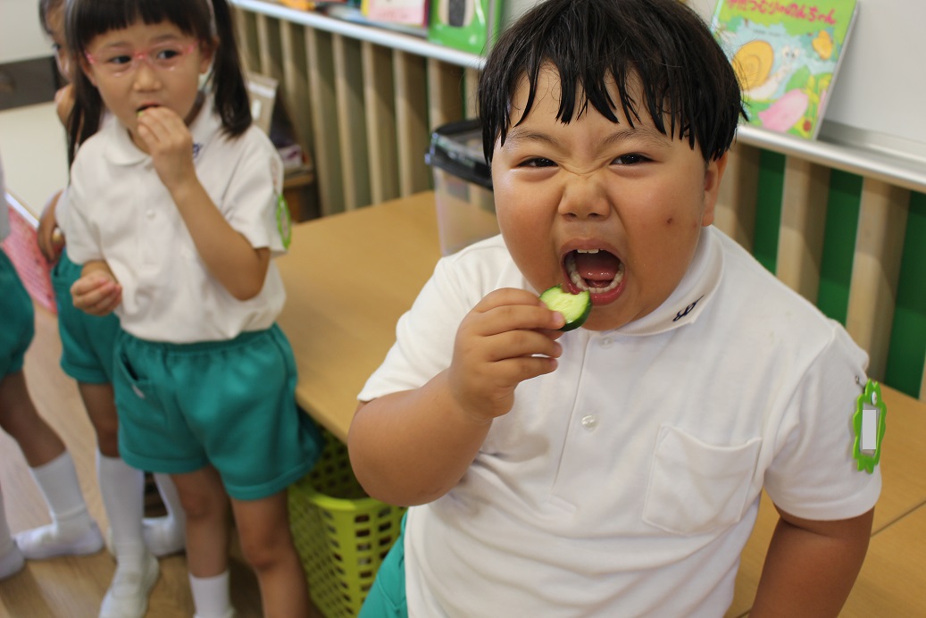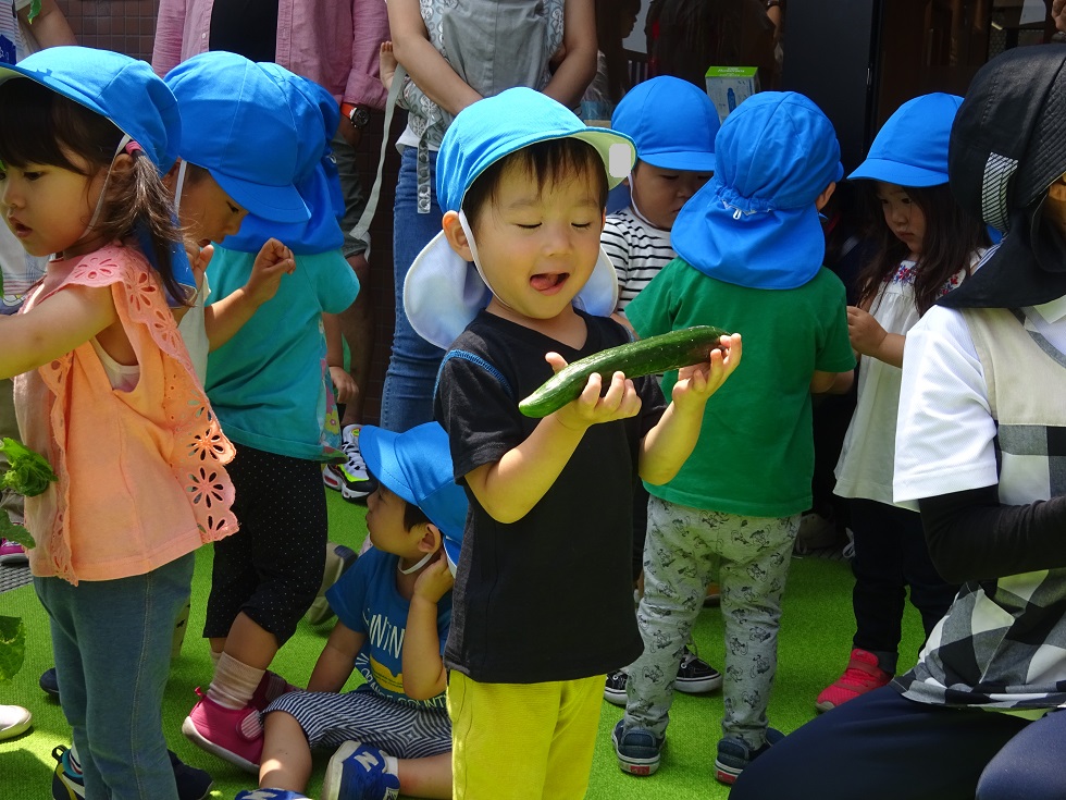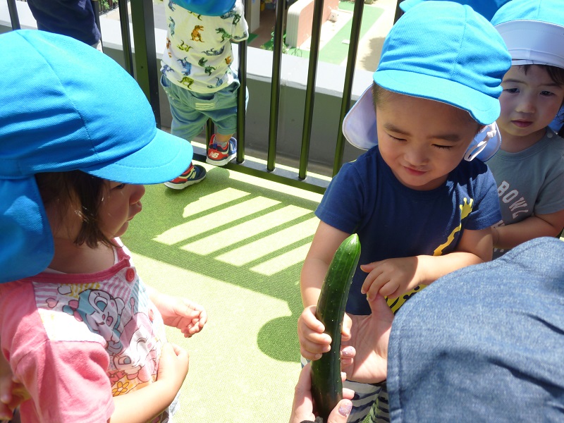 ↓「さくら組で採れたきゅうり 食べてください!」とおすそ分け❤