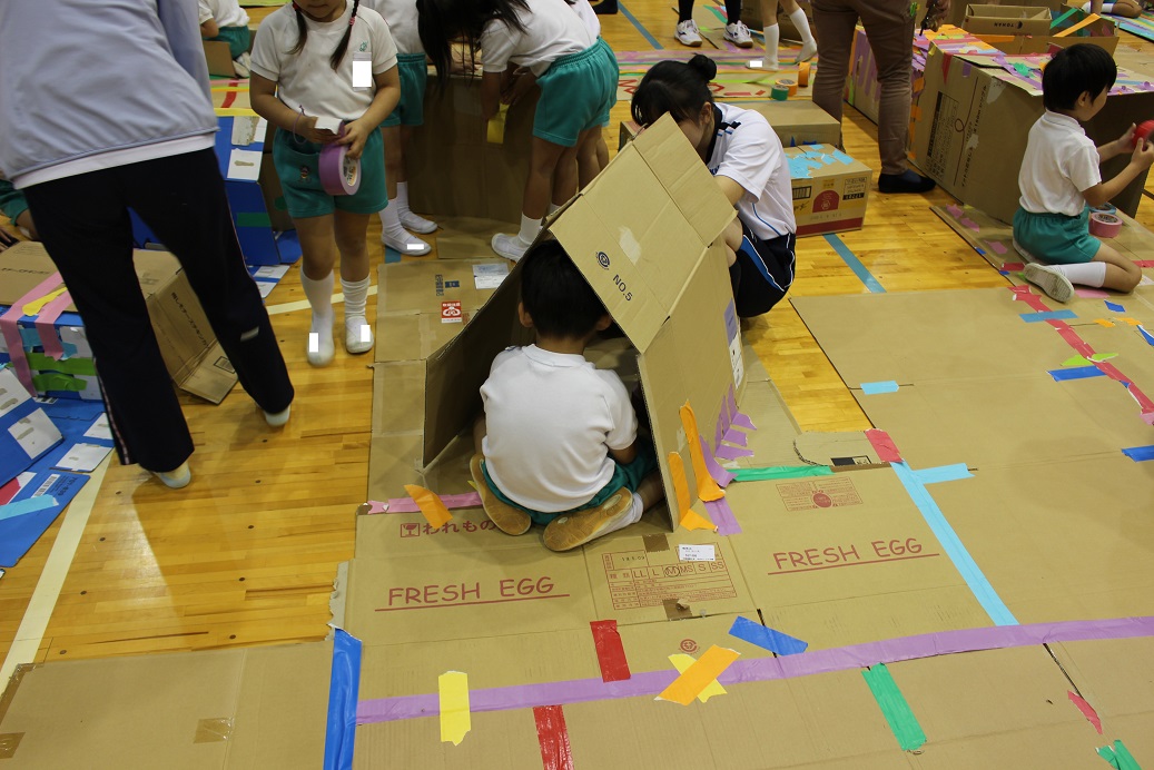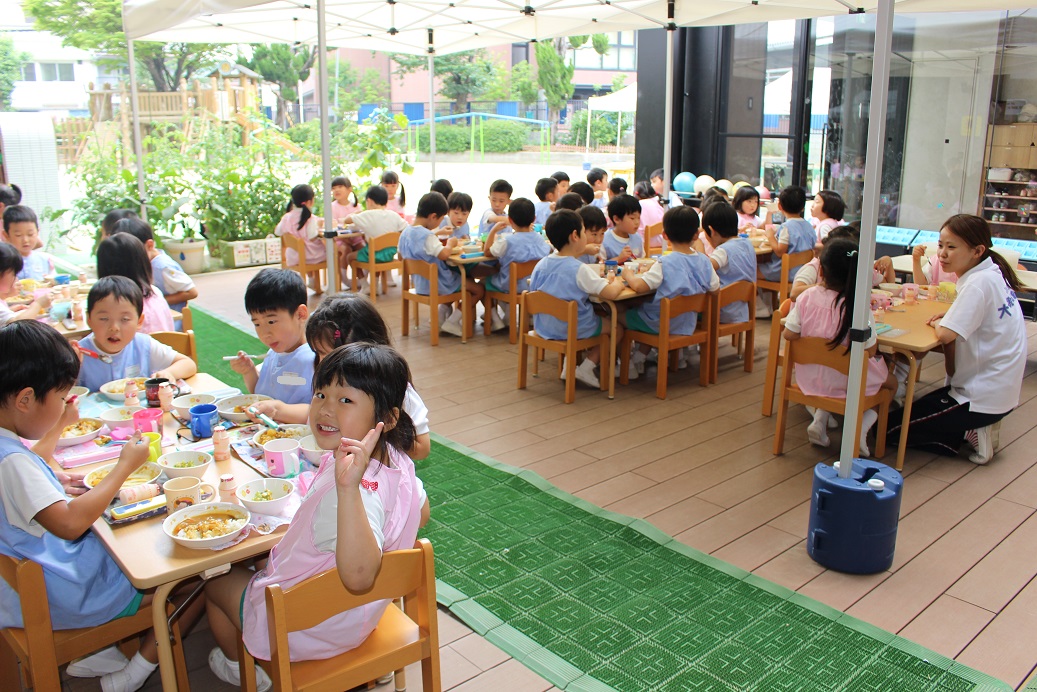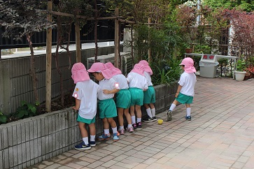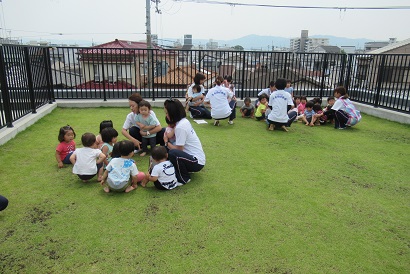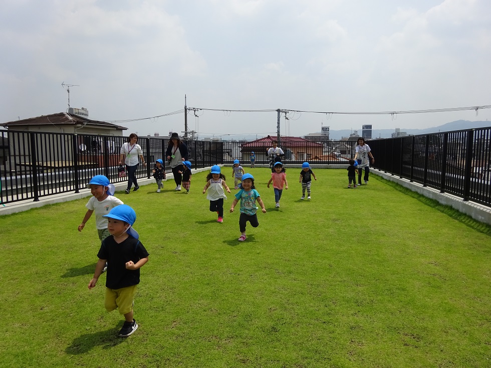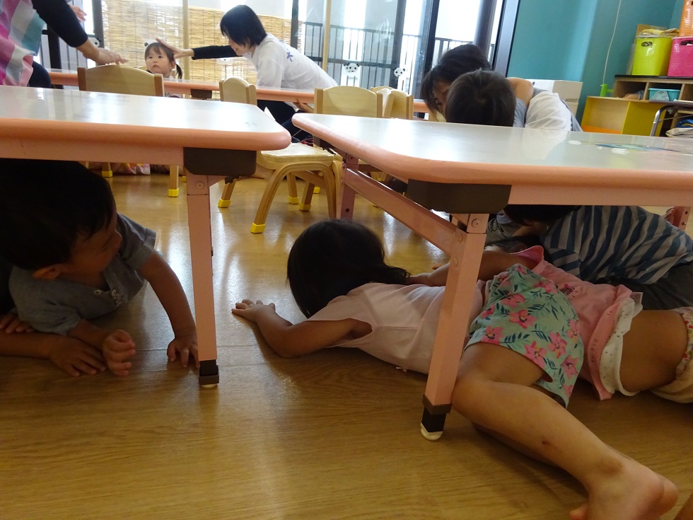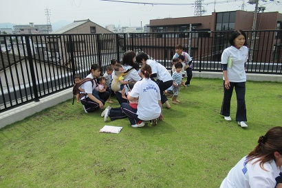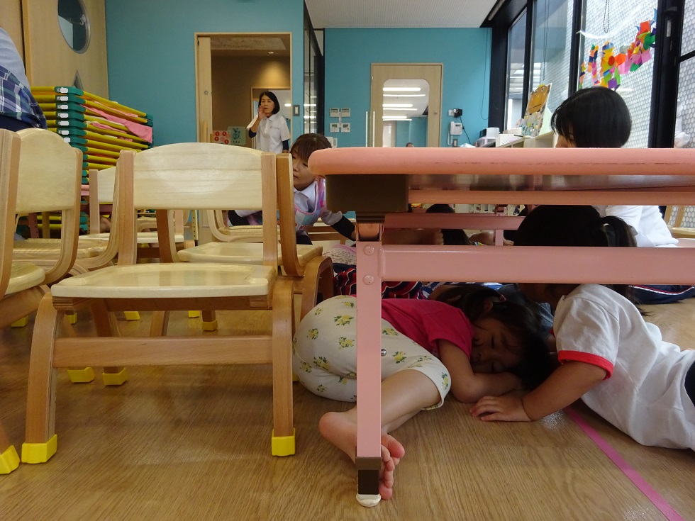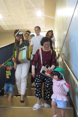 地震からの火災という想定で3号の子どもたちは空庭へ避難し、