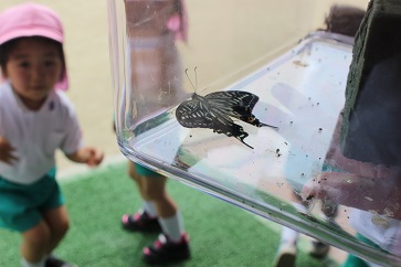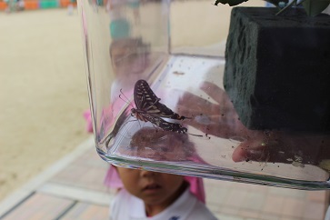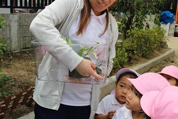 ↓「ちょうちょのたまごみつけたよー!」と大喜び!