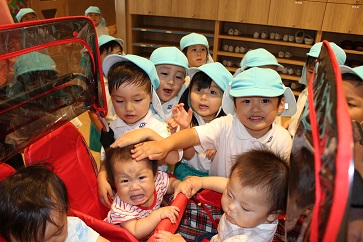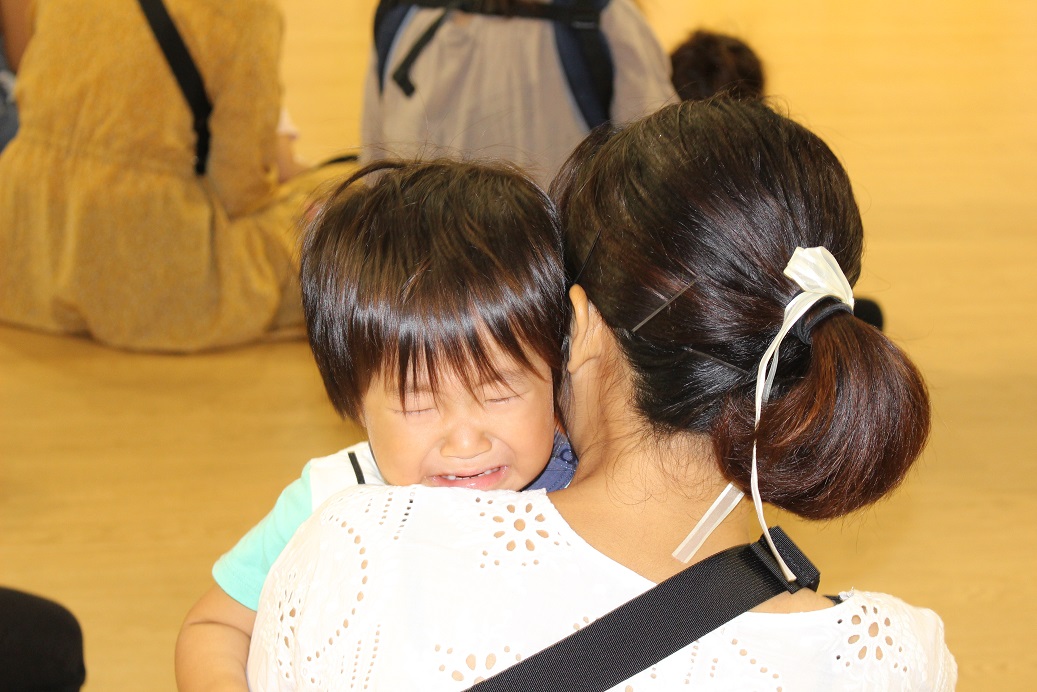 いつもと違う雰囲気に、きょとんとしている子、甘えてママにしがみついている子など様々です(^v^)