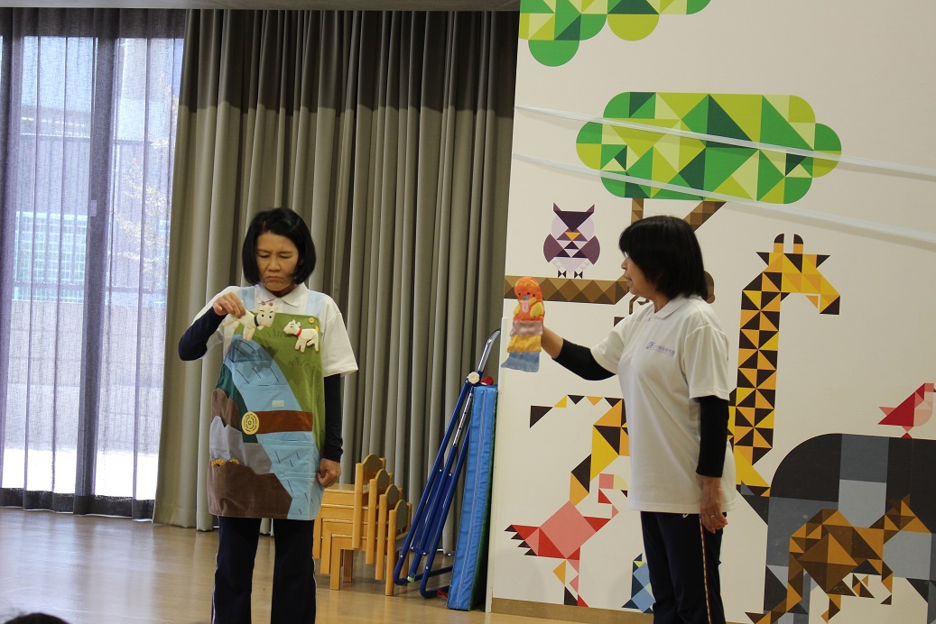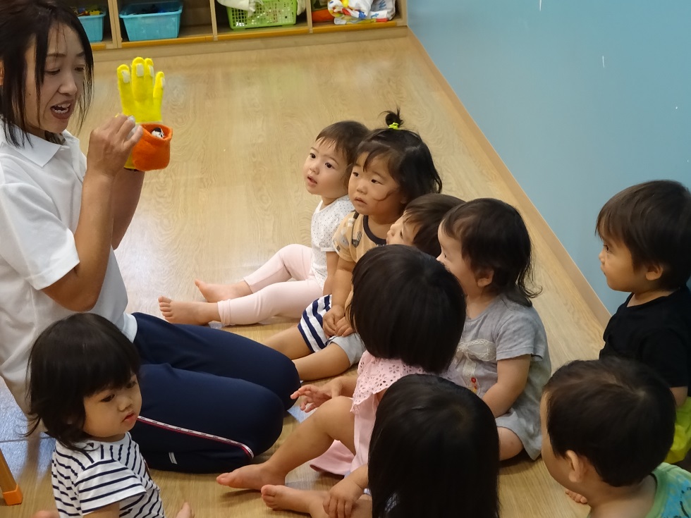 まずはお部屋で手袋シアターと絵本を見て・・・
