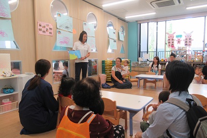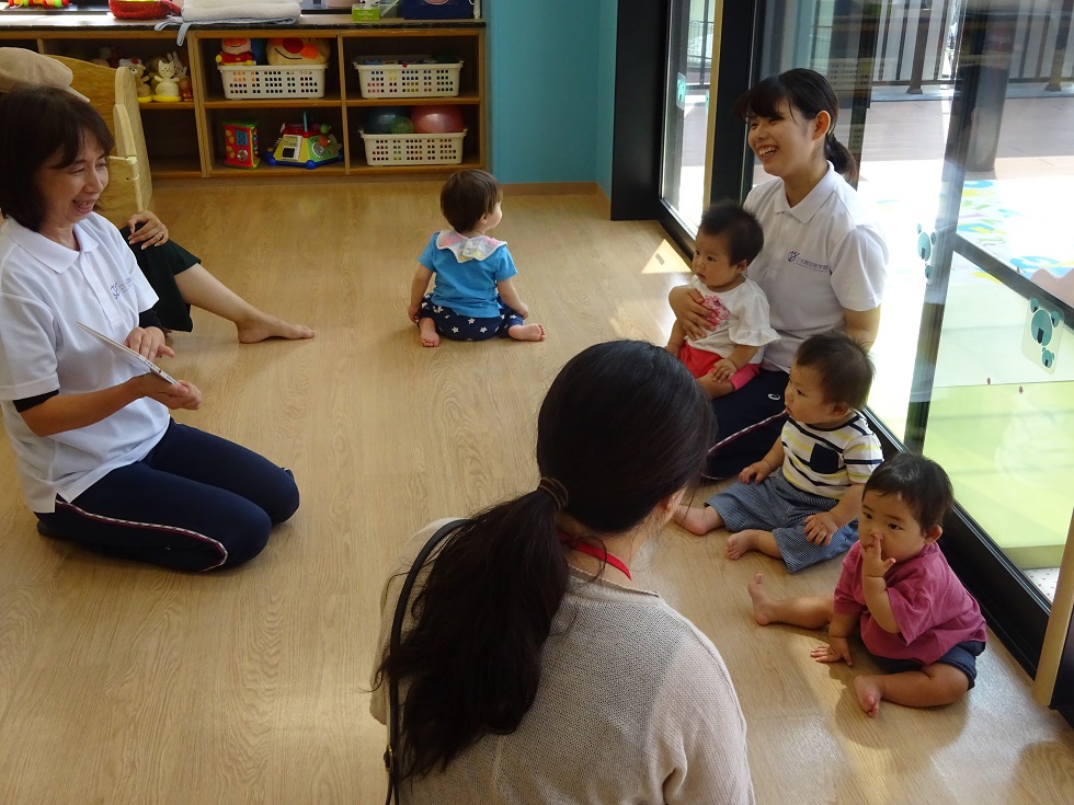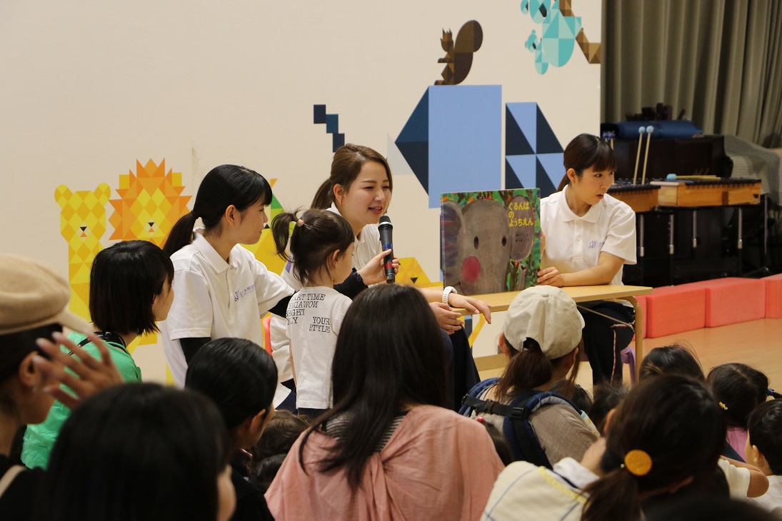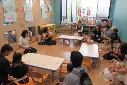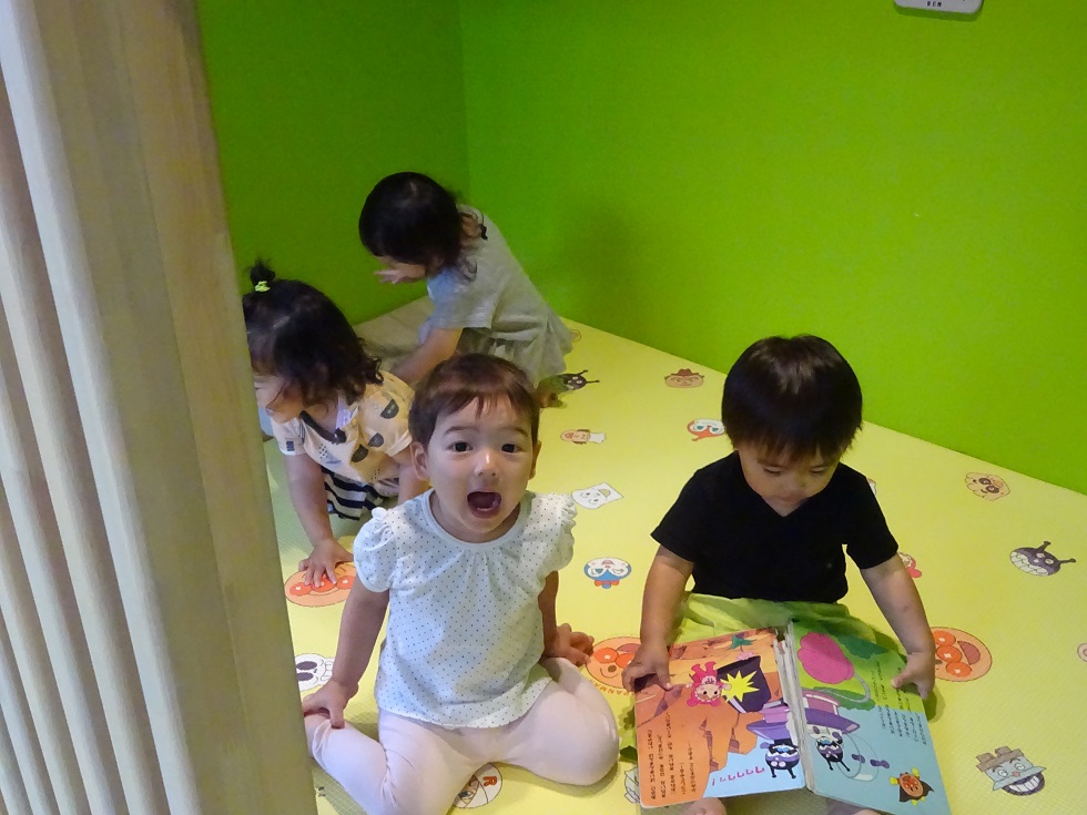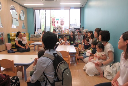 最初は絵本を読んだり、親子でふれあい遊びをしたりしました。