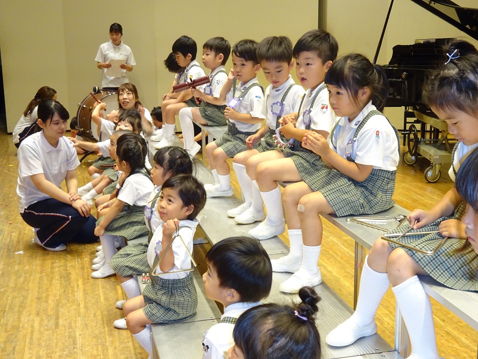 遊びたい気持ちをぐっと抑えて、まずは先生のお話をききます。