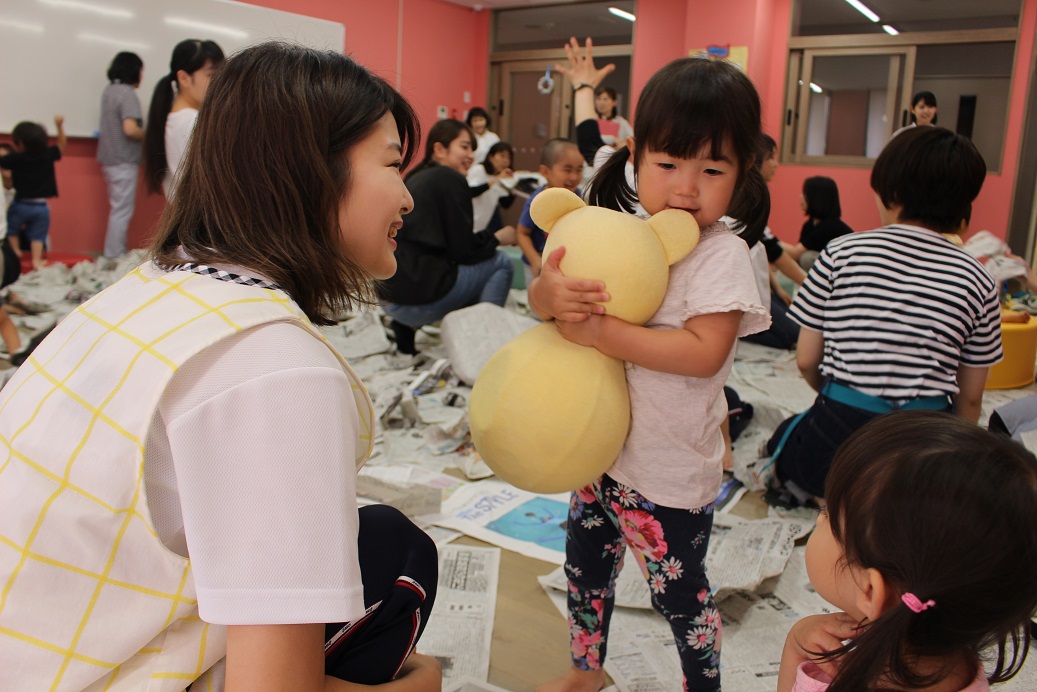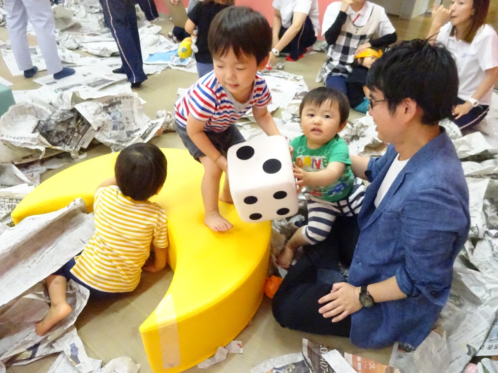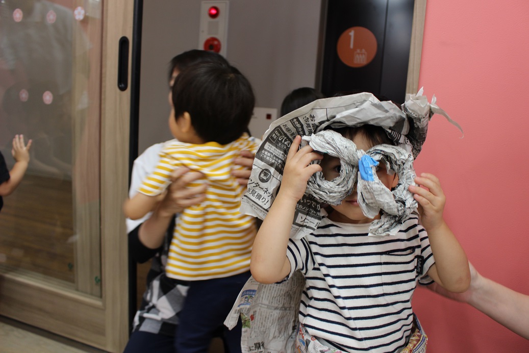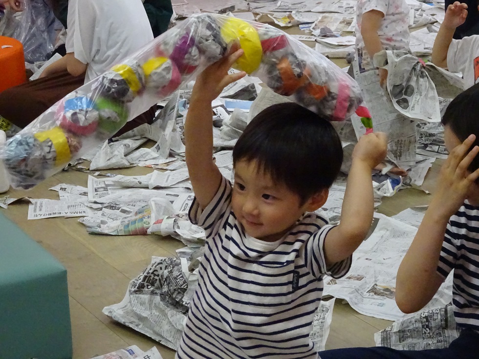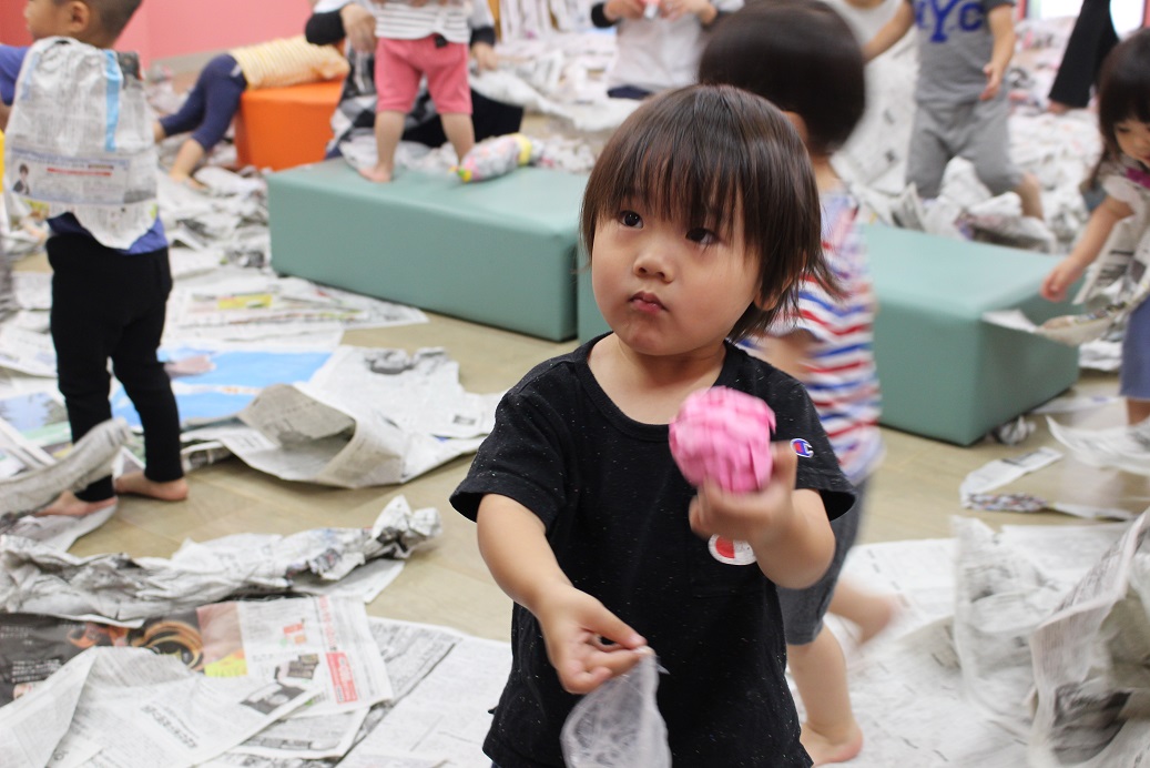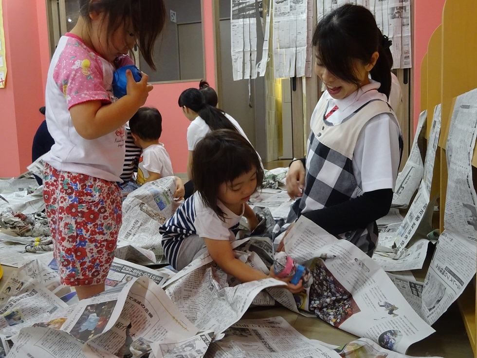 短期大学の学生さんと、ぱんだ組の子どもたちと一緒に新聞遊びをしましたよ!