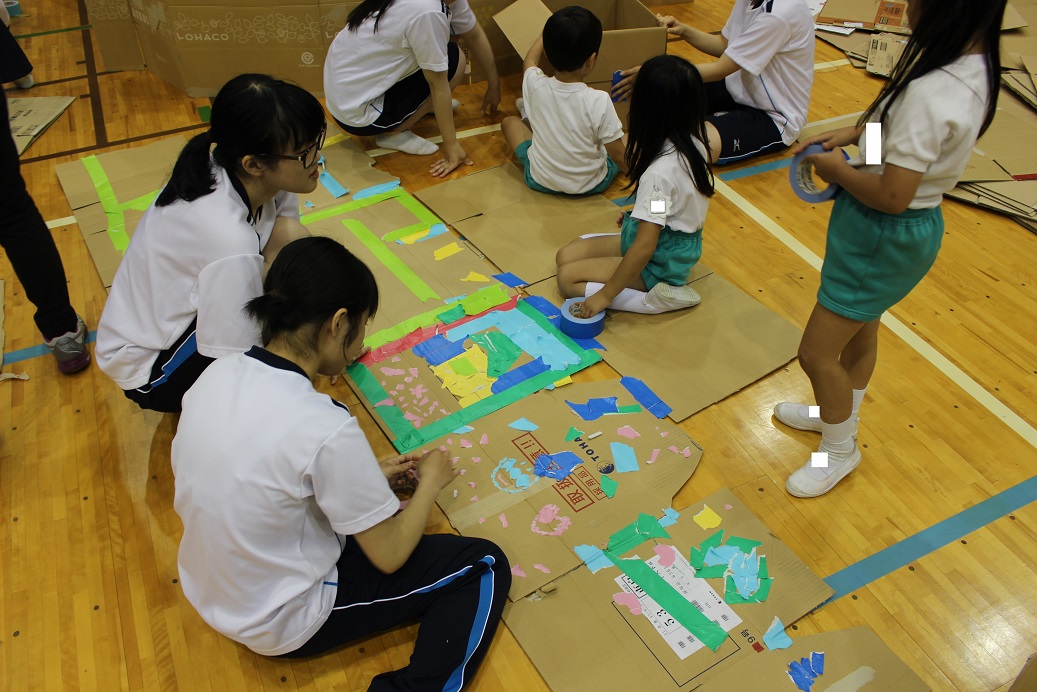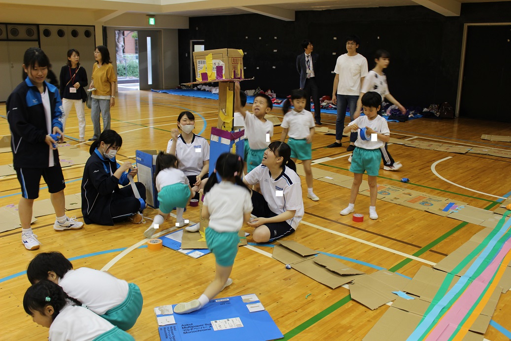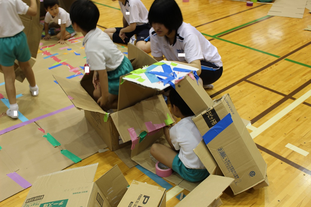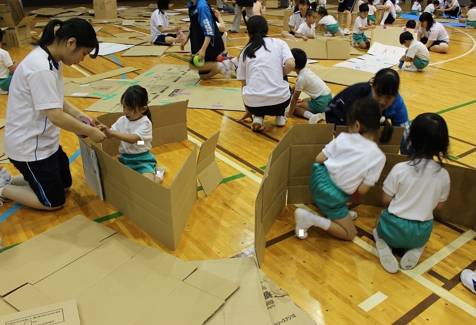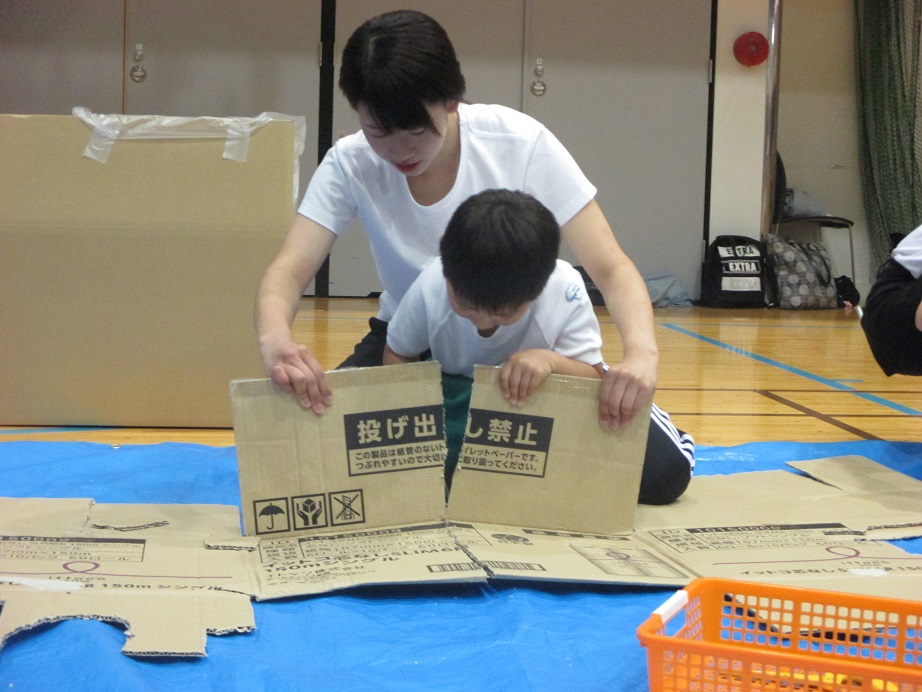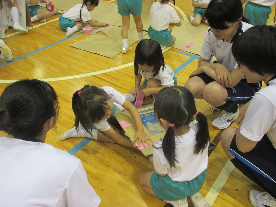 短期大学の学生さんと、ぱんだ組の子どもたちと一緒に新聞遊びをしましたよ!