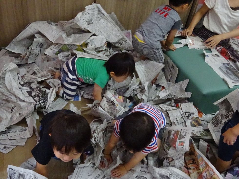 最初は新聞をやぶったり、丸めたりして遊んでいましたが、