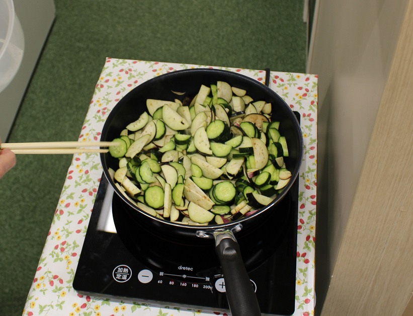 ナスときゅうりを収穫したので、しょうゆと砂糖で炒めました!