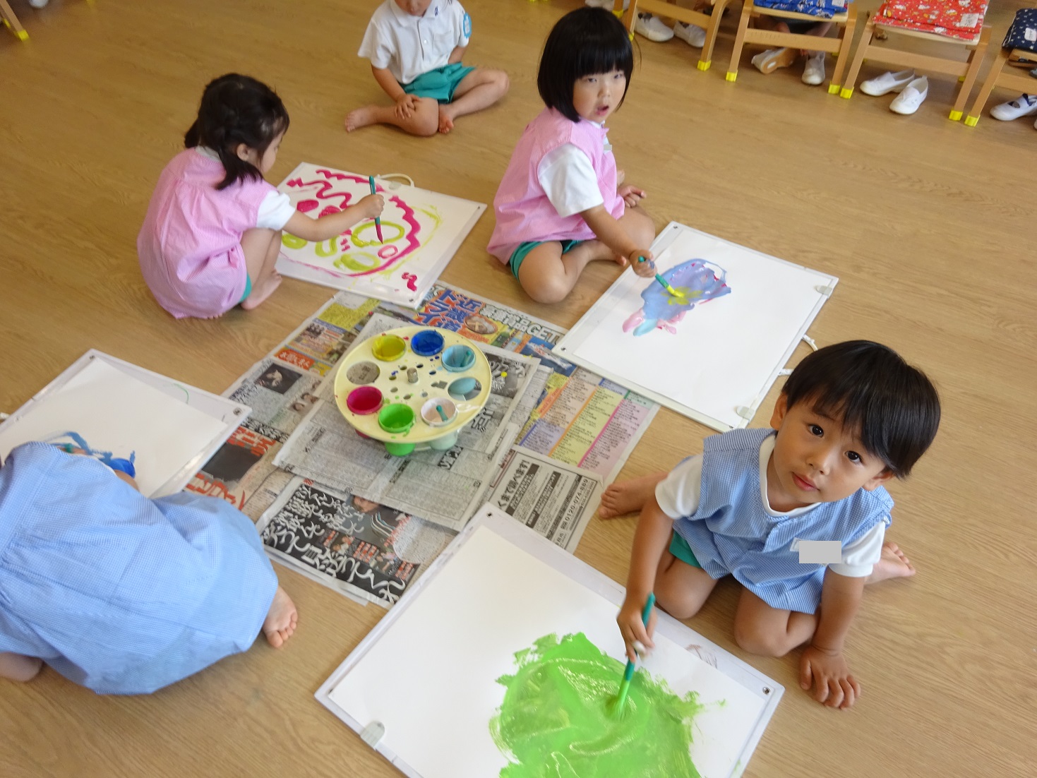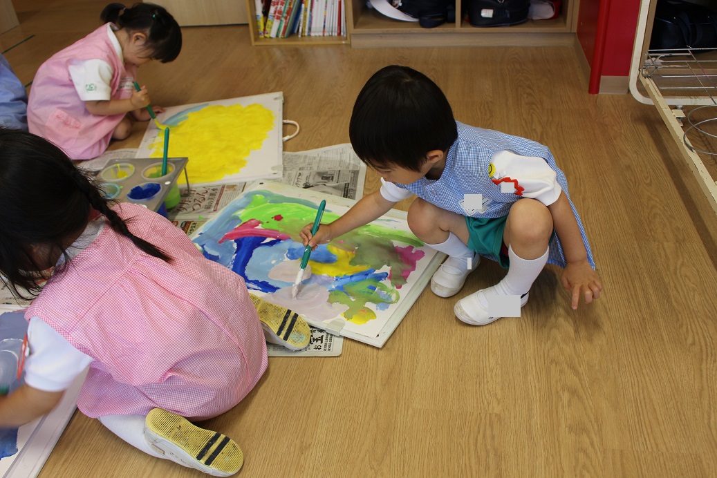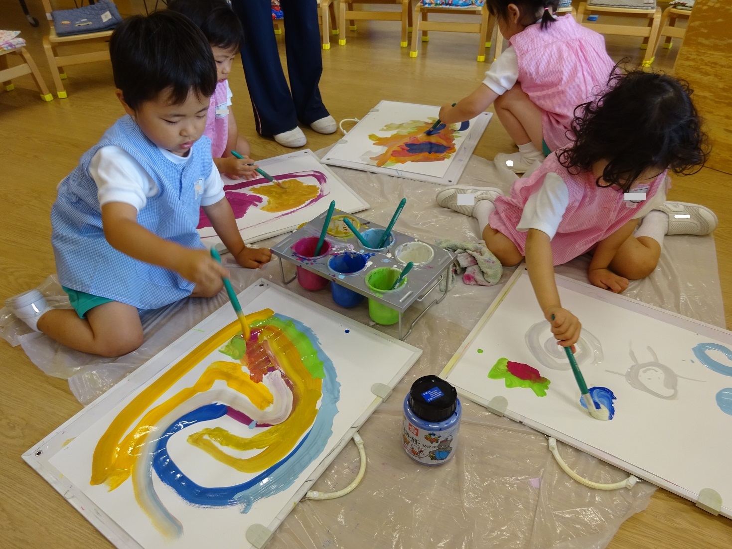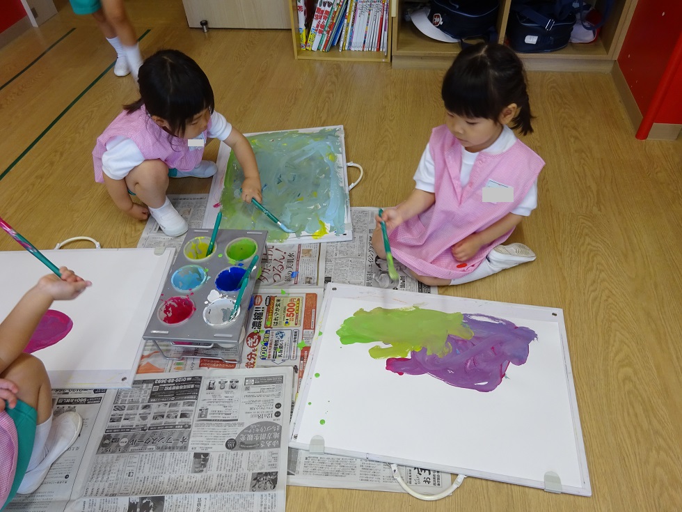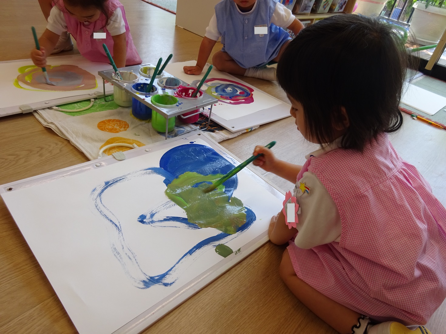 大きな画用紙に、えのぐを使って『ぬたくり遊び』をしました!