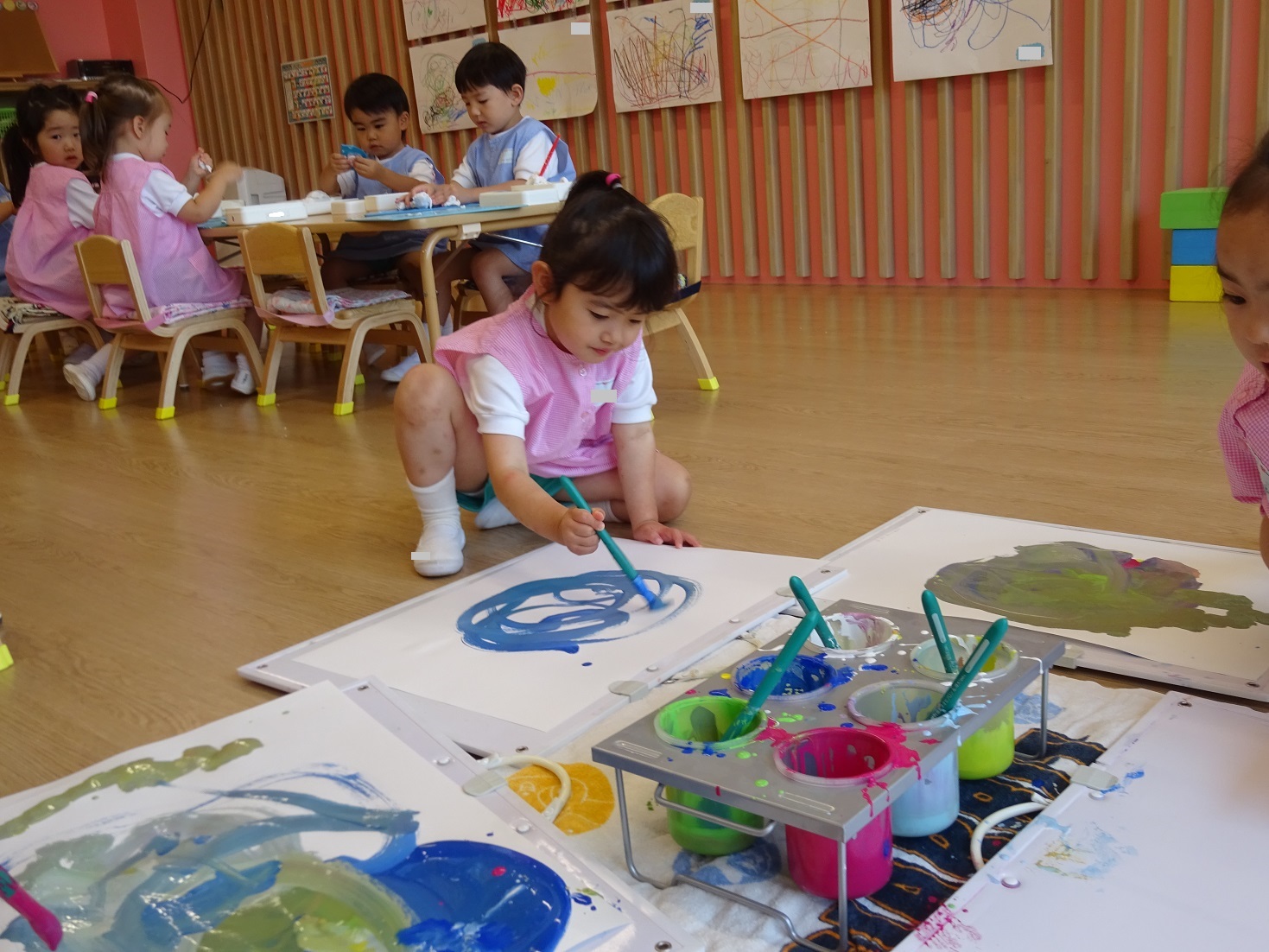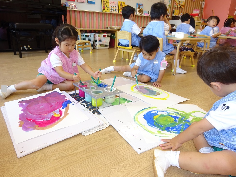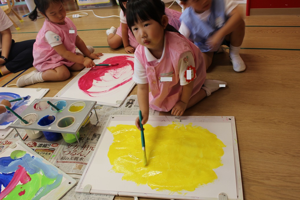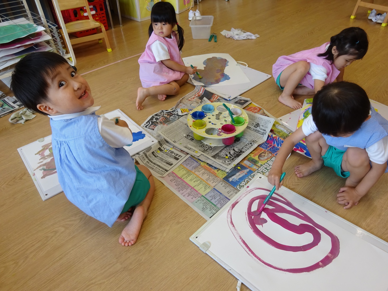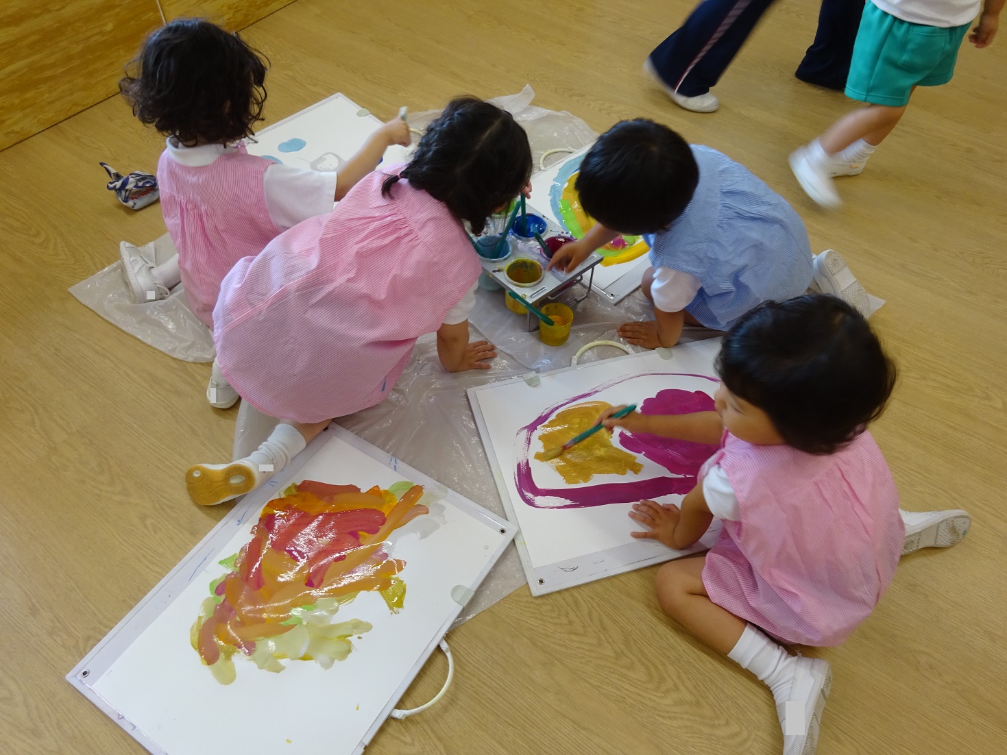 大きな画用紙に、えのぐを使って『ぬたくり遊び』をしました!