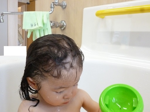 楽しくなってきたようで、バシャバシャ水をかけていました!