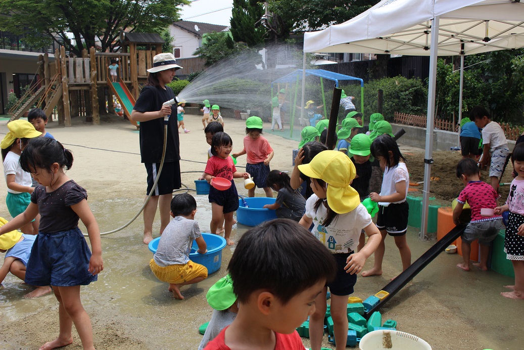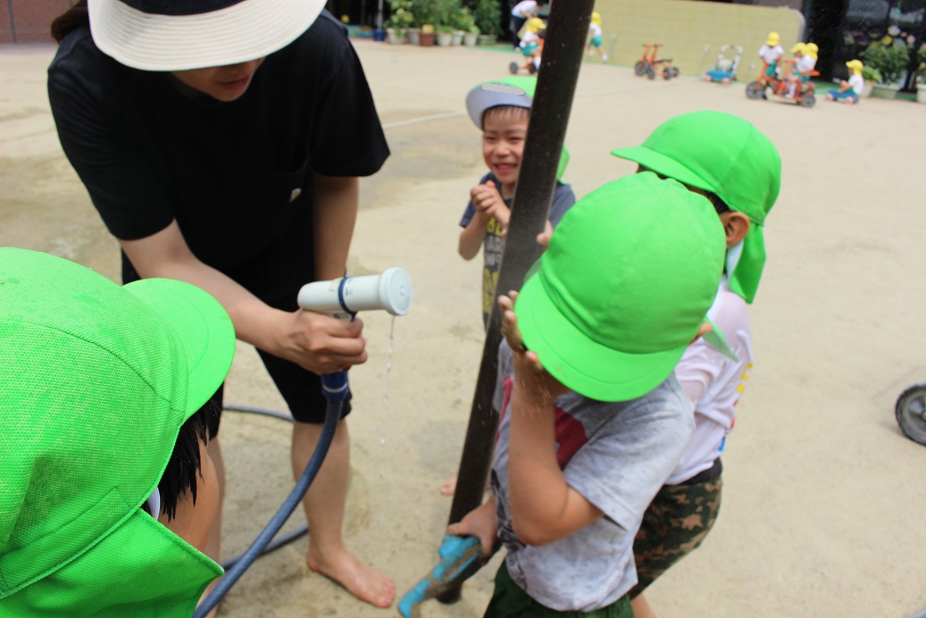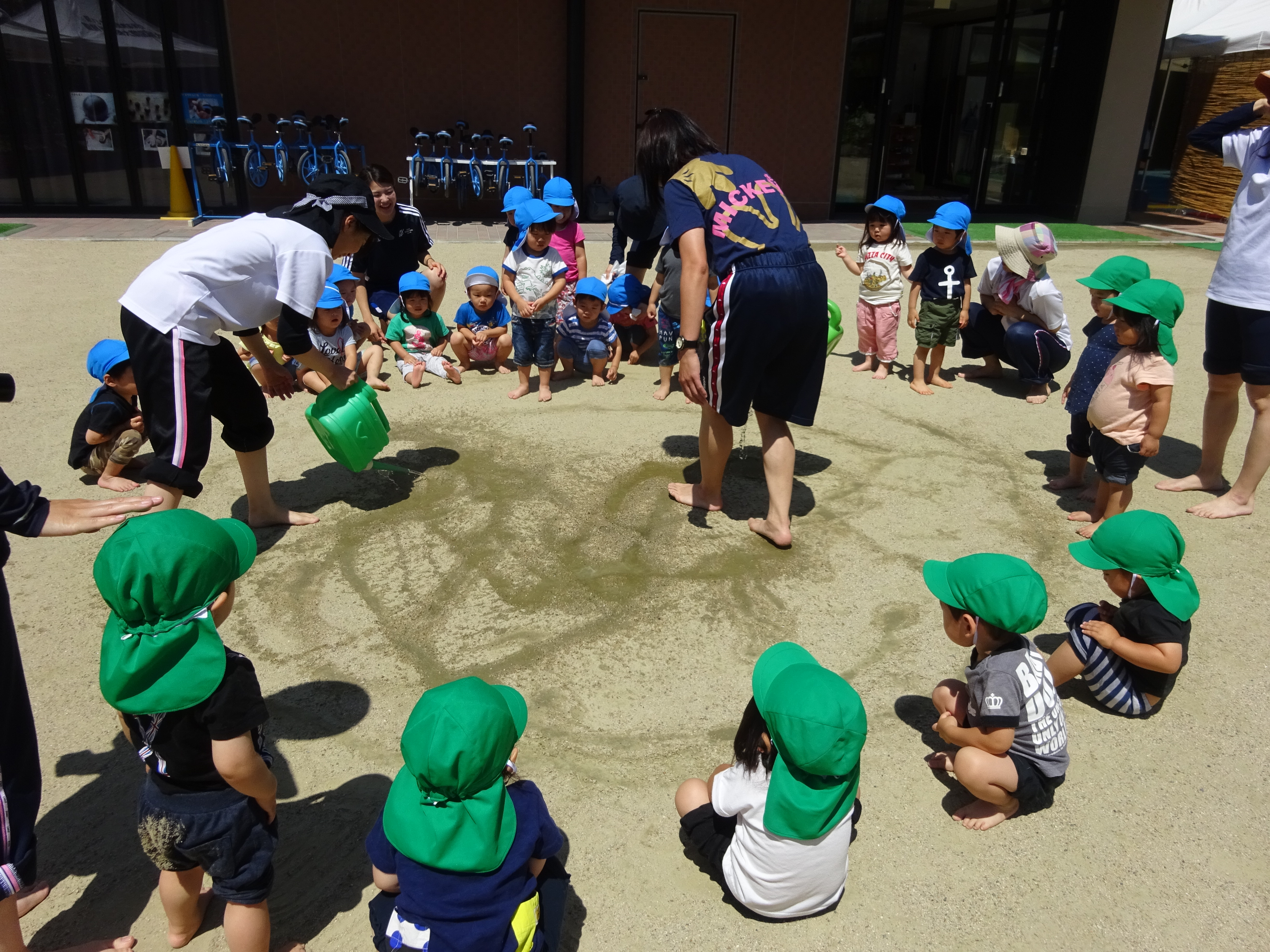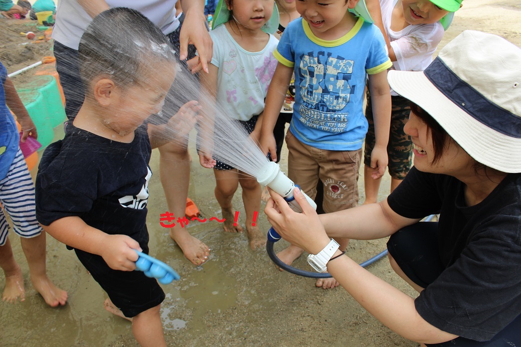 担任vs子どもたちでかけ合いをしたときは、先生に思い切り水をかけていました!(笑)