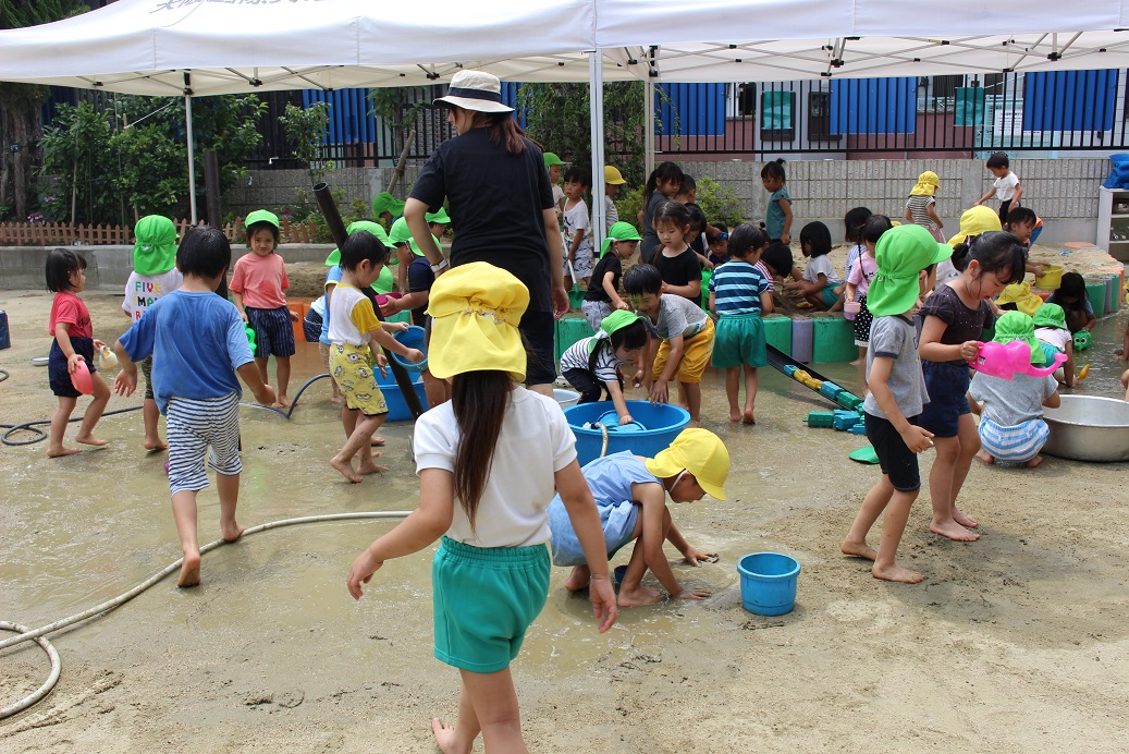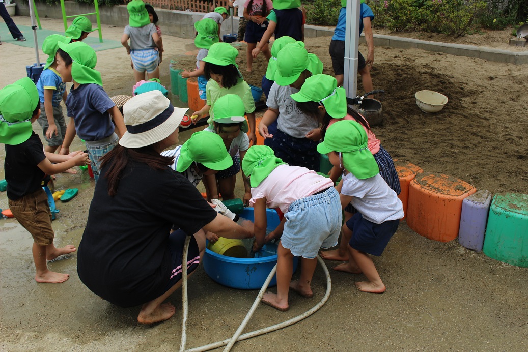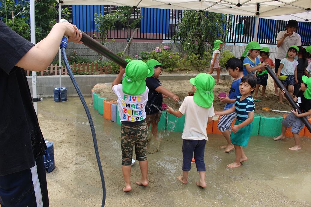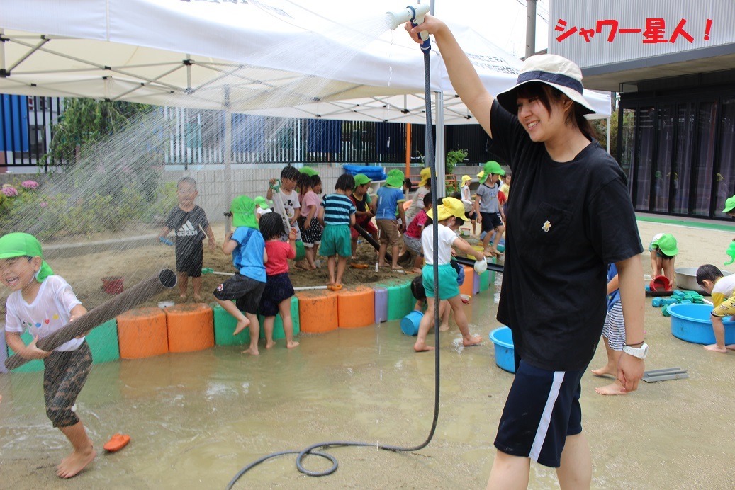 担任vs子どもたちでかけ合いをしたときは、先生に思い切り水をかけていました!(笑)