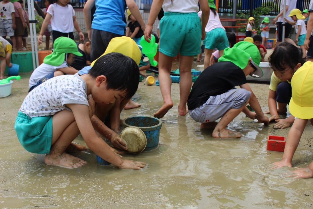 年中組のどろんこ遊び・・・回数を重ねるごとにダイナミックになっていっています!