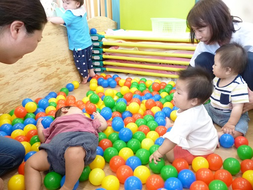 お部屋ではボールプールをしたり、揺さぶり遊びをしたり、
