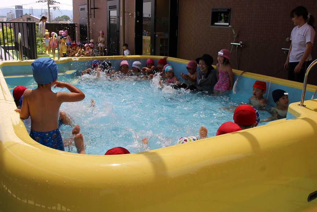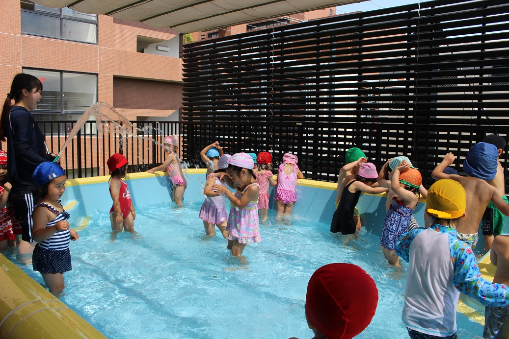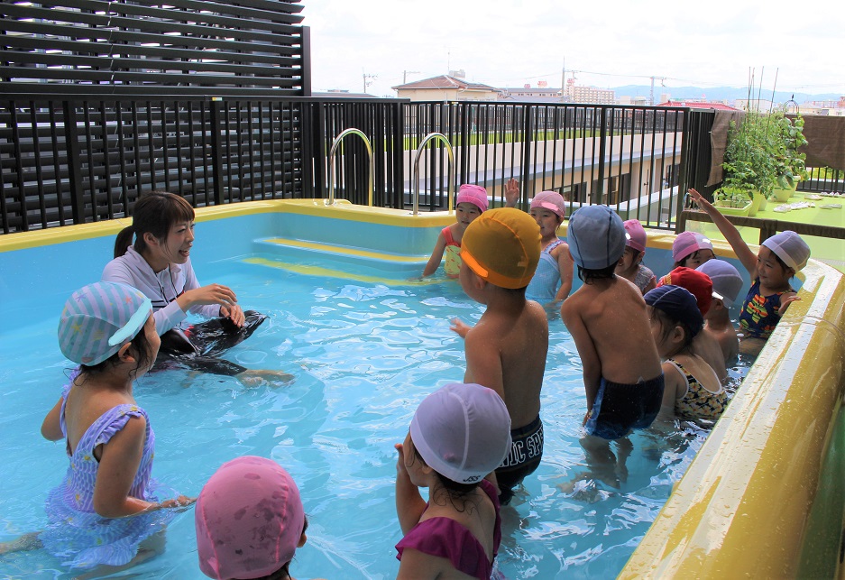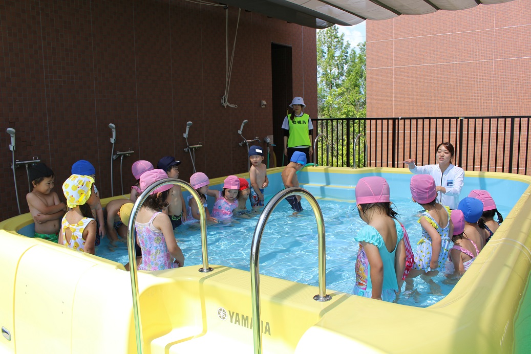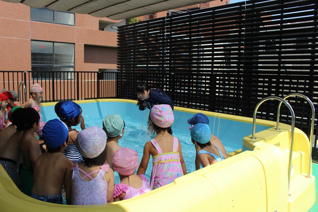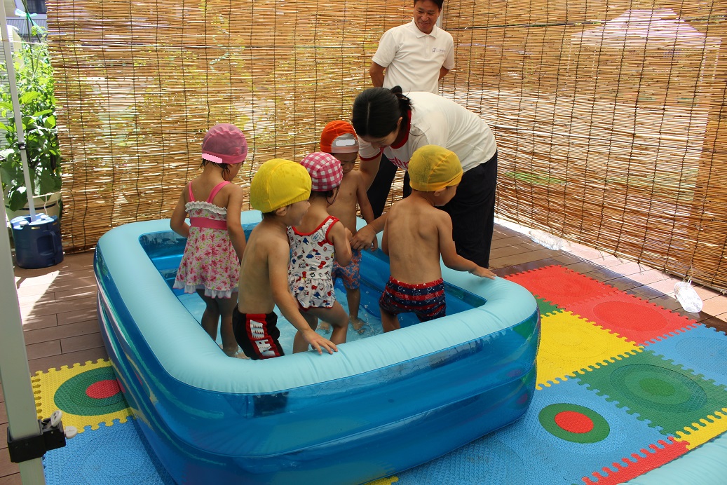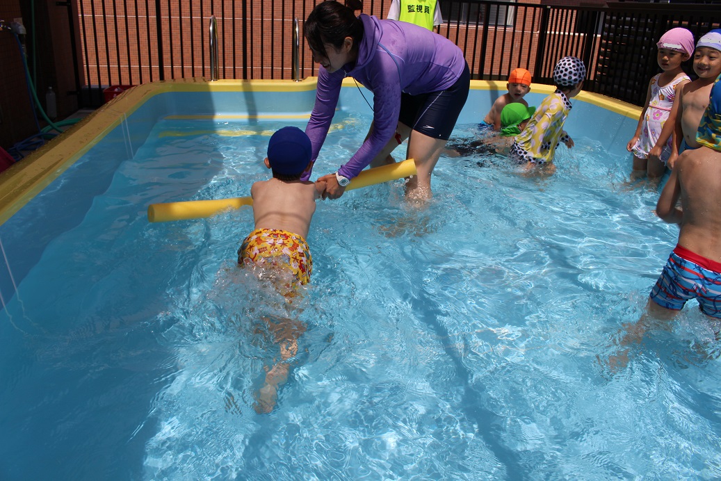 水遊びの時には必ず"監視員"が立ち、プールを見渡せるようにしています。