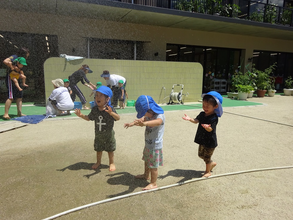 今日は暑かったので水の感触がとても気持ち良く、顔にかかってもへっちゃらです(^○^)