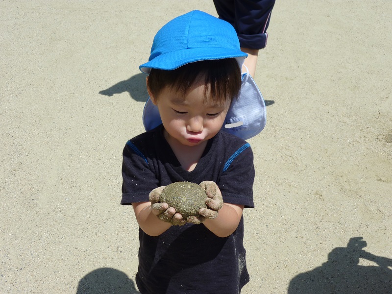 ピッカピカの泥だんごを作れるように、一生懸命頑張っています!