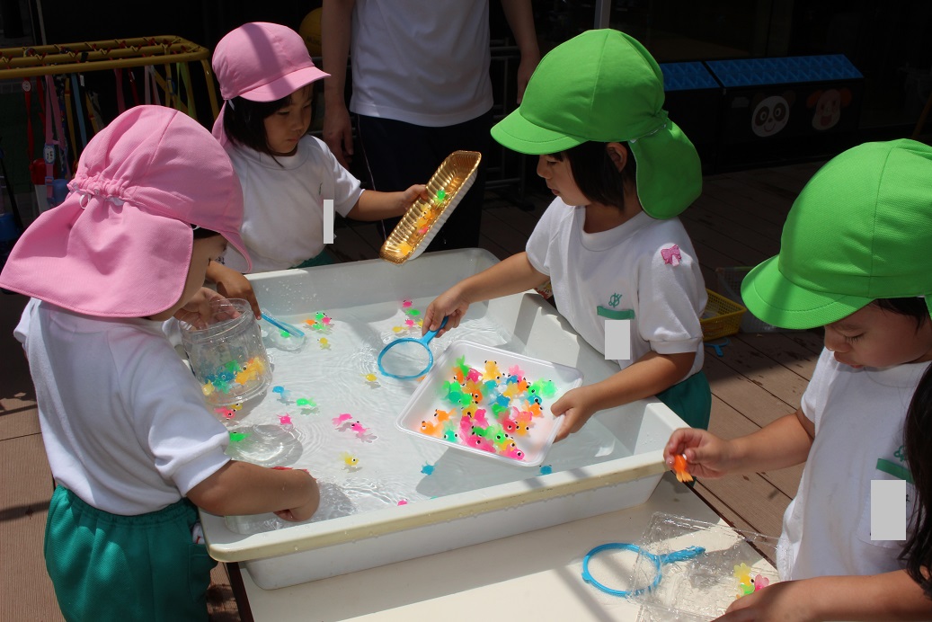 年中組になると、顔をつけたり、もぐったり活動が増えますね!