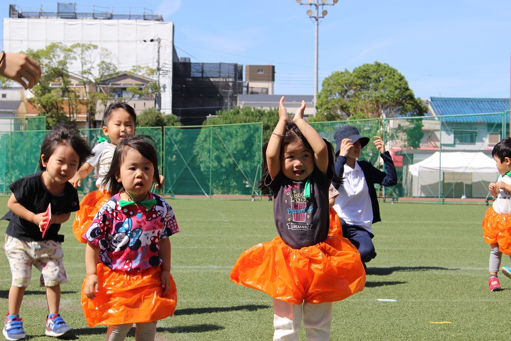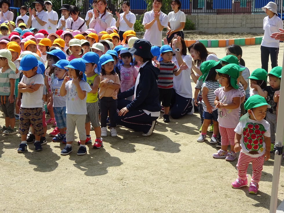 ぱんだ組さんが「運動会のうた」を歌った後、