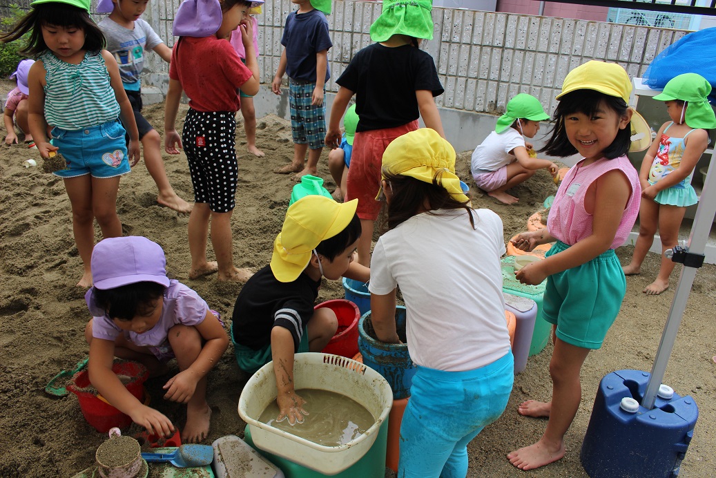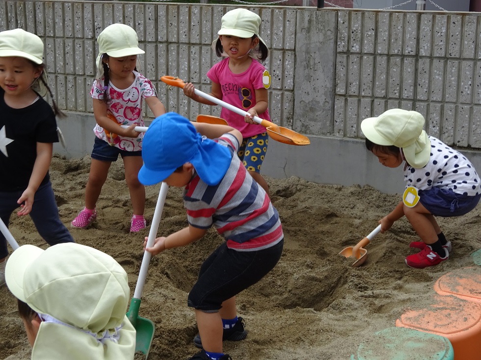 「先生に水をかけちゃおう!!」 「大きい穴を掘ろう!」