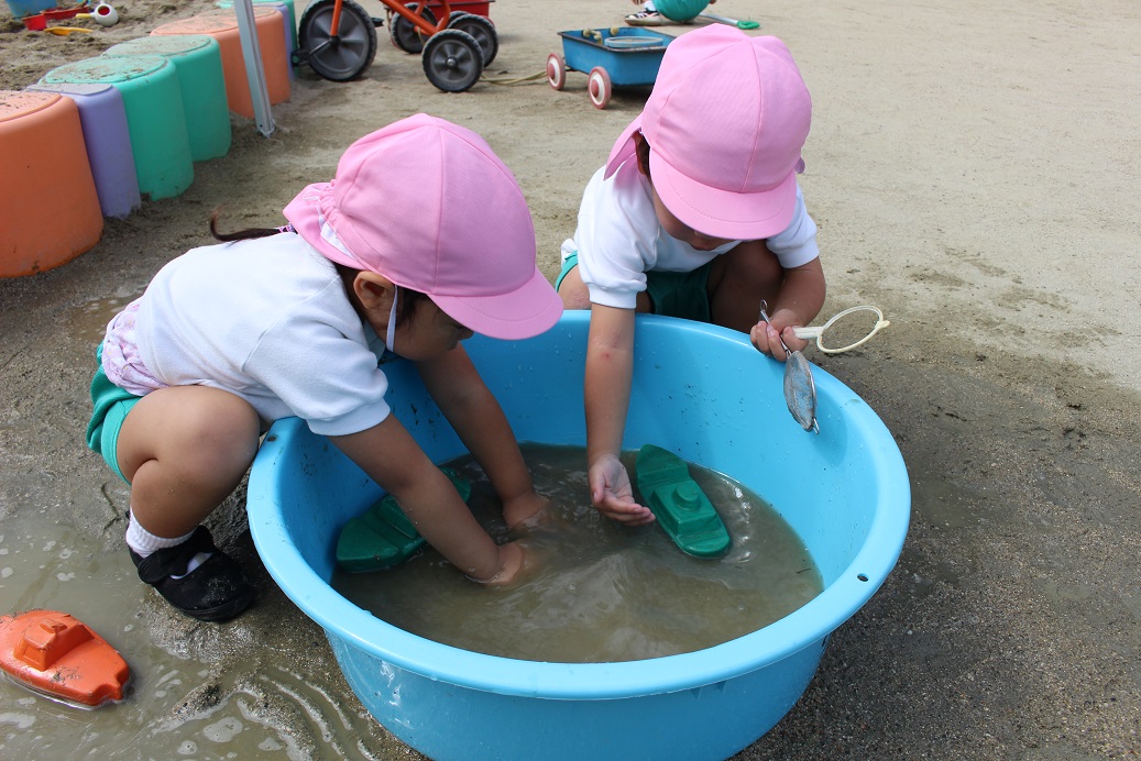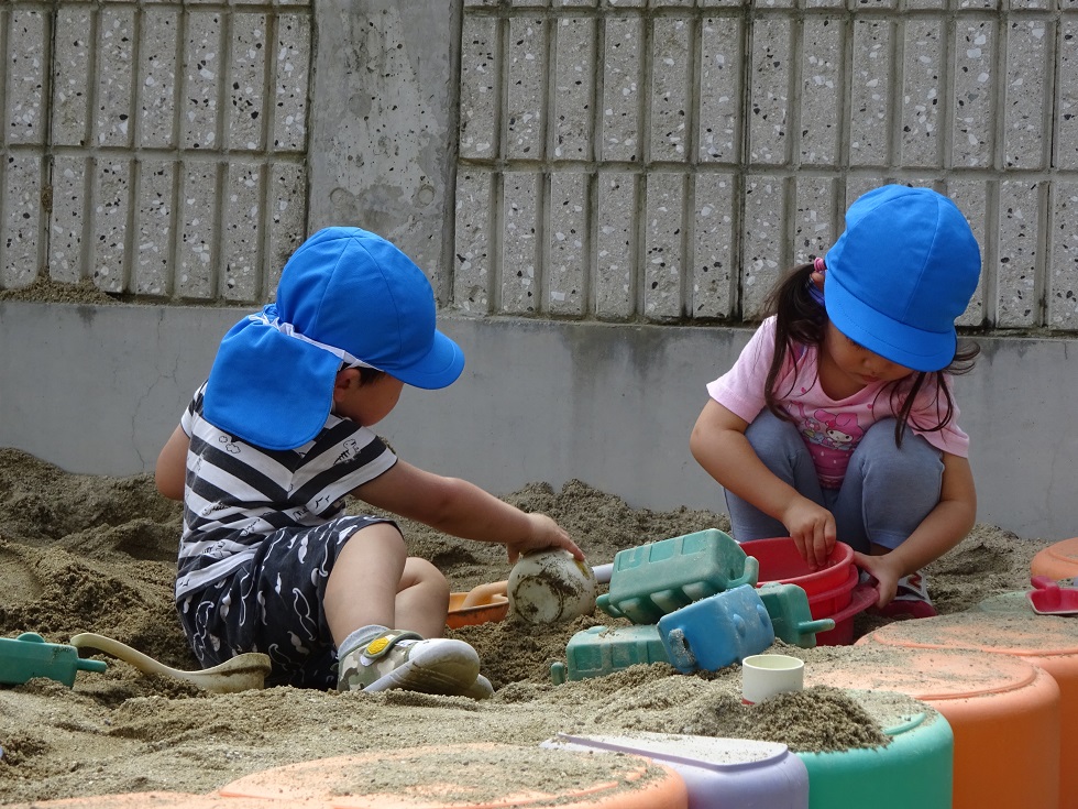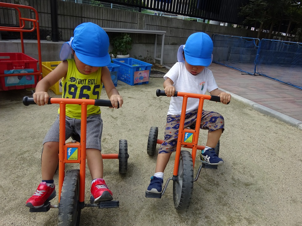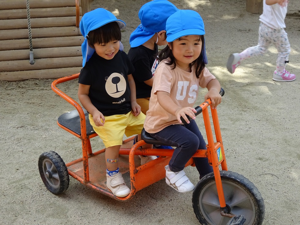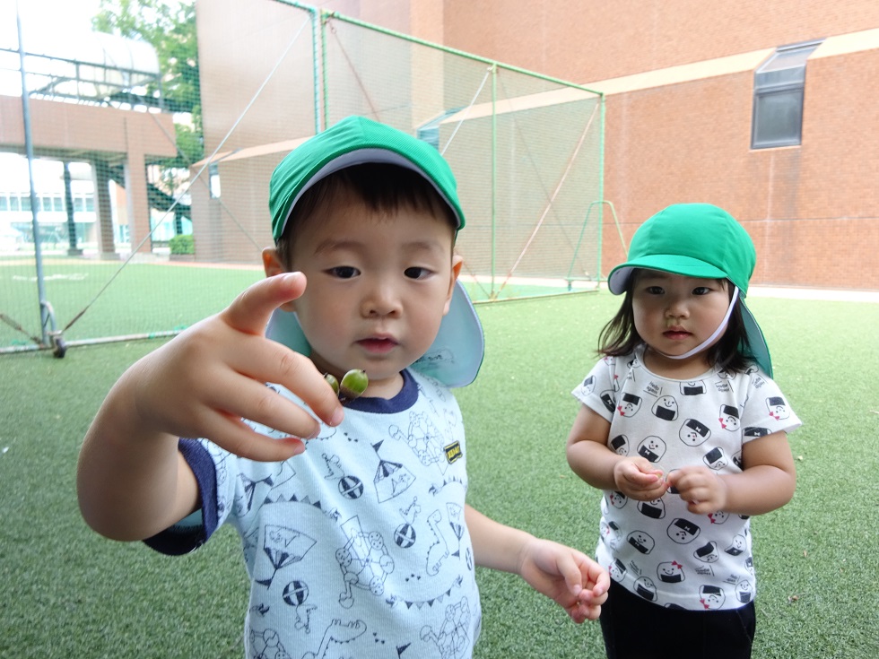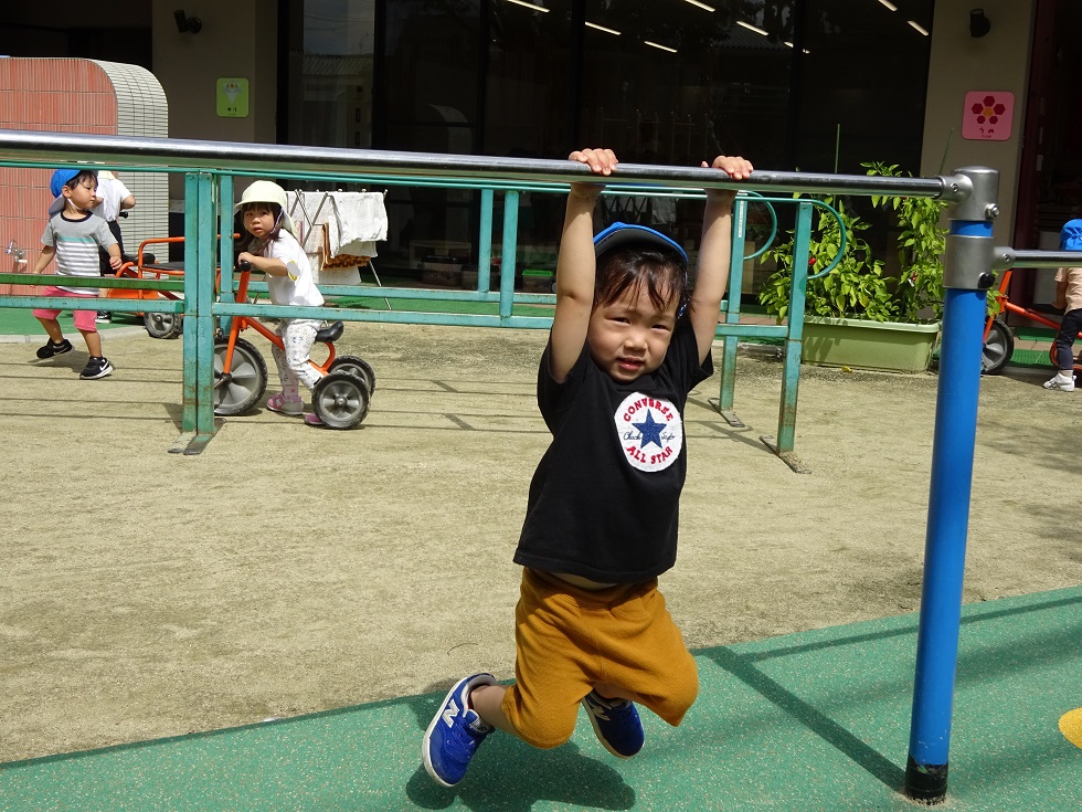 その後、ぱんだ組さんが久しぶりに園庭で遊びました。