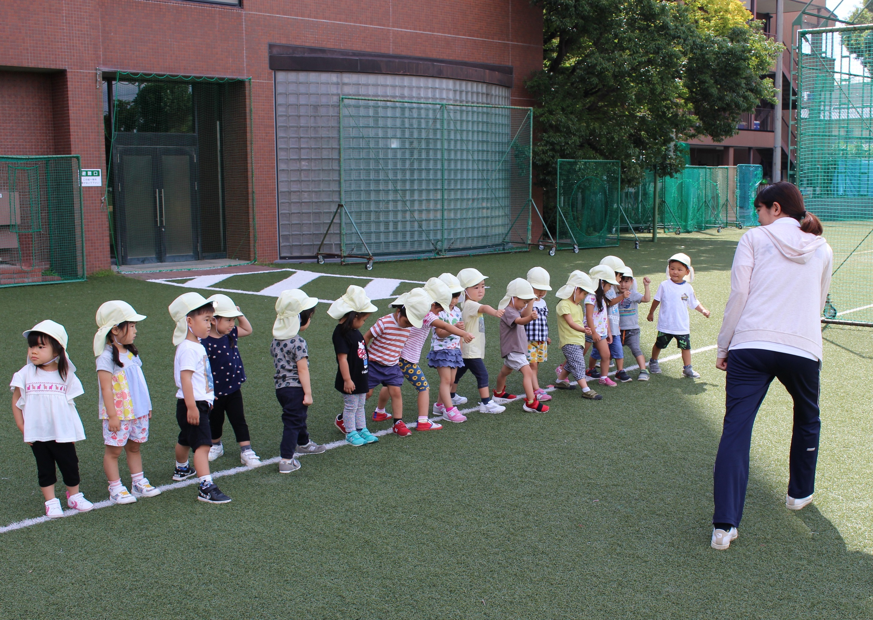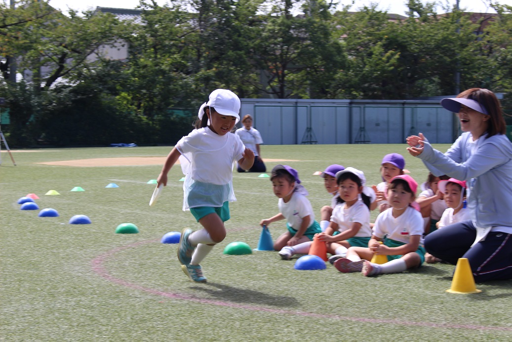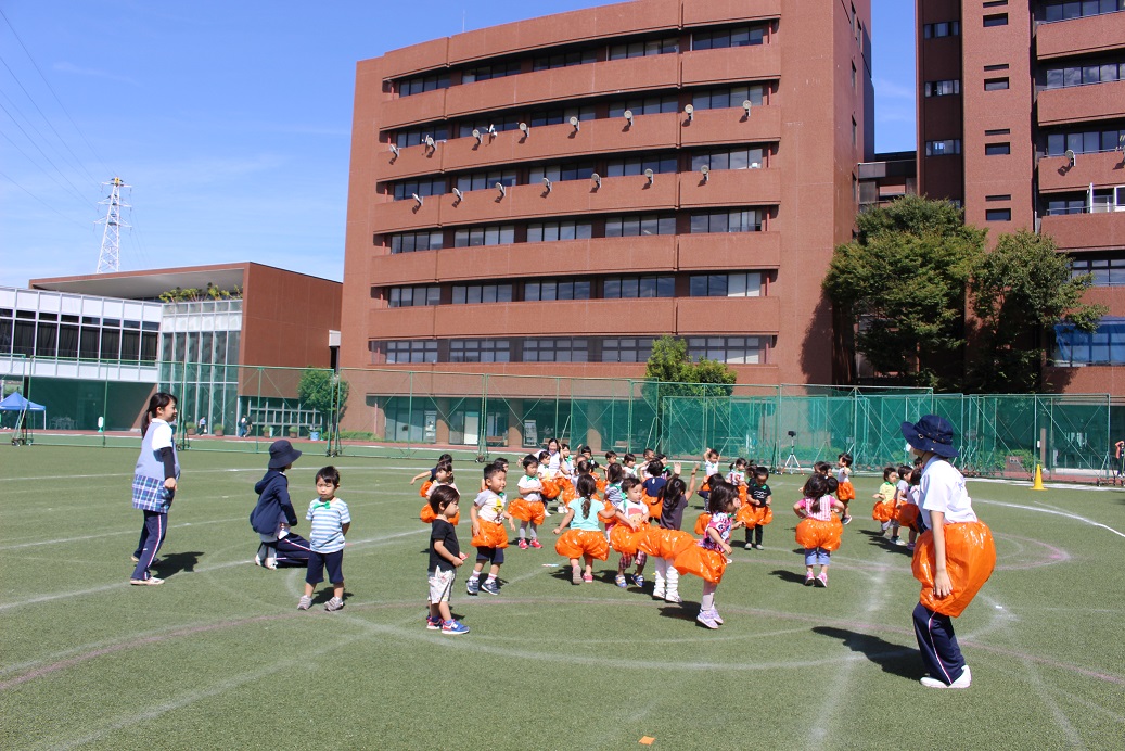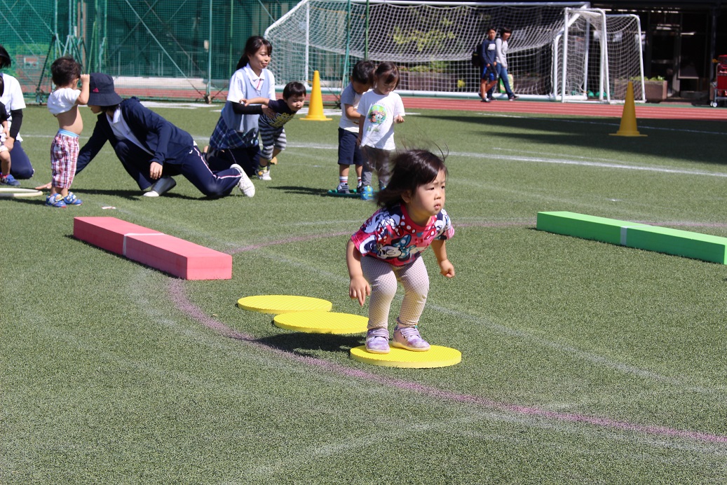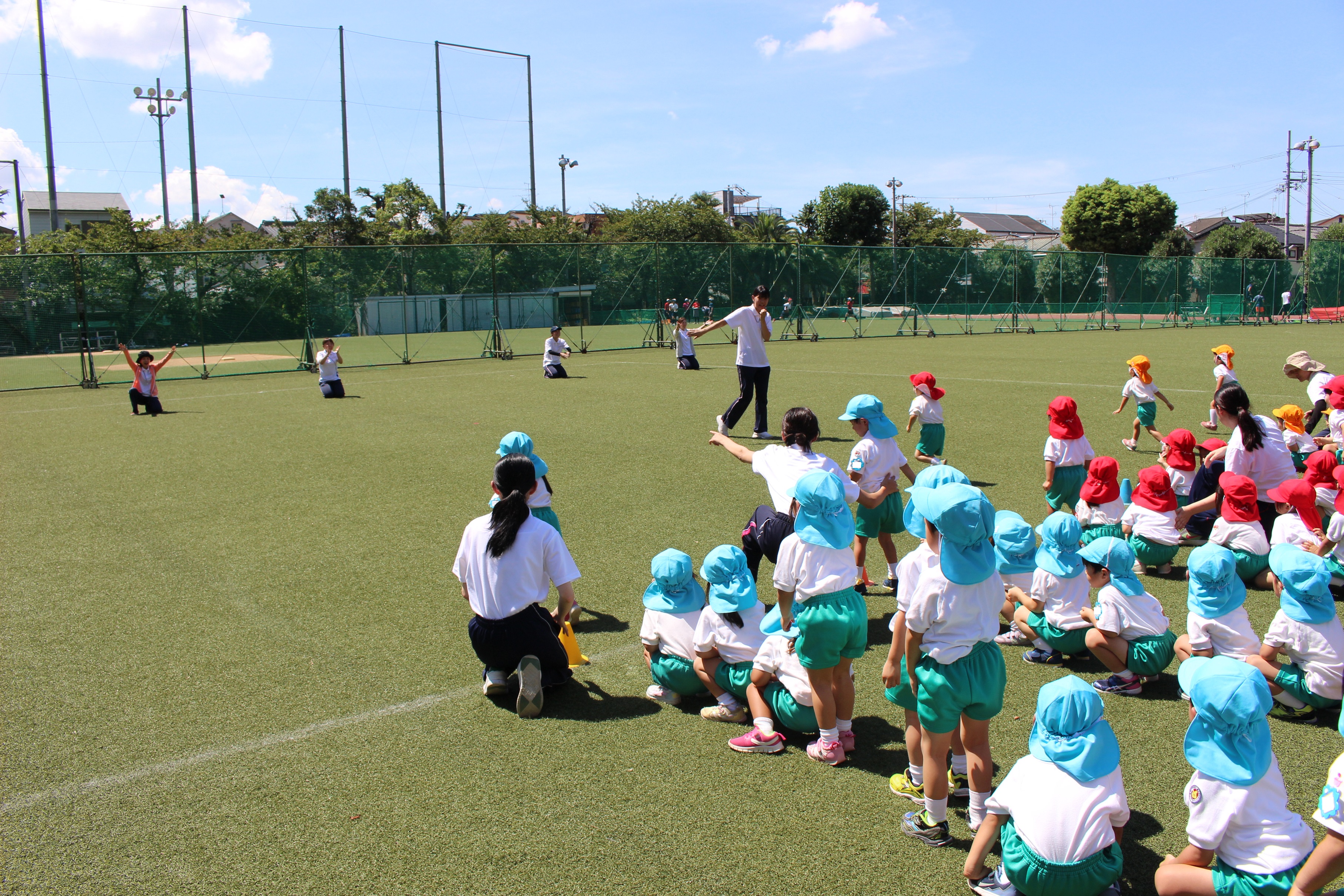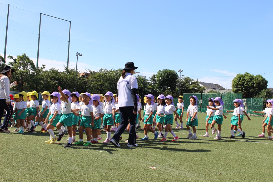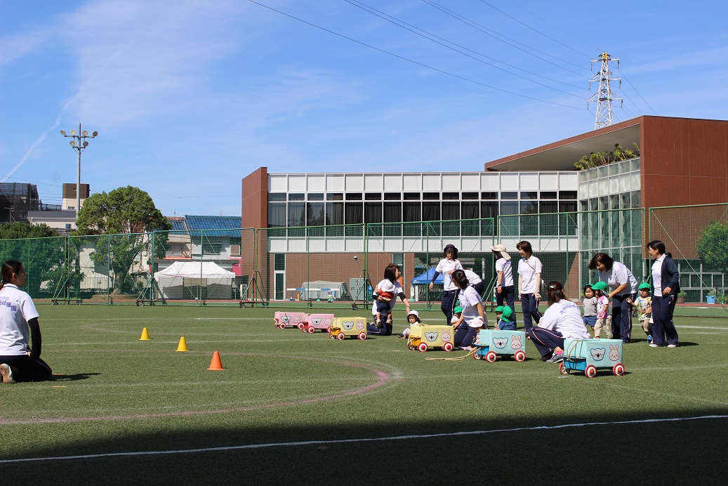 ひよこ組と一緒に広いグラウンドで「よーいドン!」を