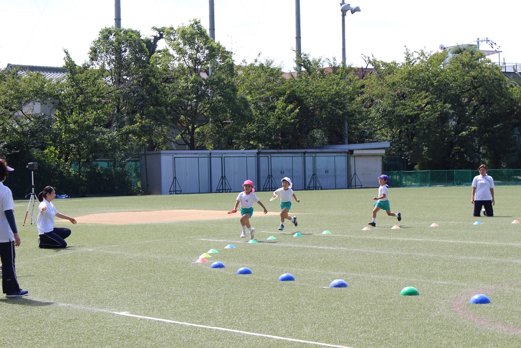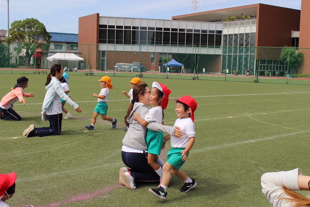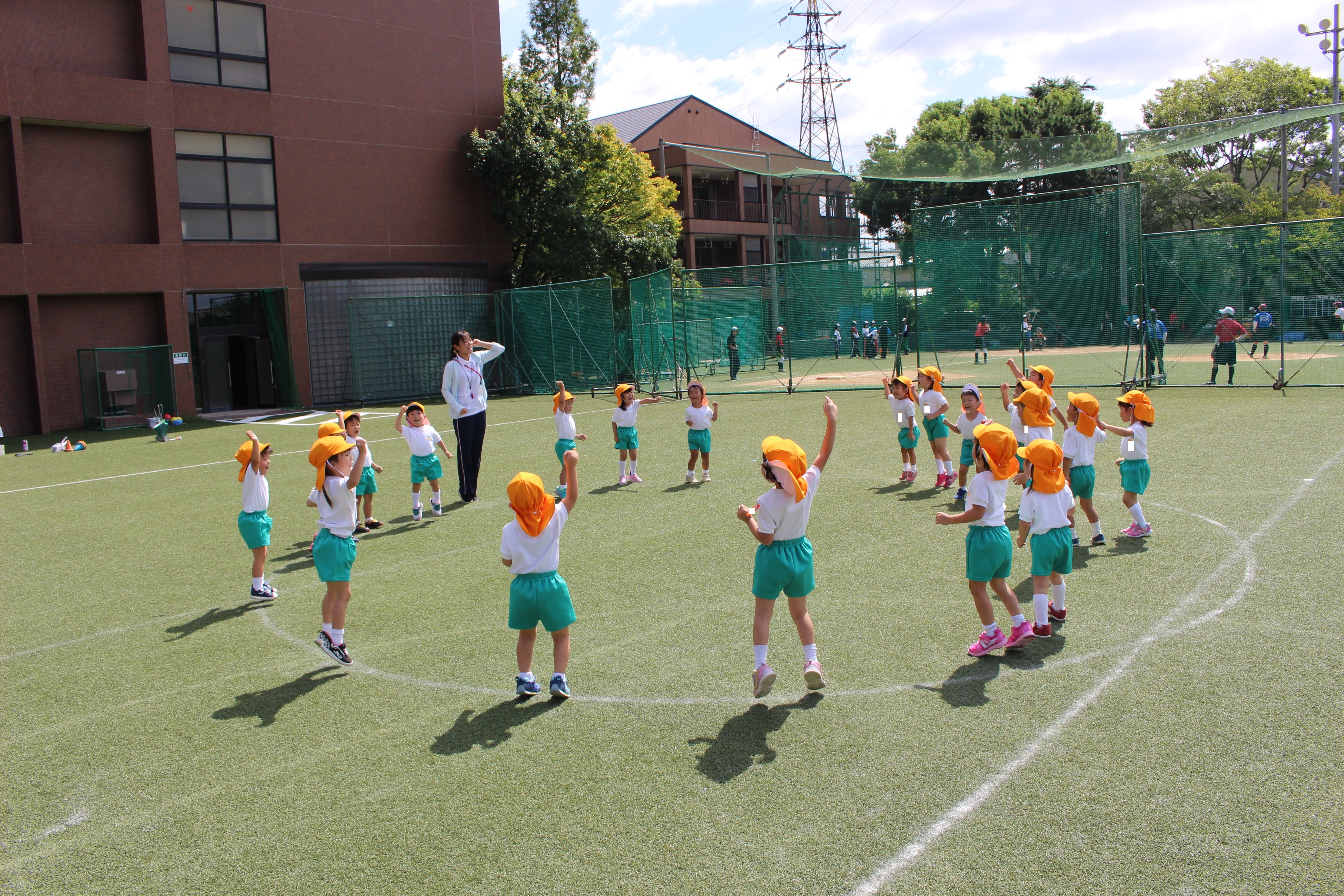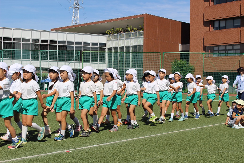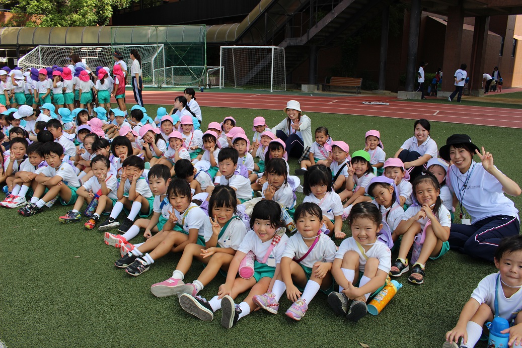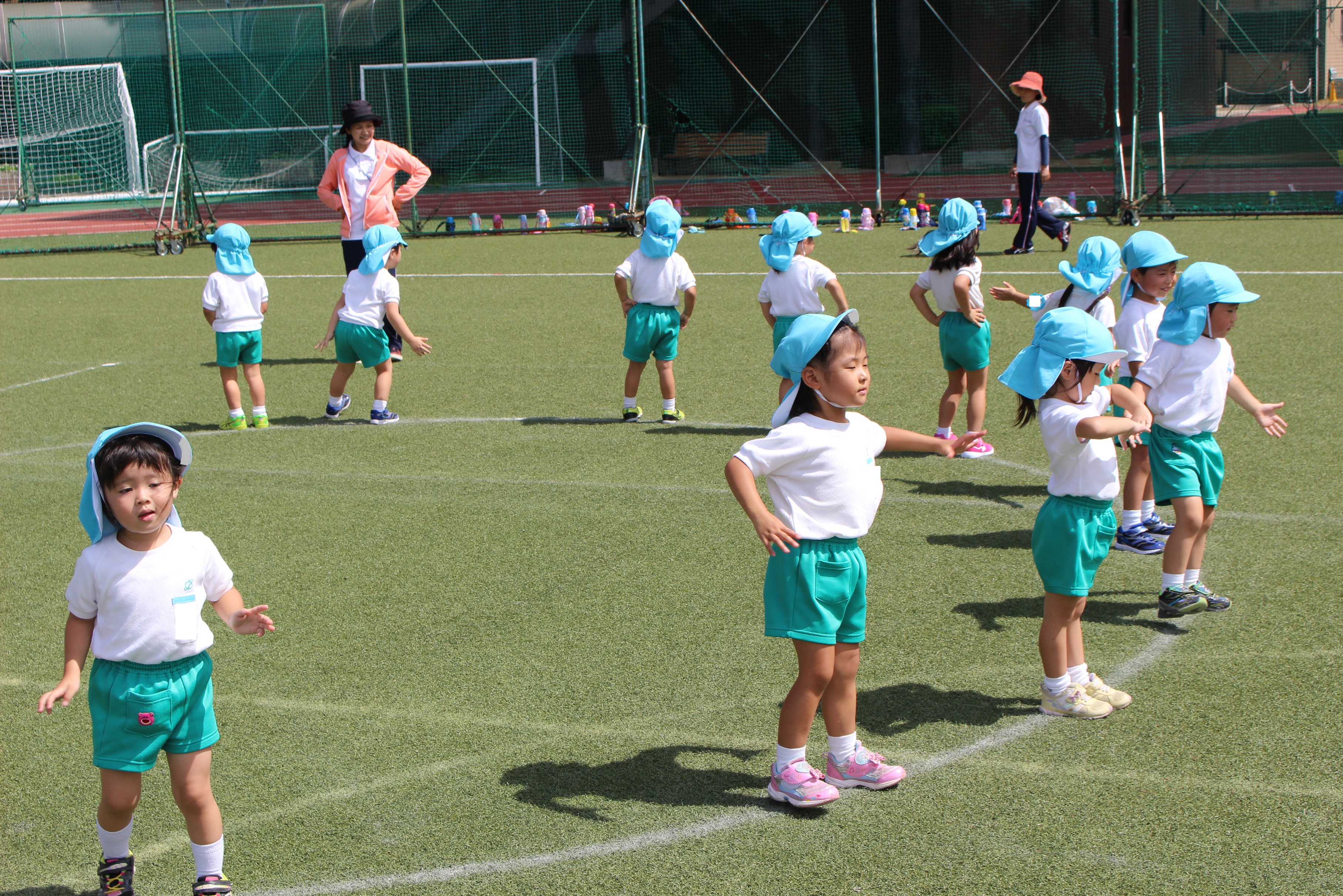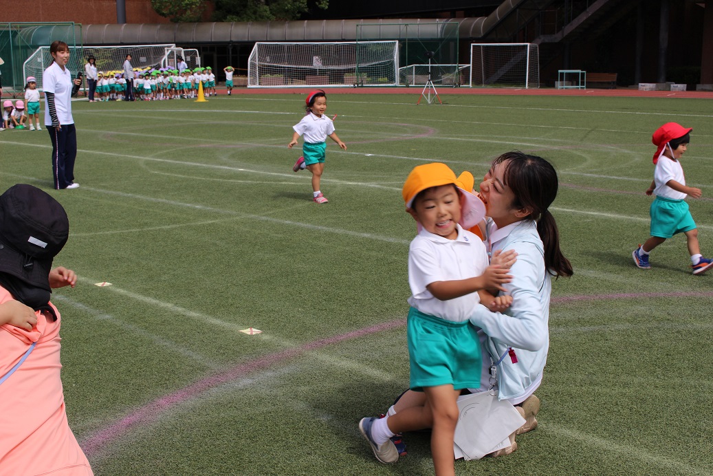 ひよこ組と一緒に広いグラウンドで「よーいドン!」を