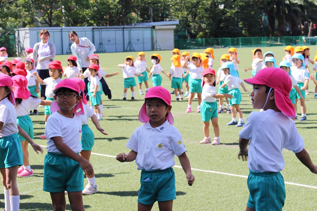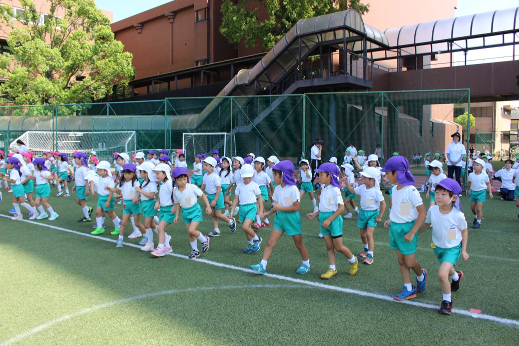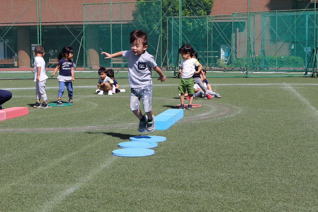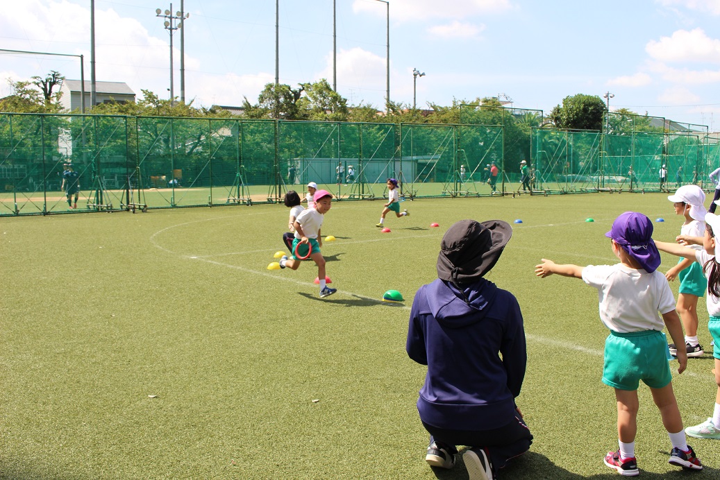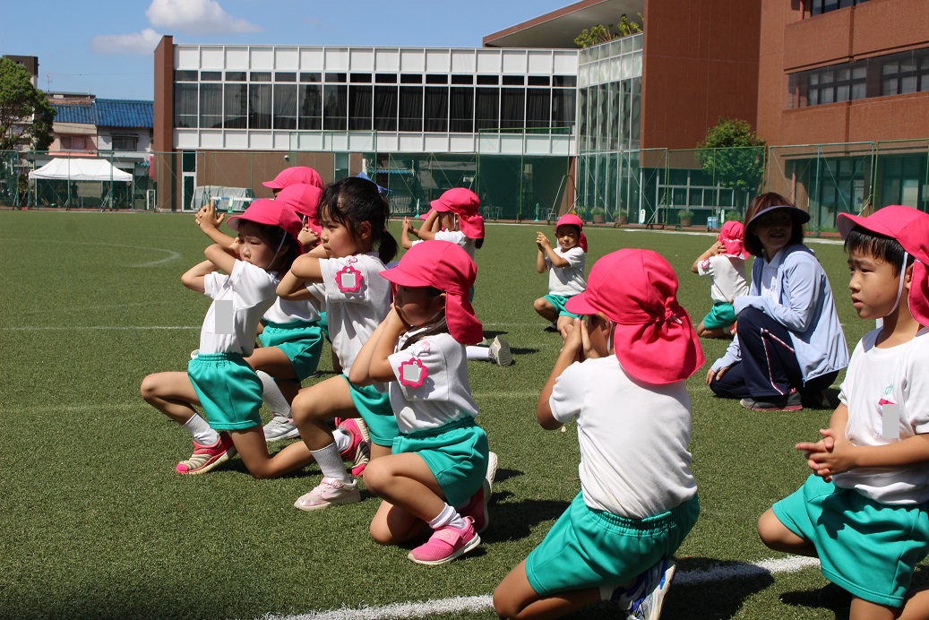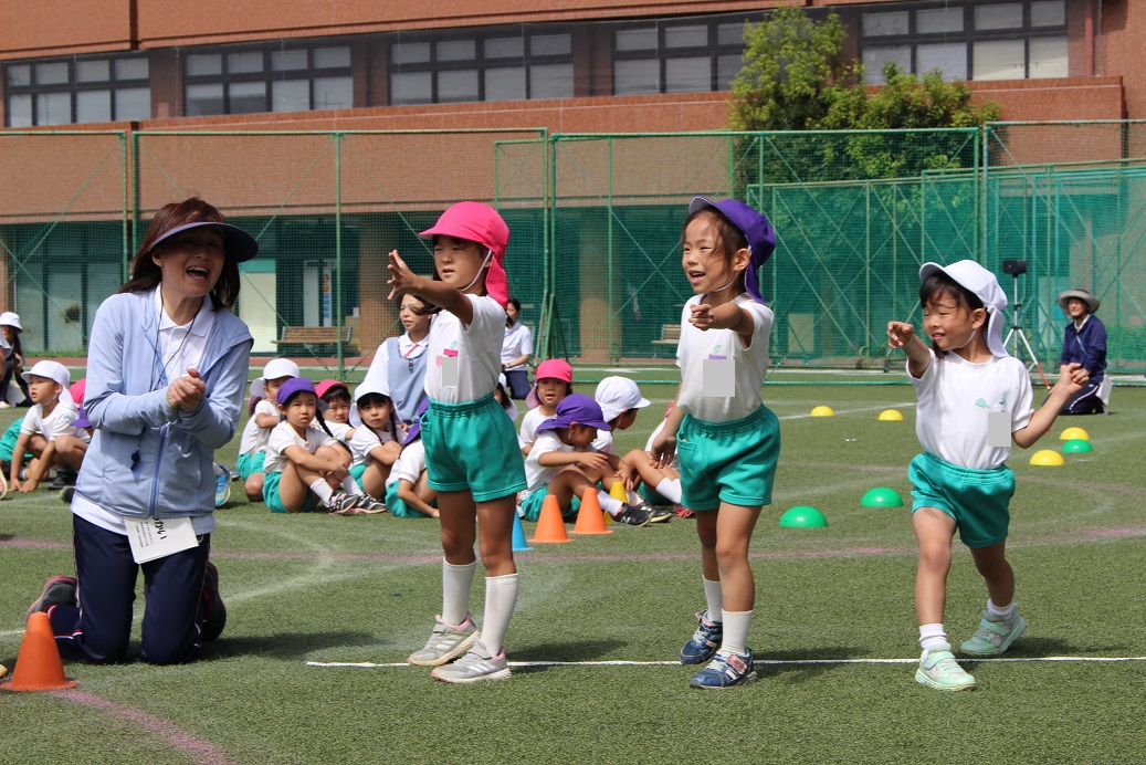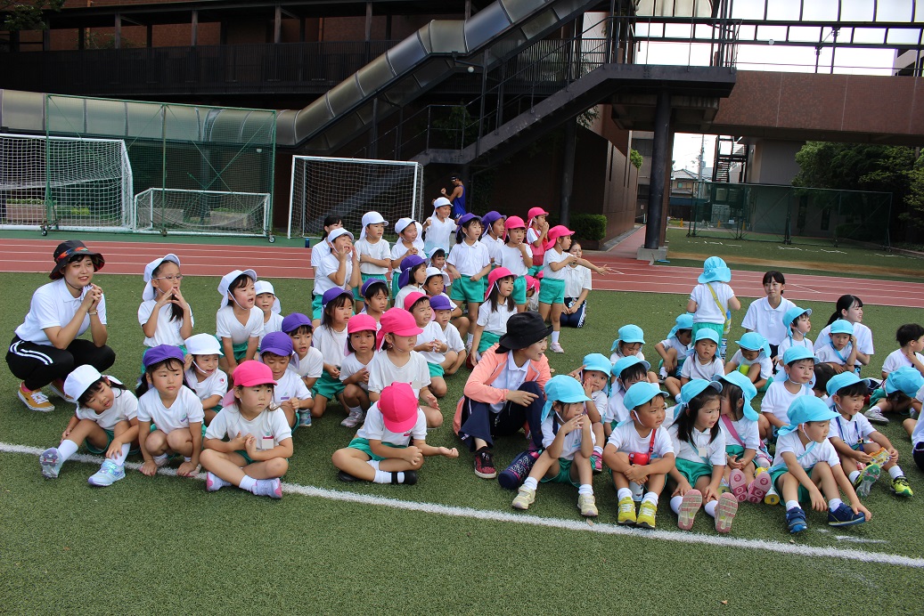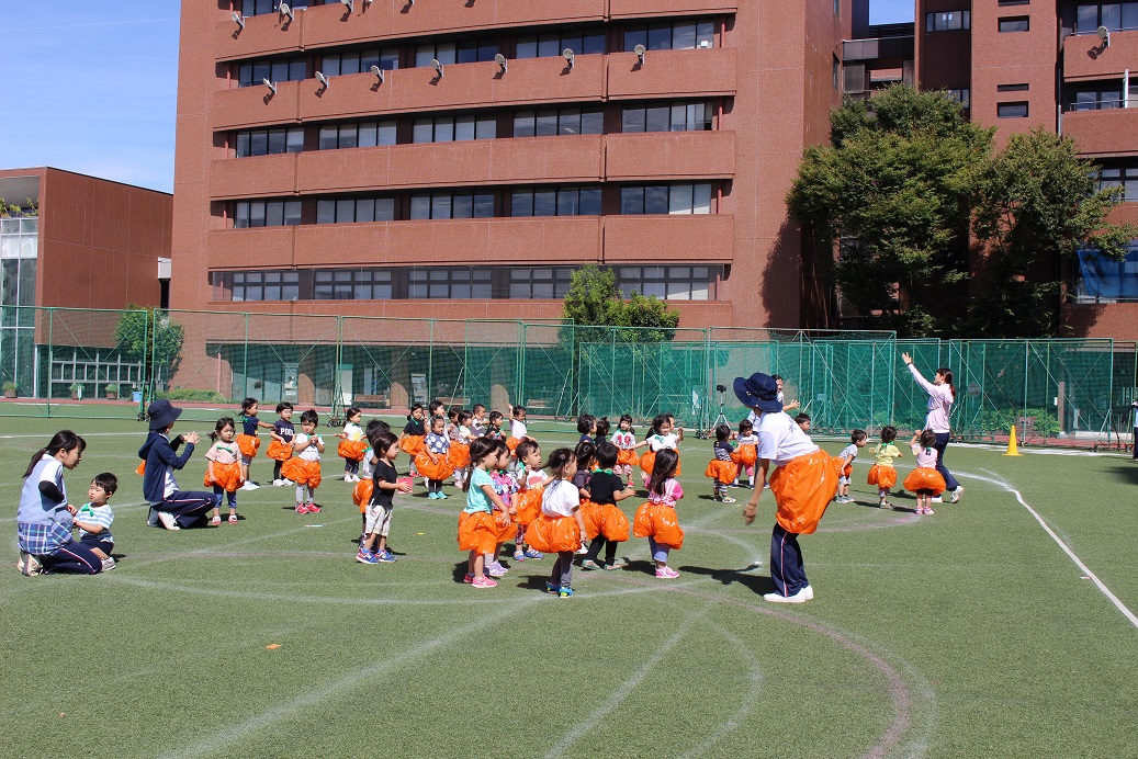 ひよこ組と一緒に広いグラウンドで「よーいドン!」を