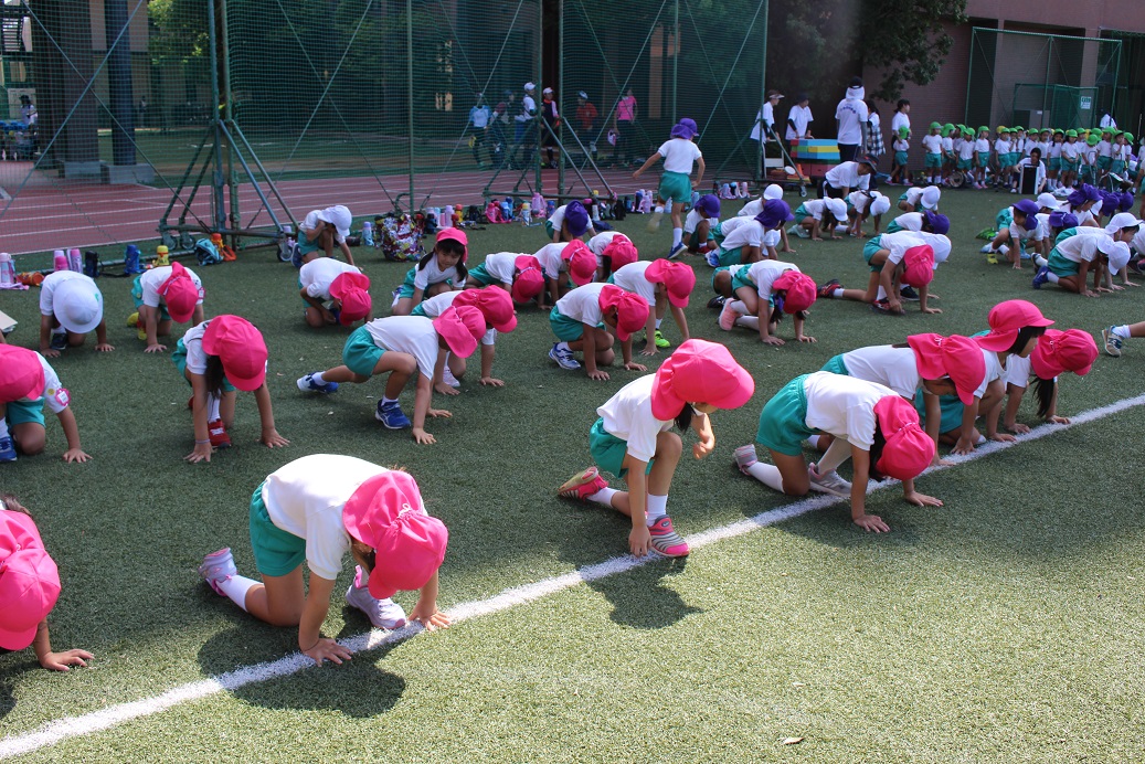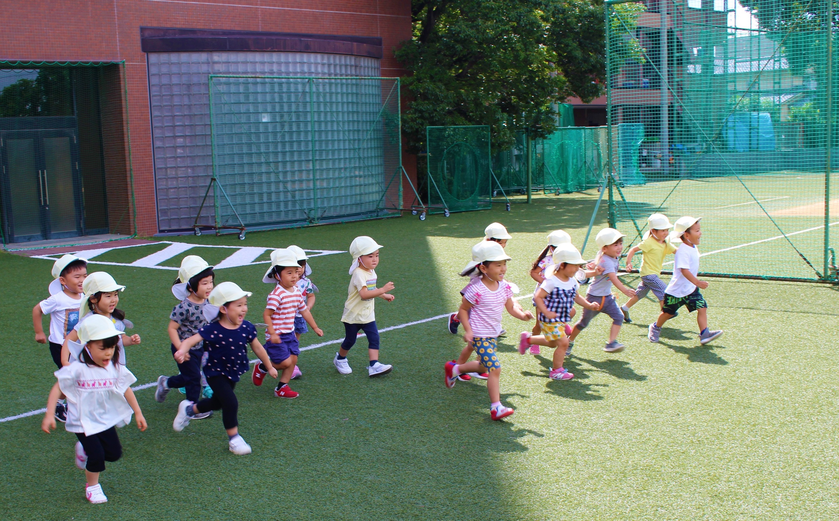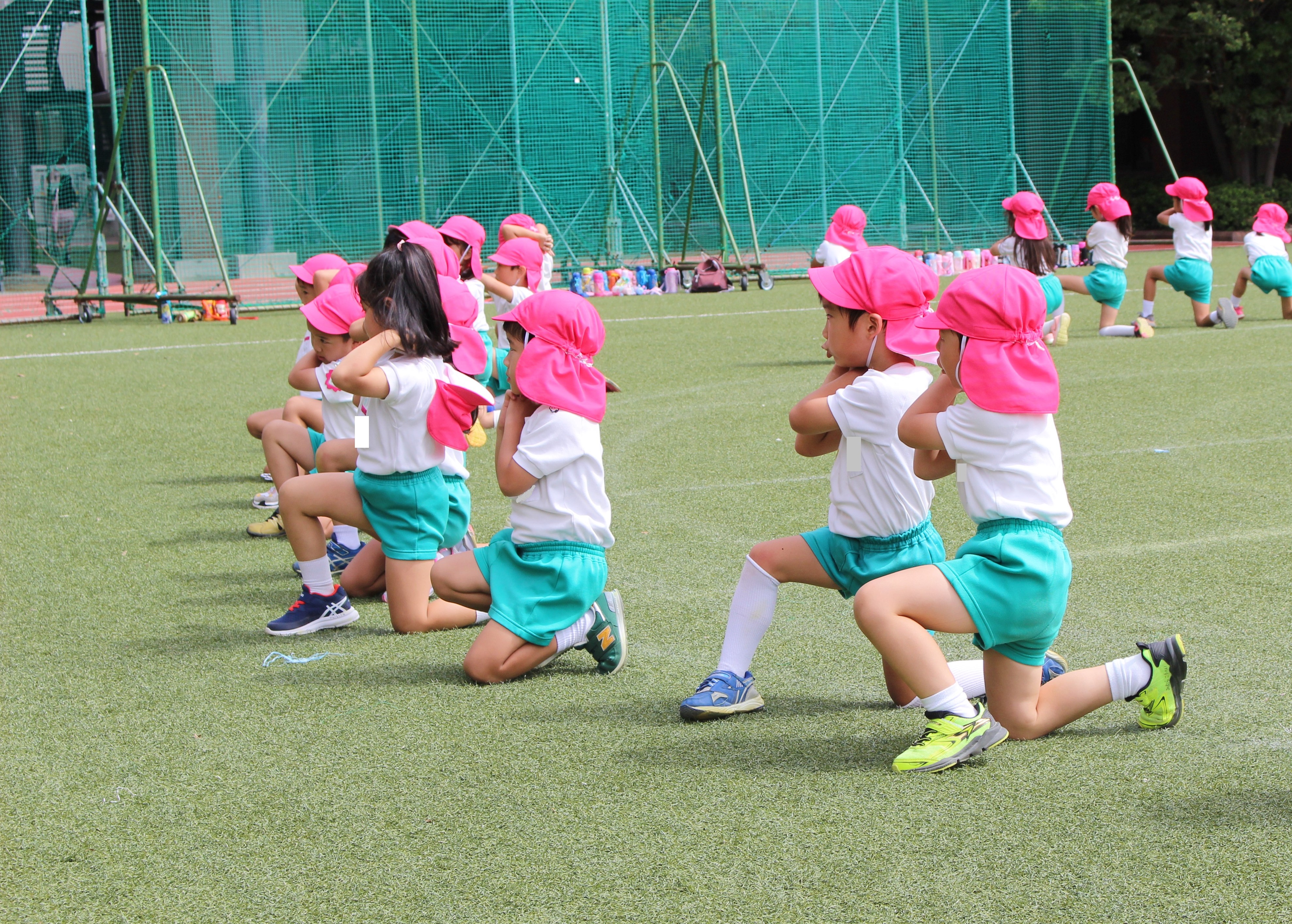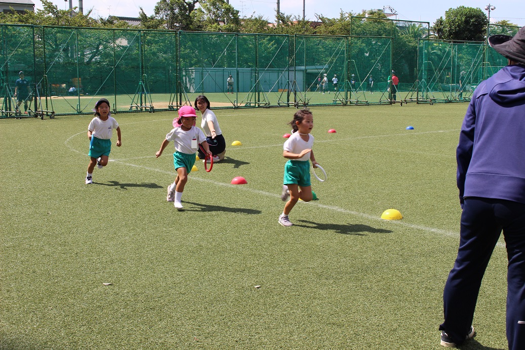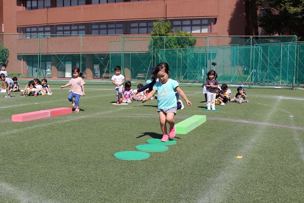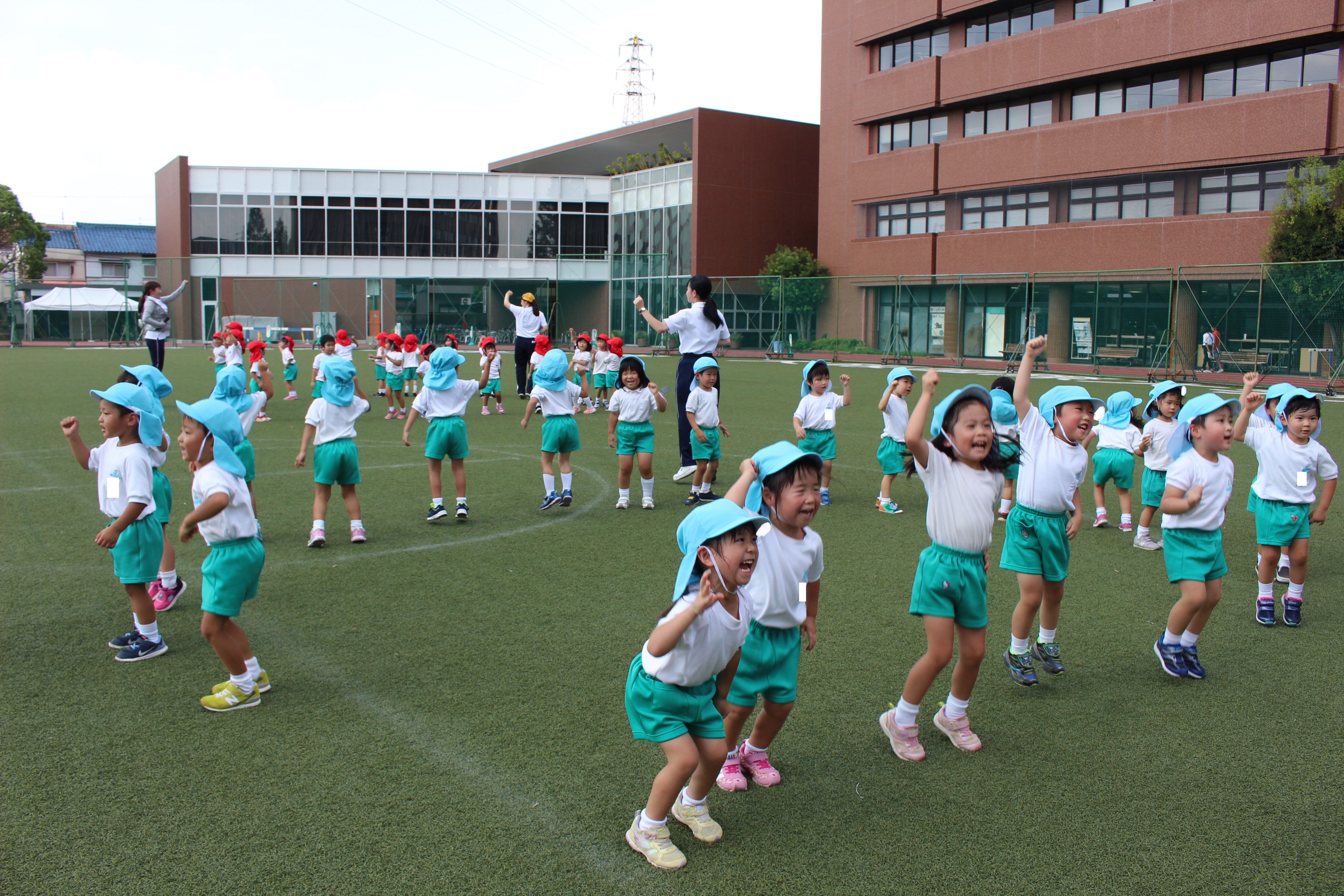 ひよこ組と一緒に広いグラウンドで「よーいドン!」を