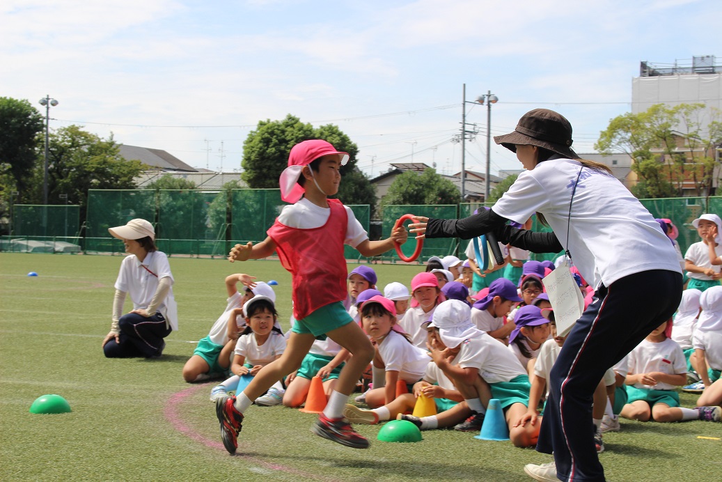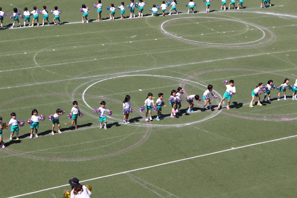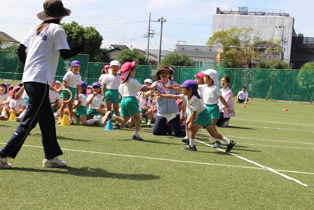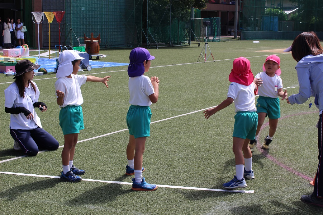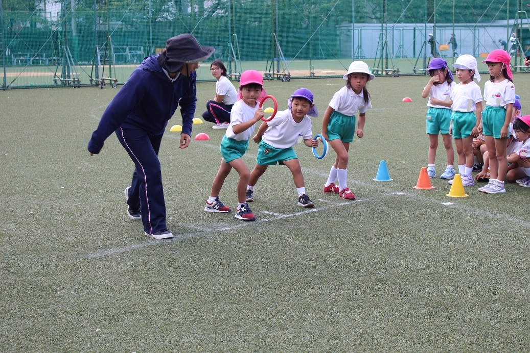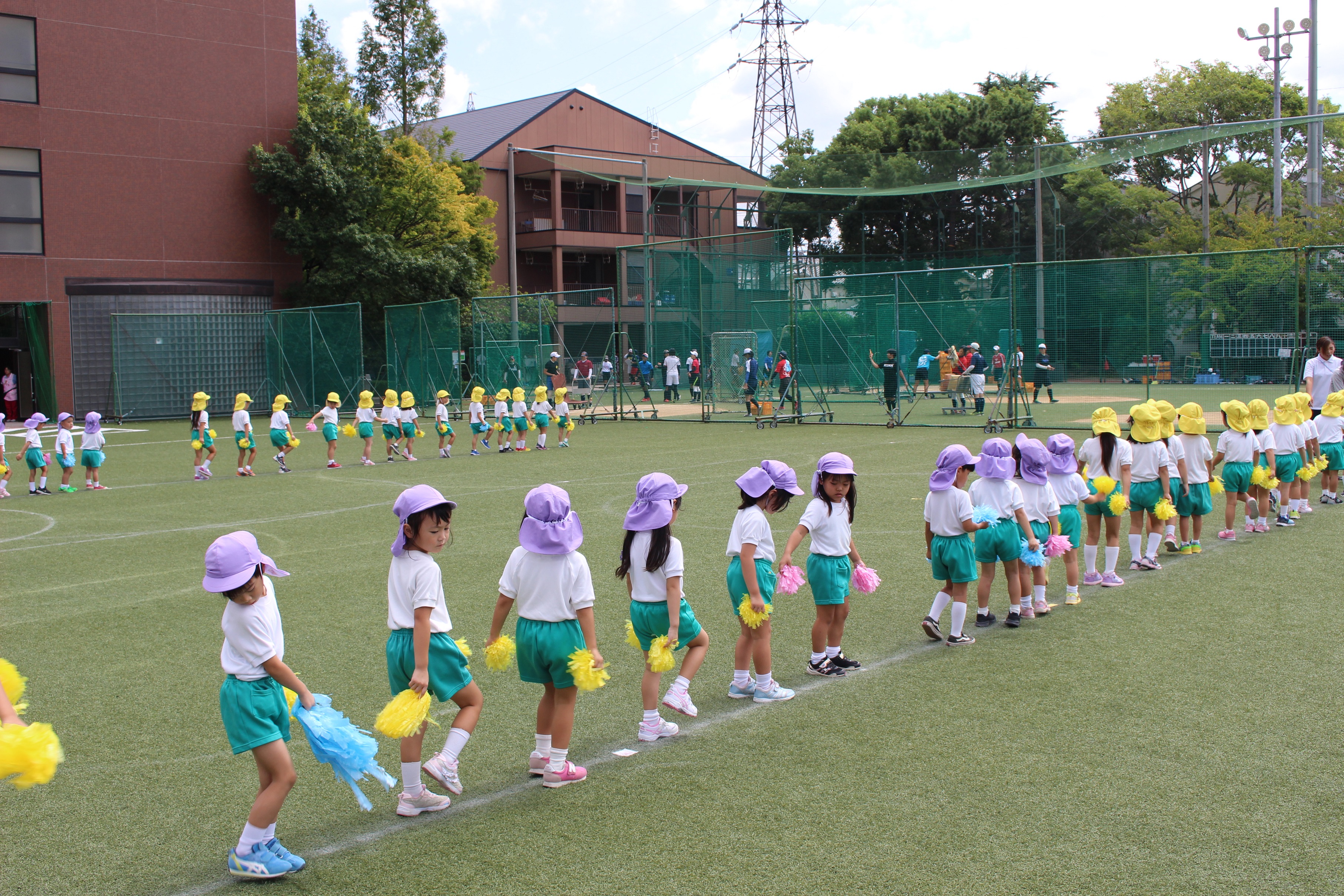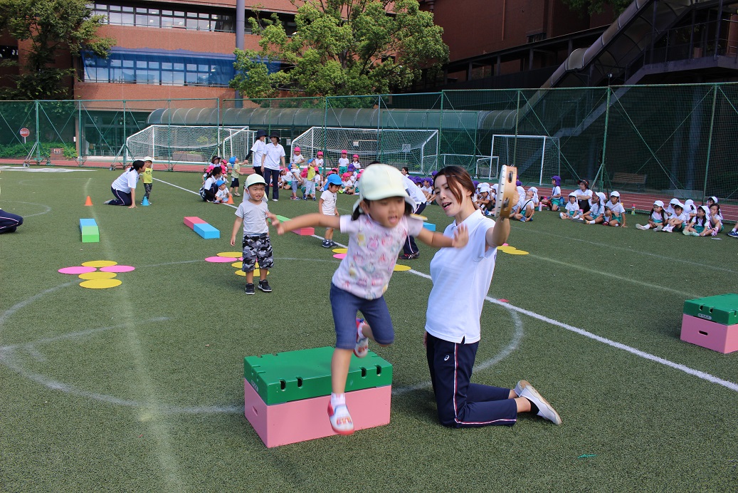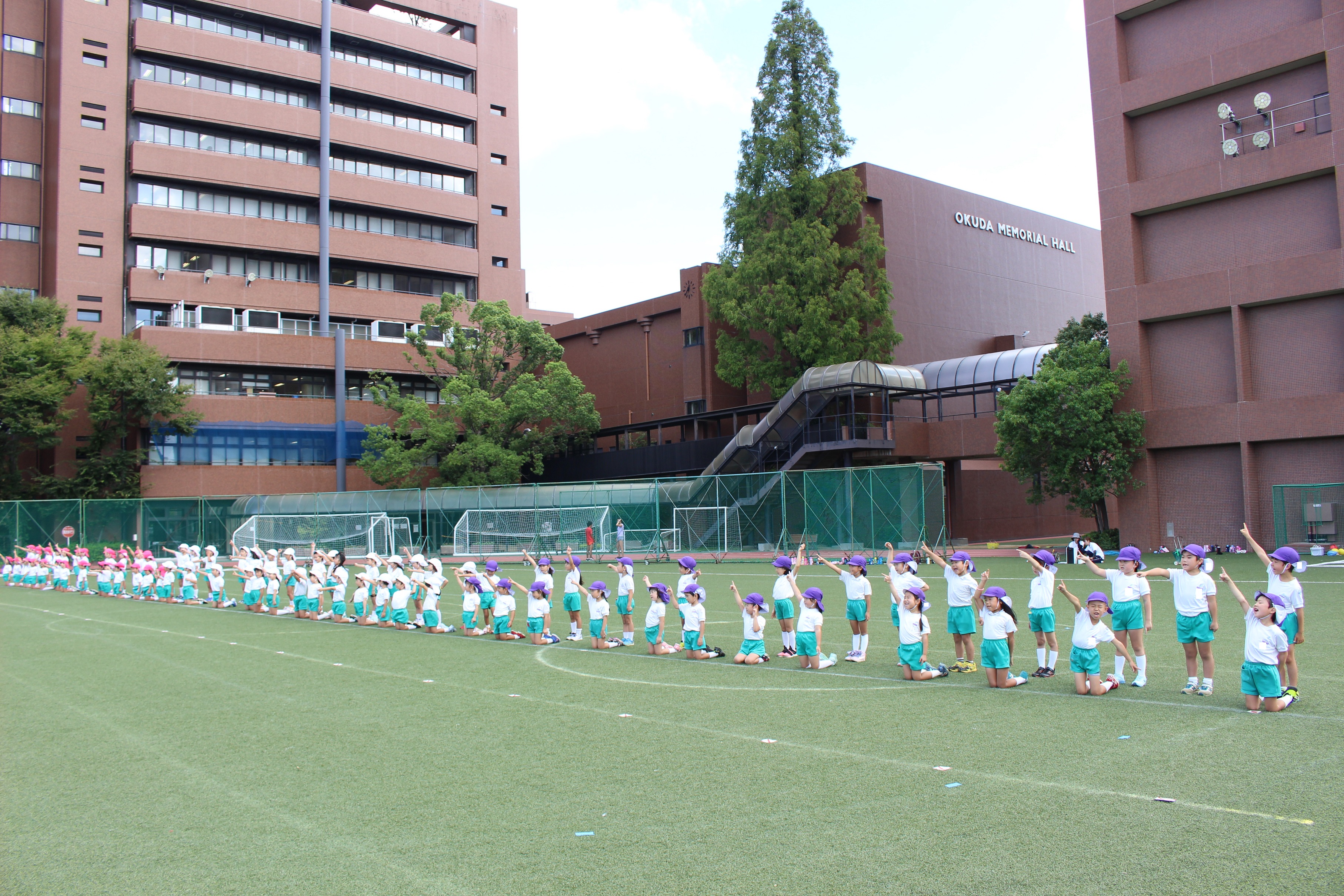 ひよこ組と一緒に広いグラウンドで「よーいドン!」を