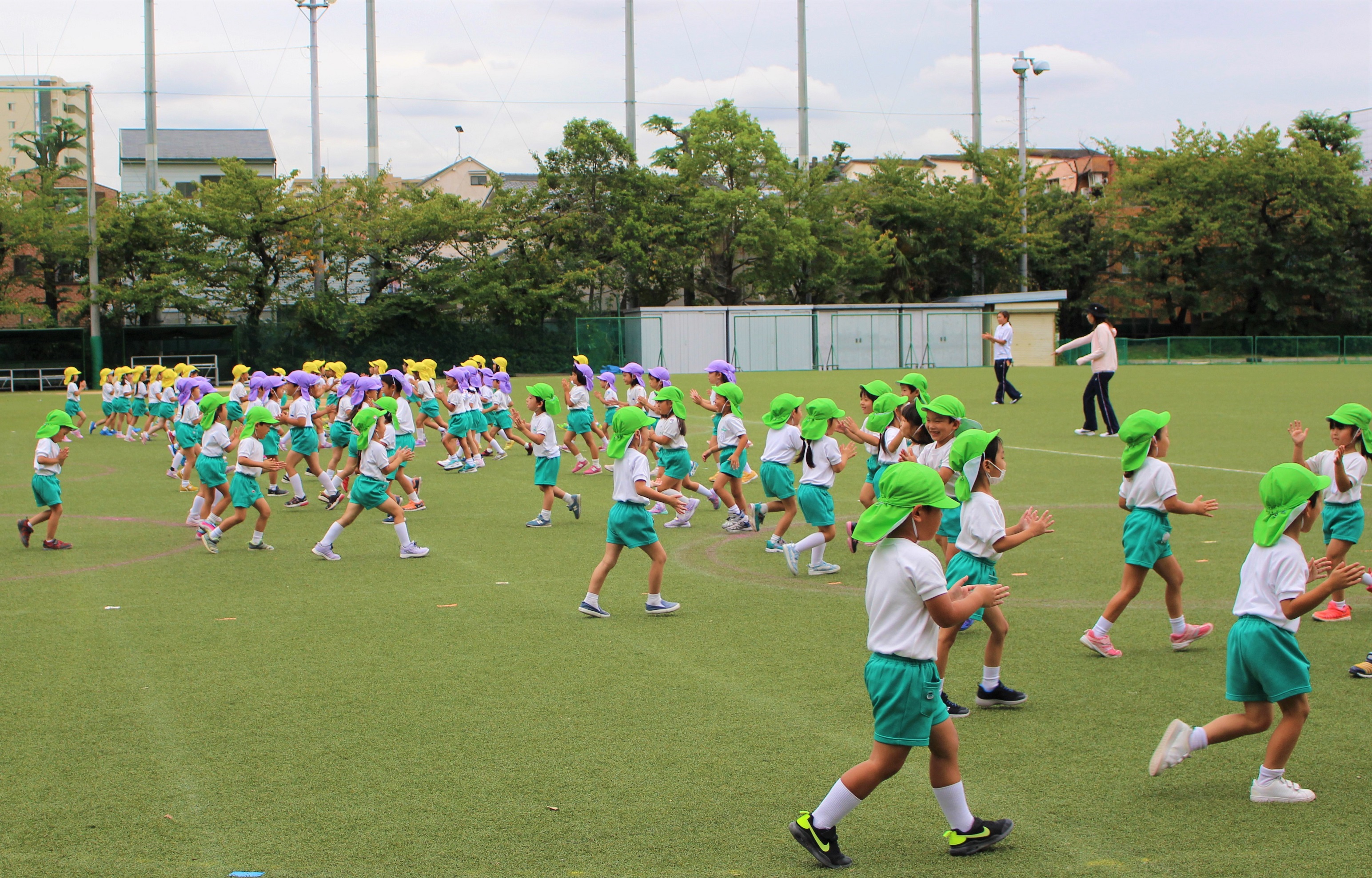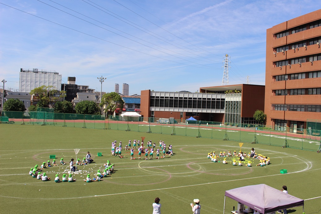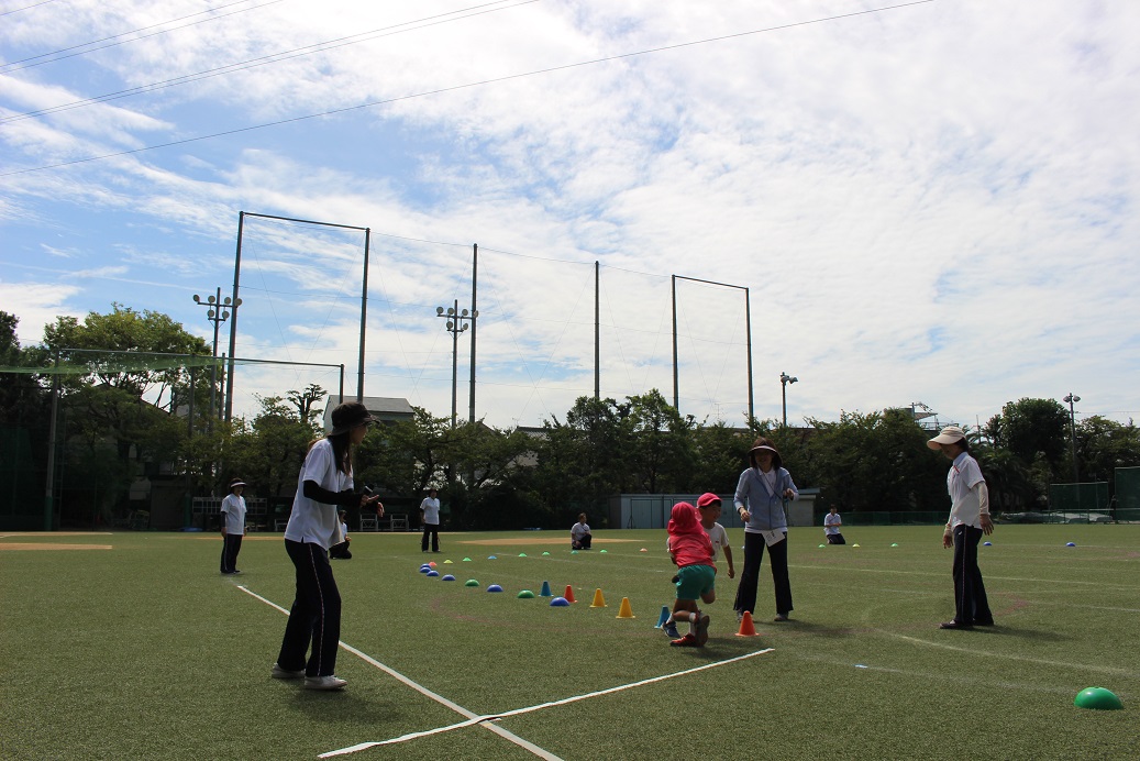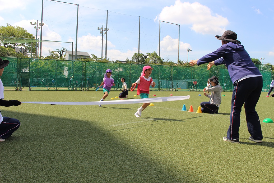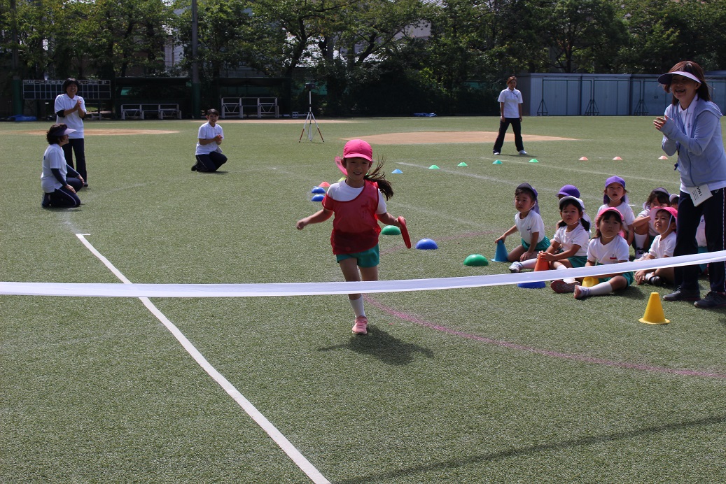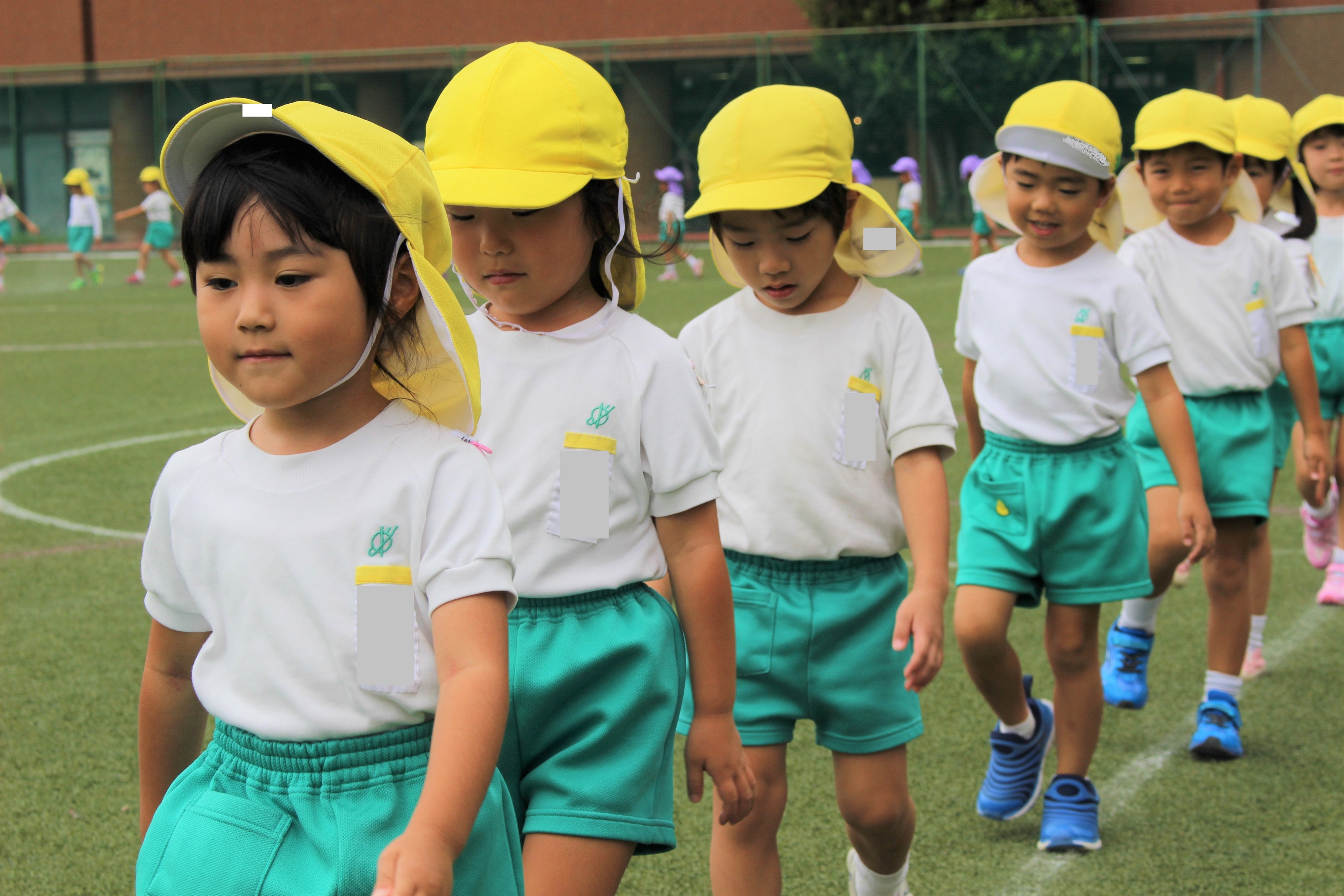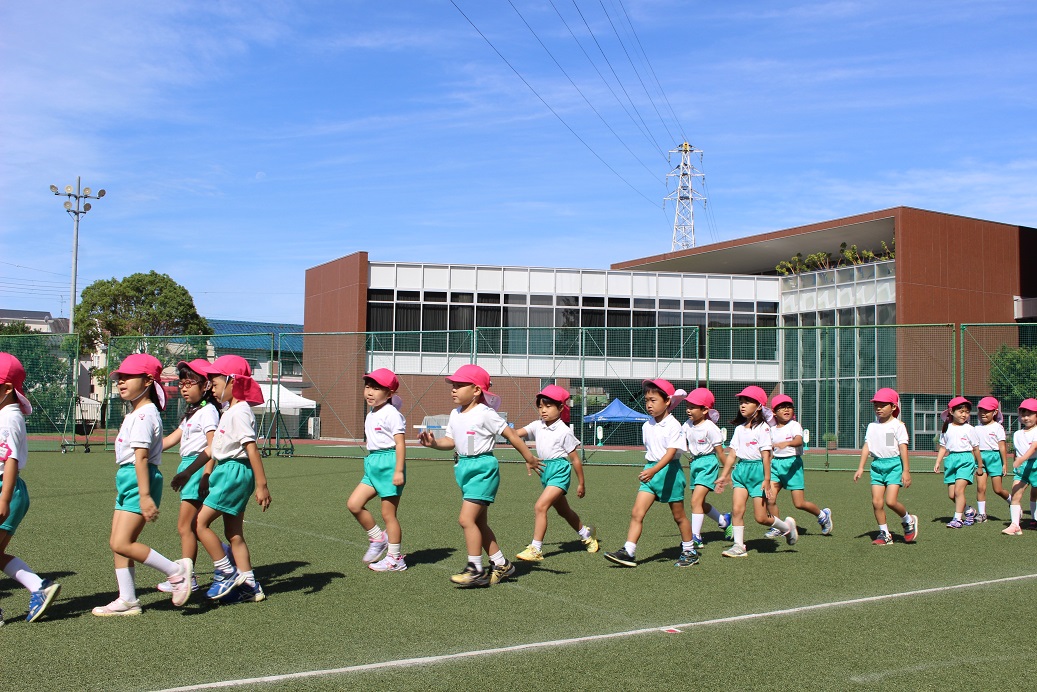 ひよこ組と一緒に広いグラウンドで「よーいドン!」を