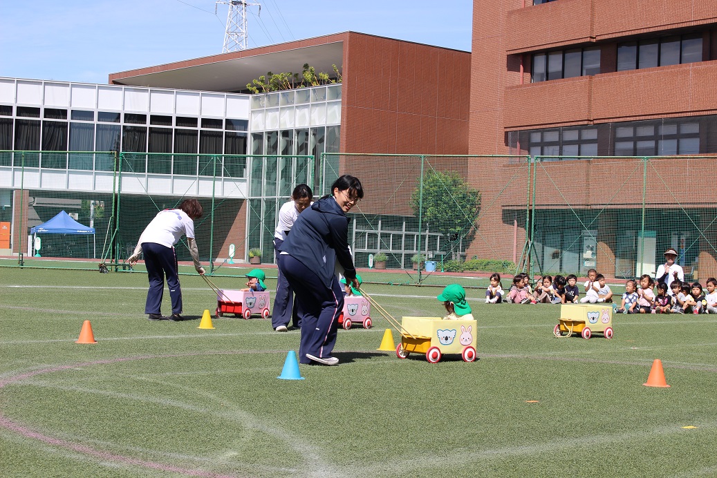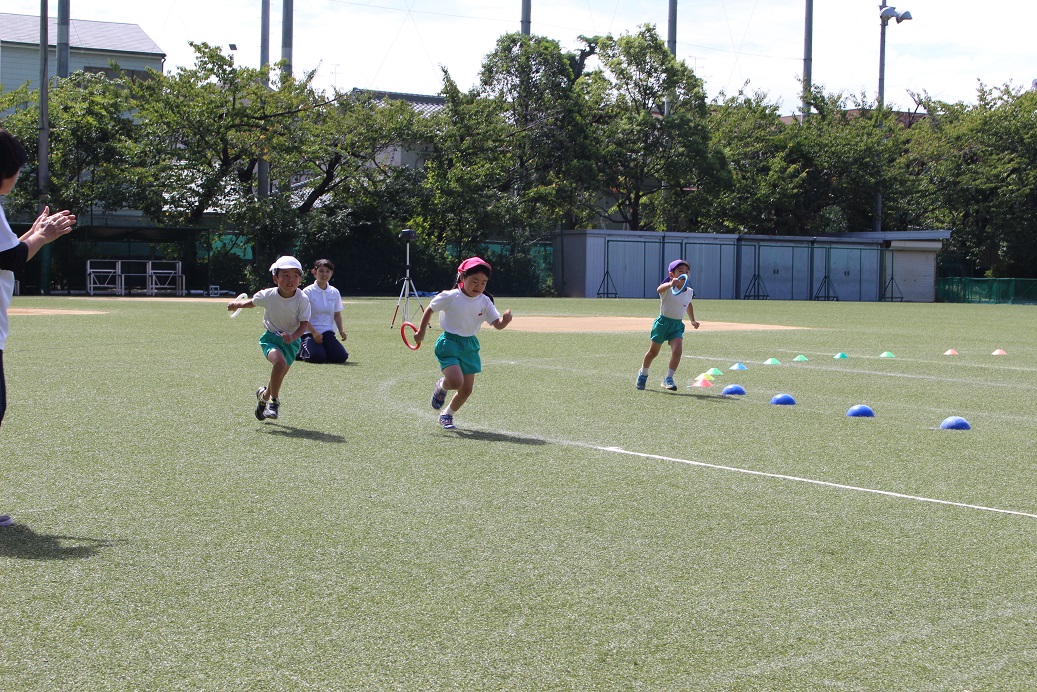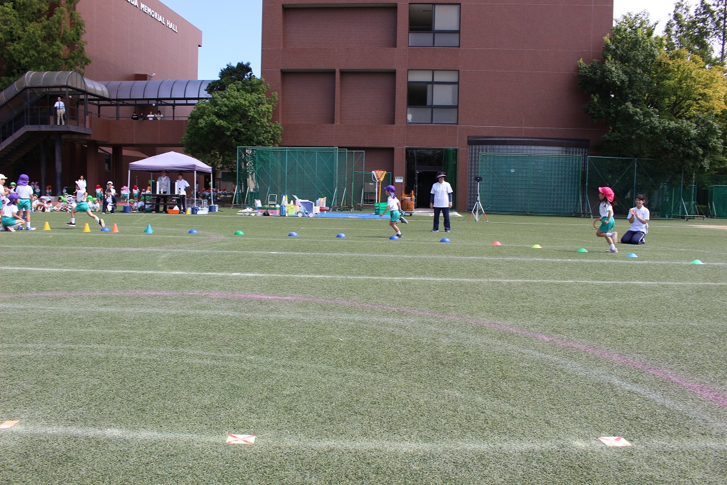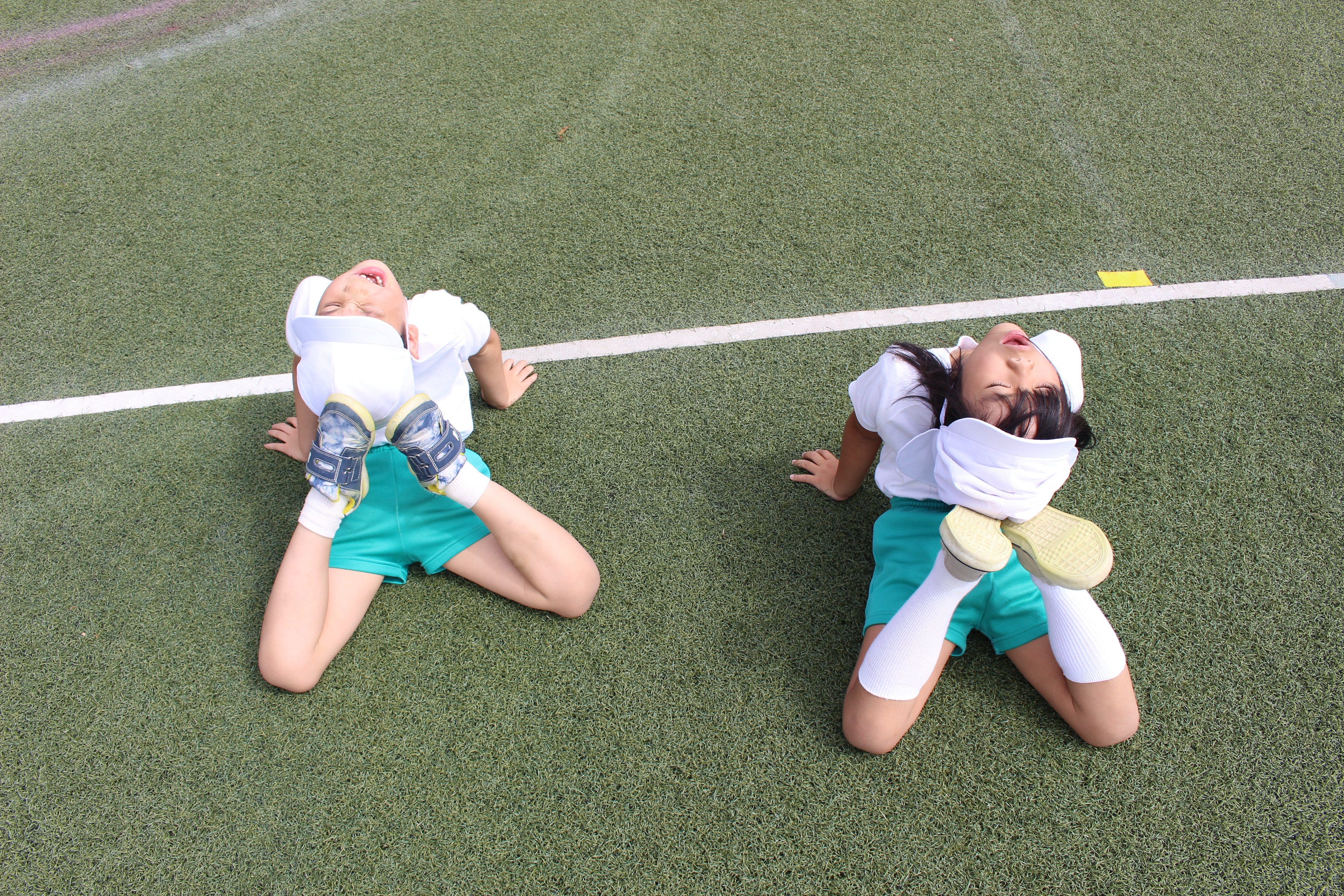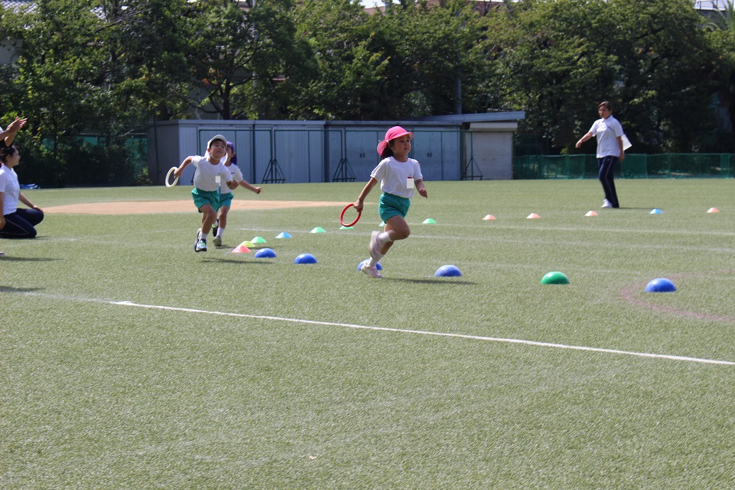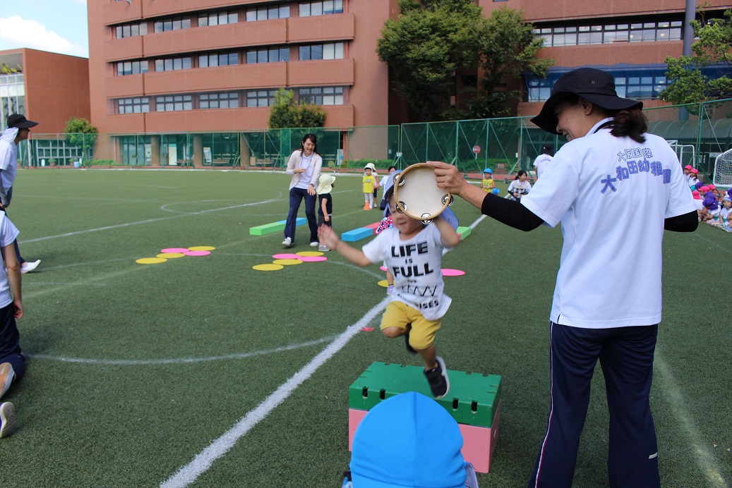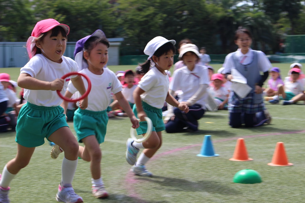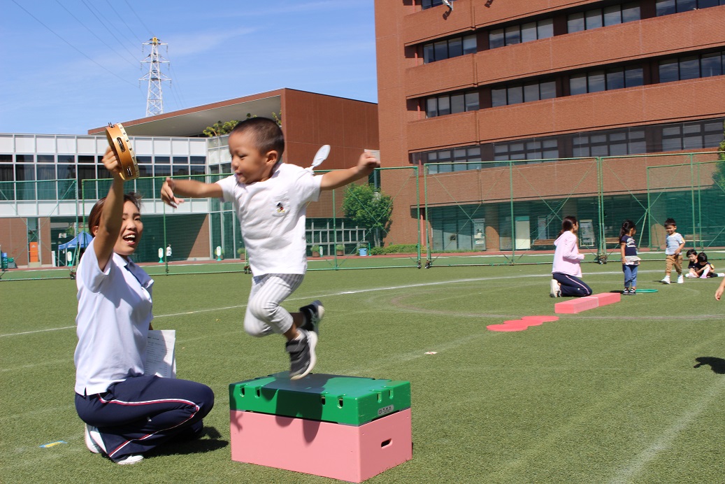 ひよこ組と一緒に広いグラウンドで「よーいドン!」を