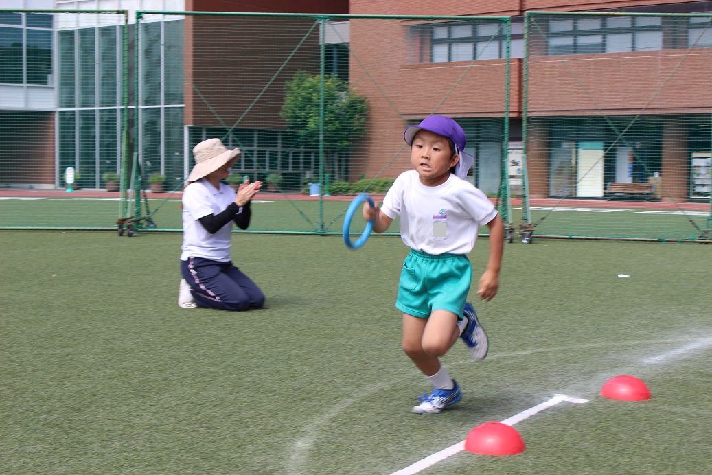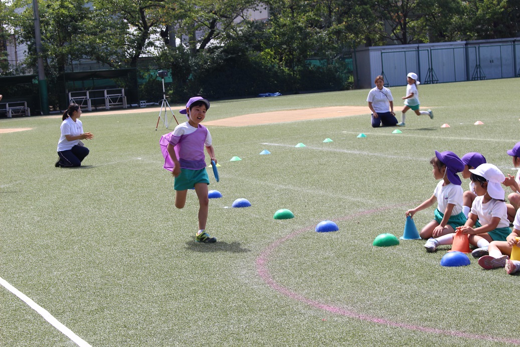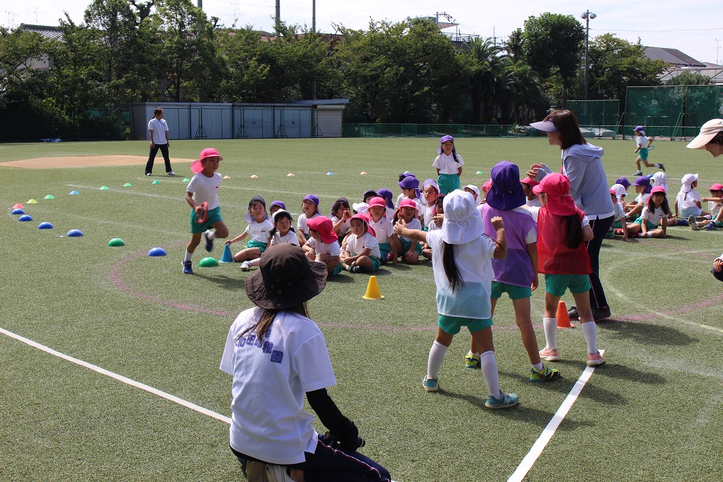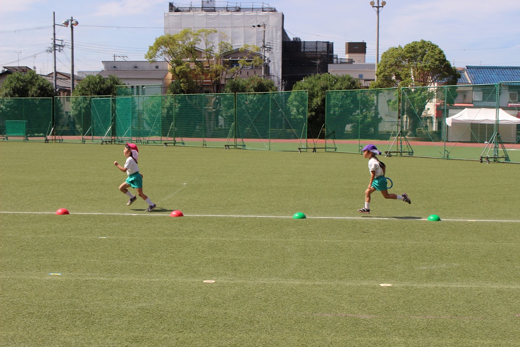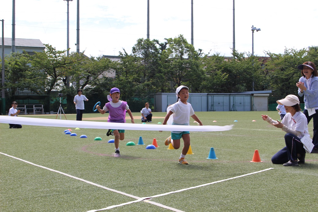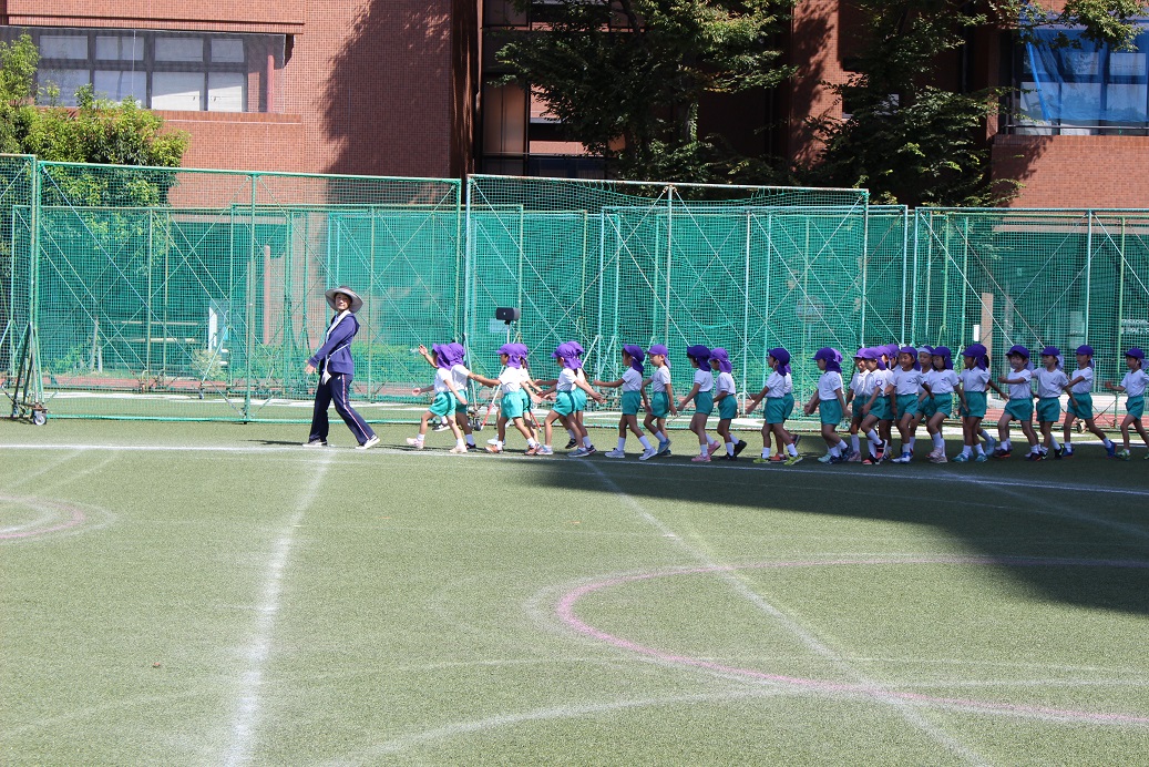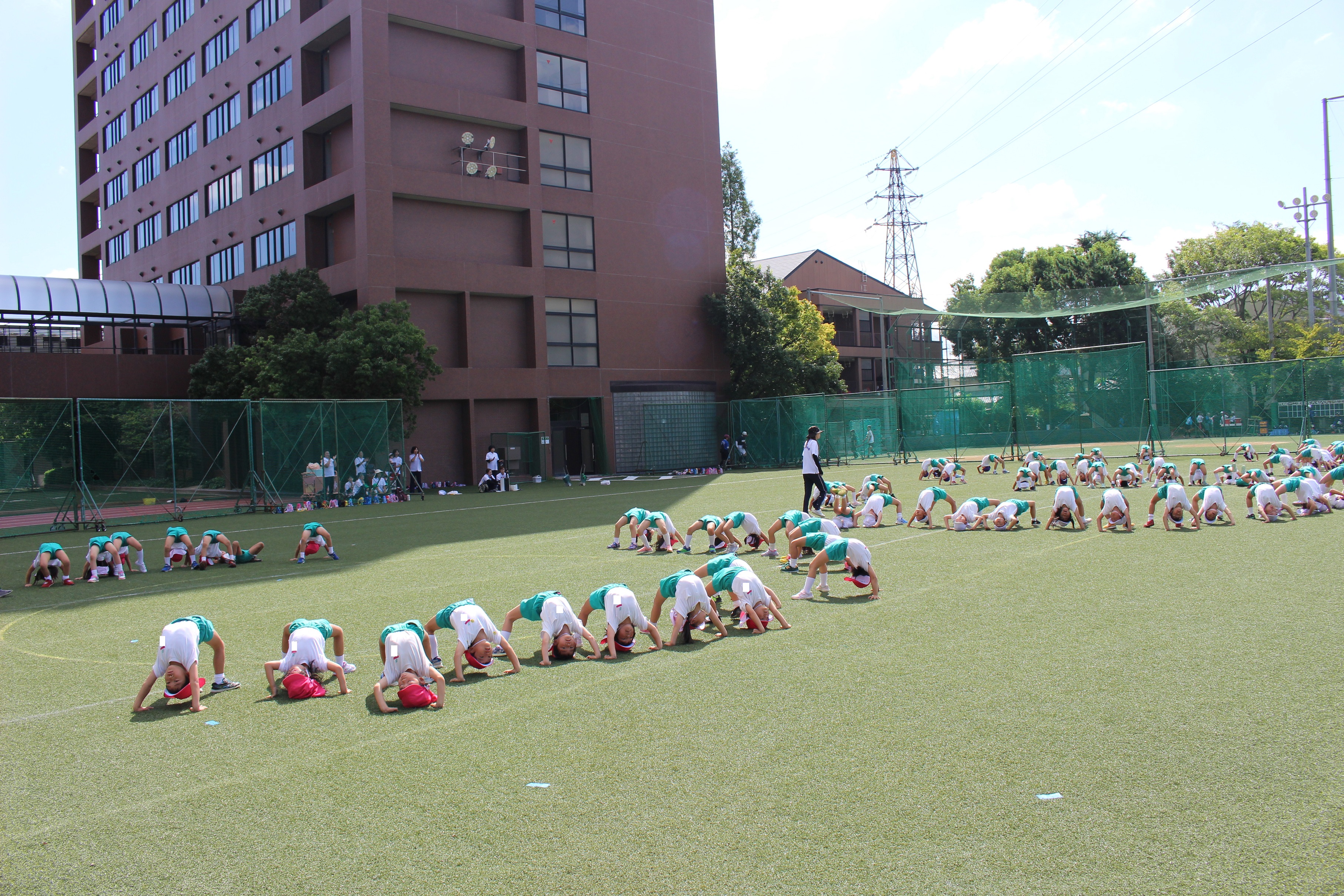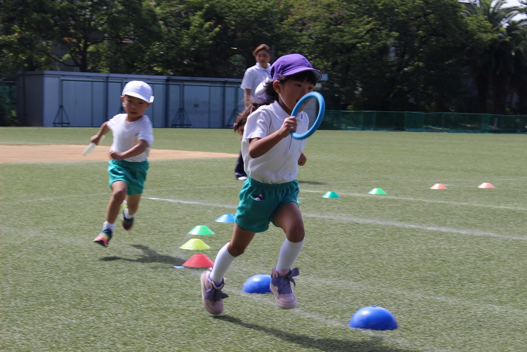 ひよこ組と一緒に広いグラウンドで「よーいドン!」を