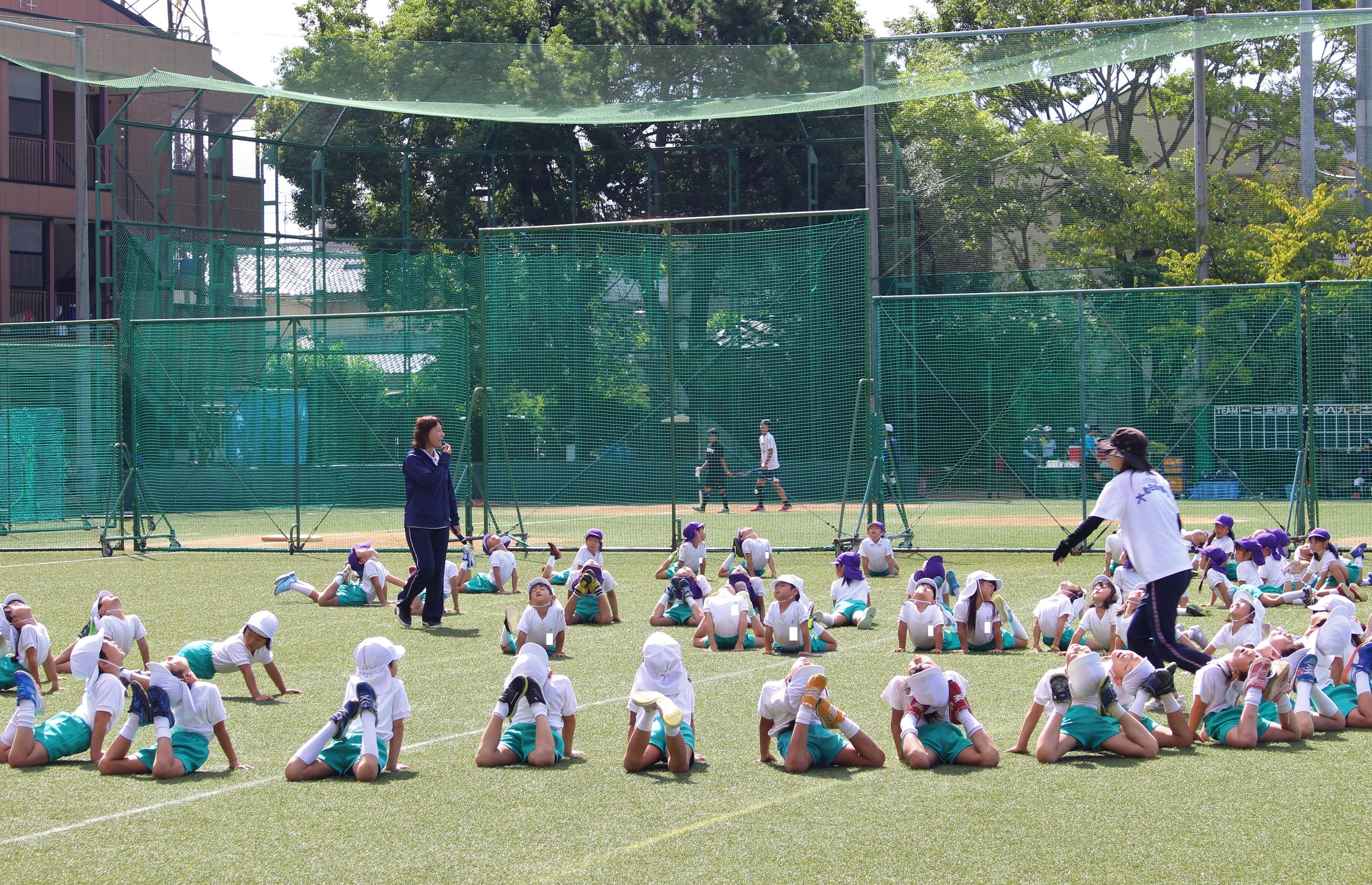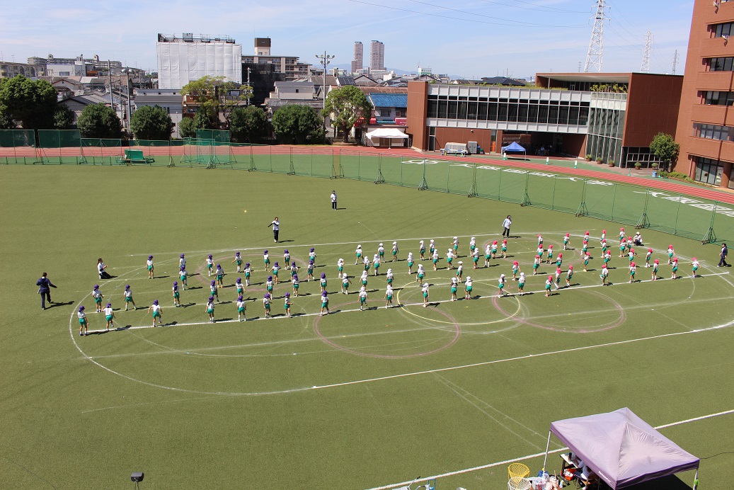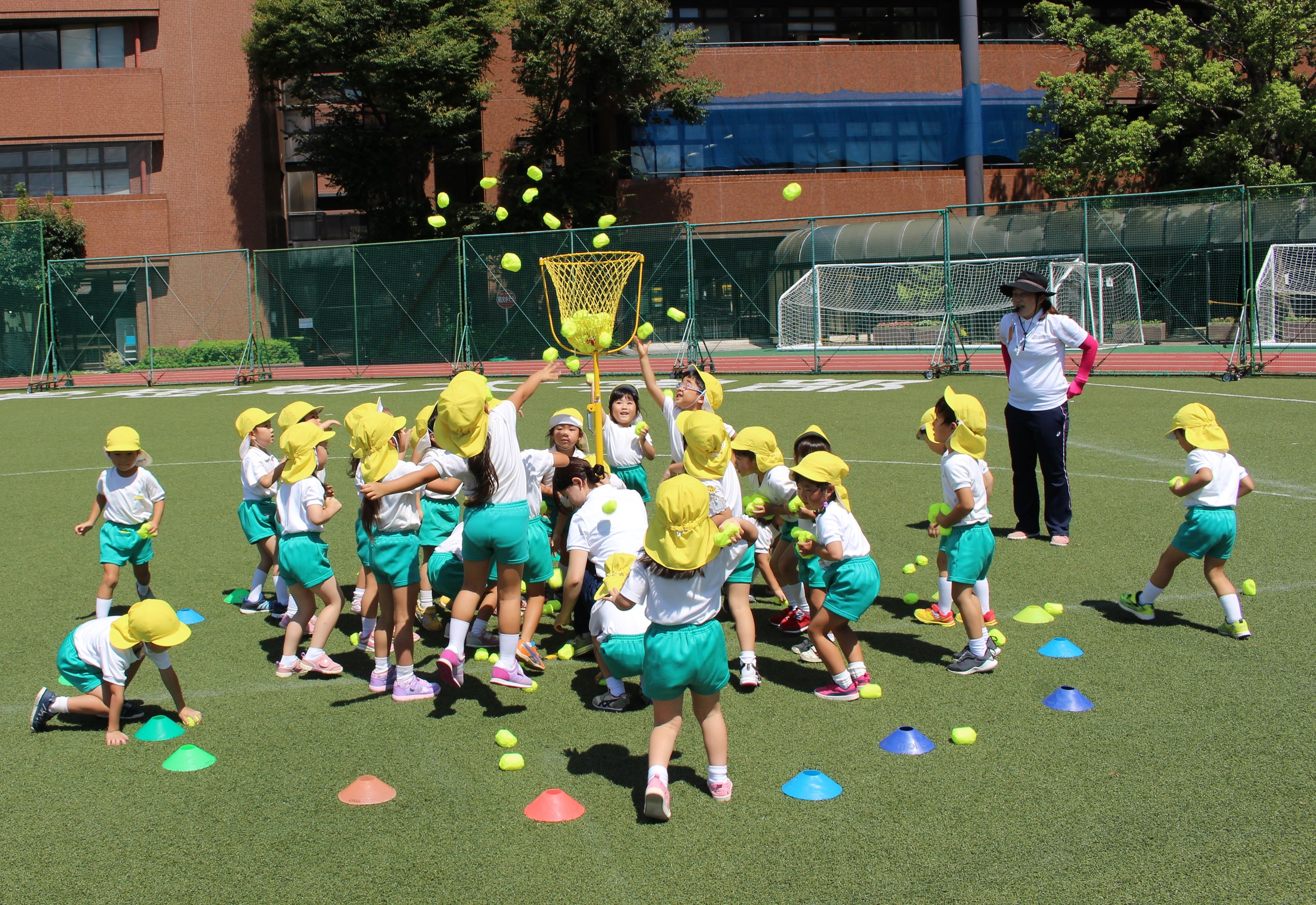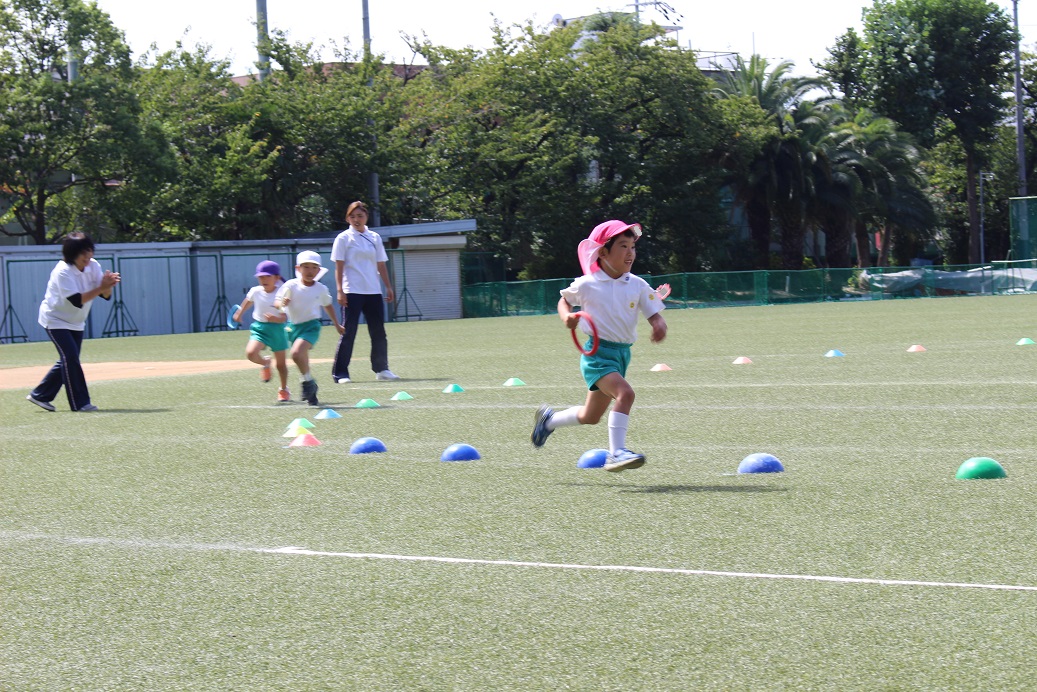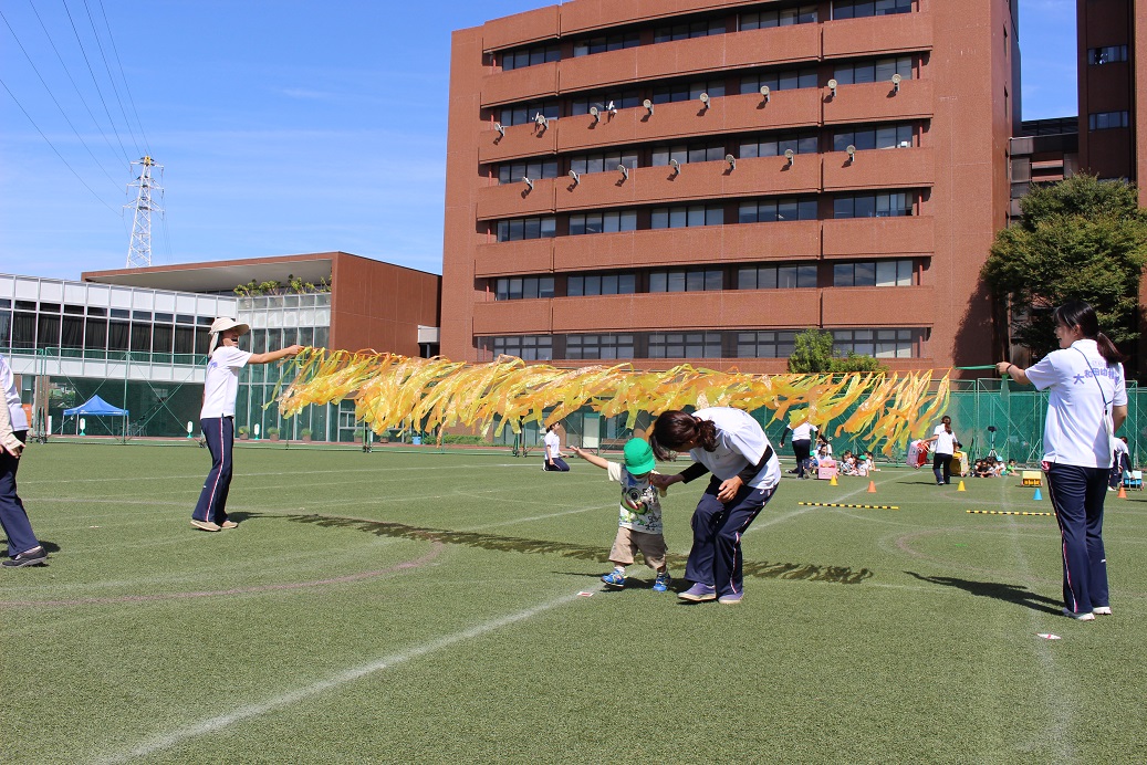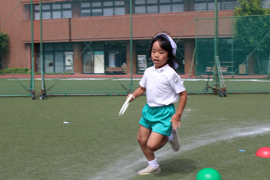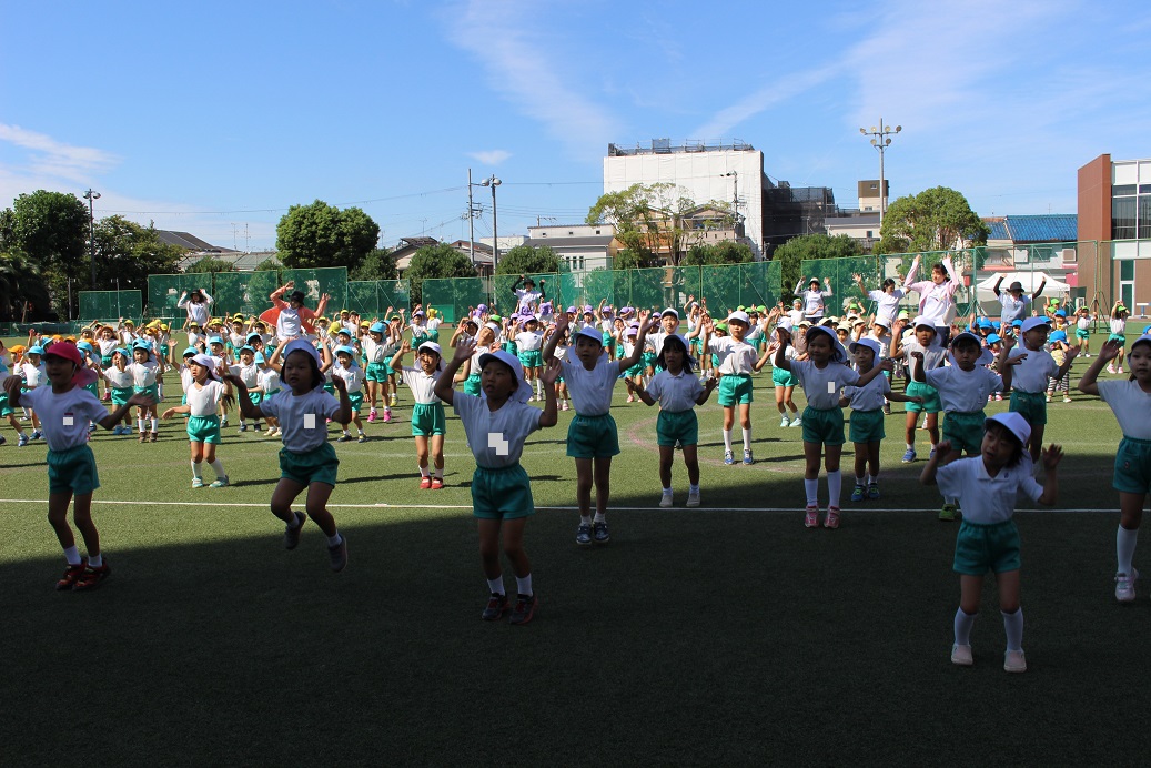 ひよこ組と一緒に広いグラウンドで「よーいドン!」を