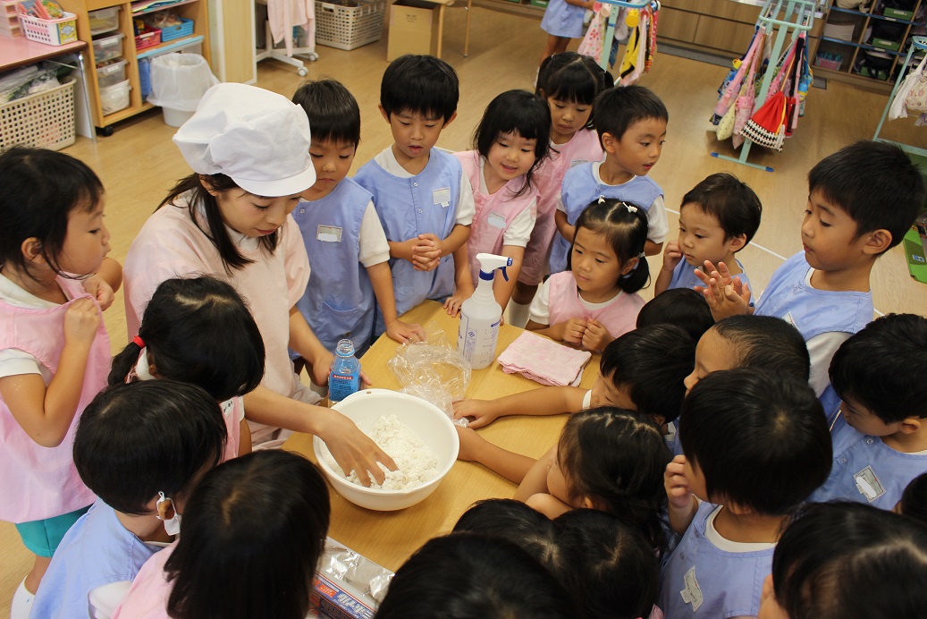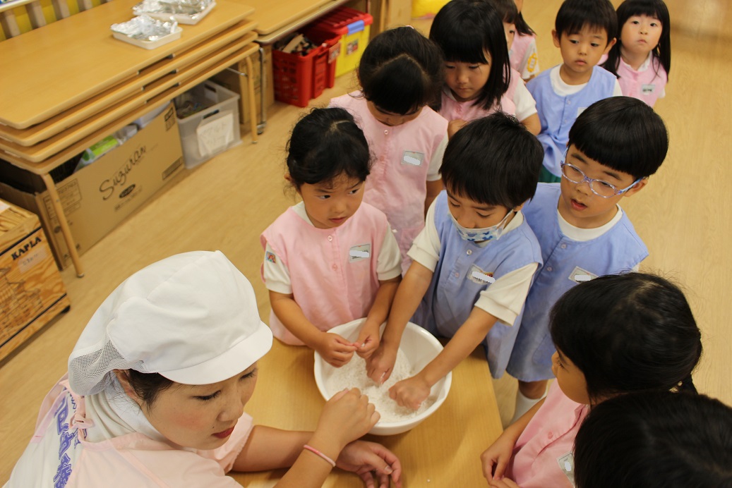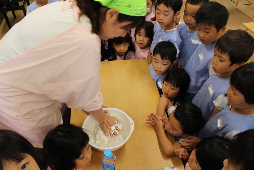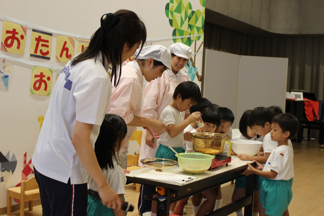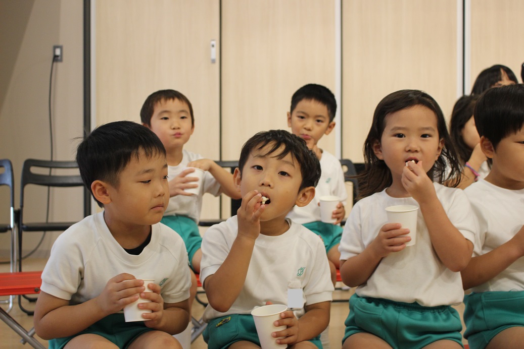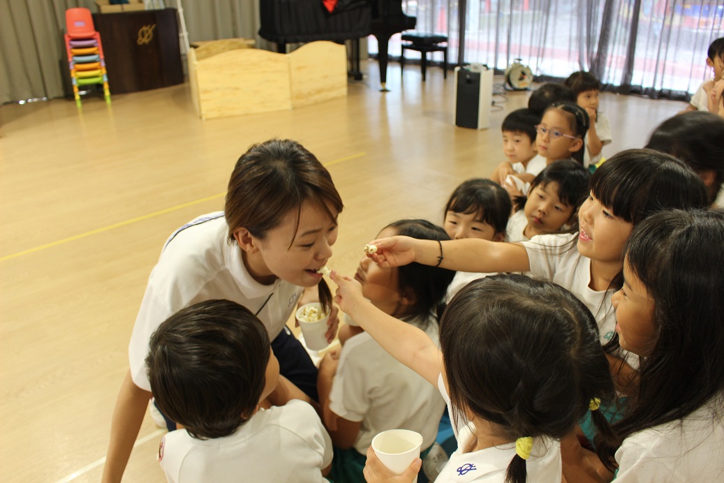 年中組の先生と、年中児4人がポップコーンを作ってくれました!