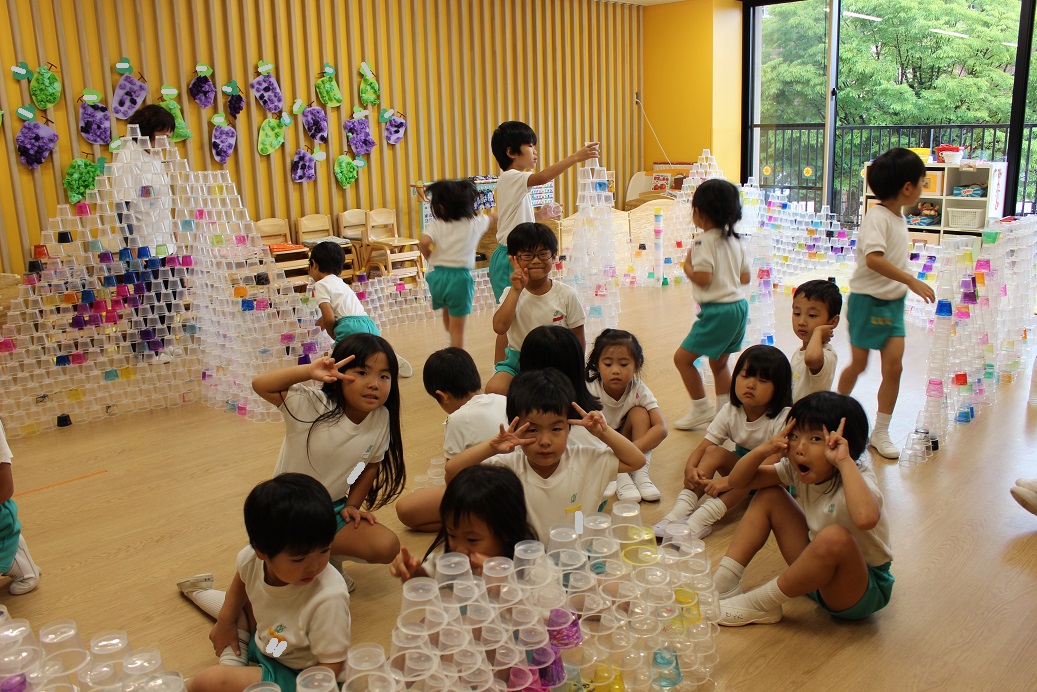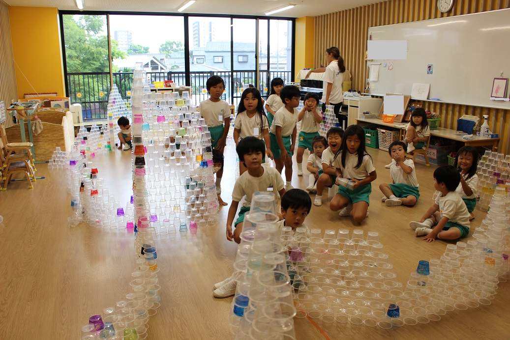 並べて、積み立てていくのは大変だったとおもいます。根気よくみんなでがんばったからですね!