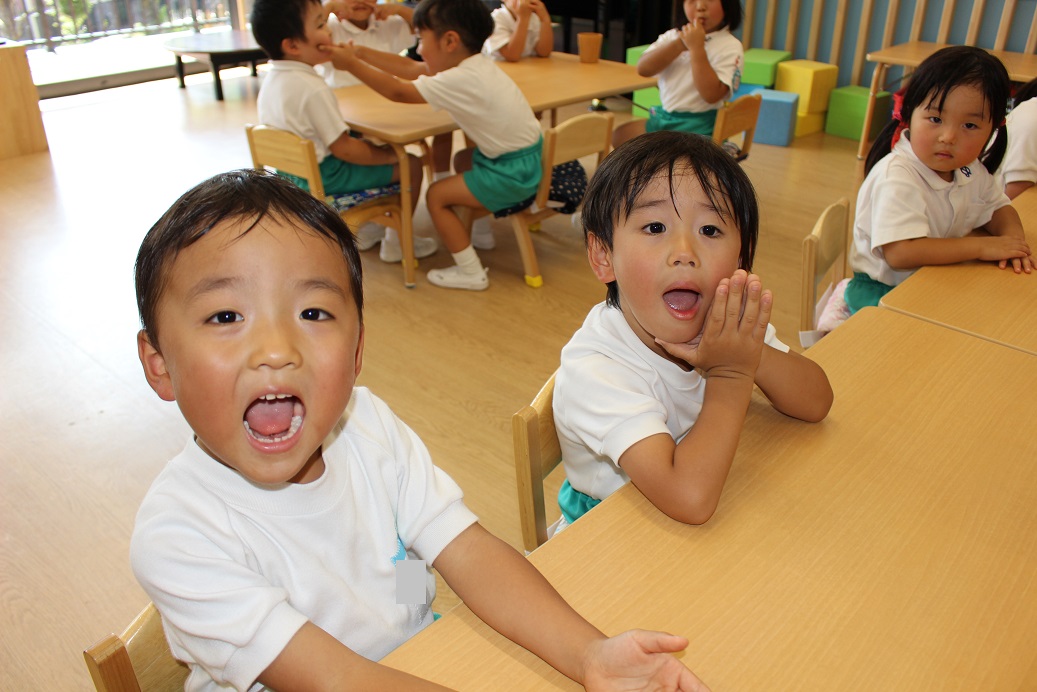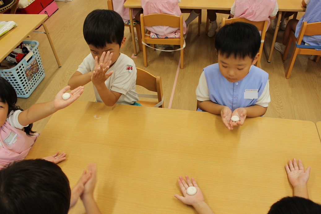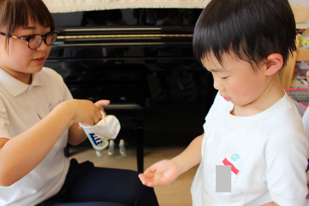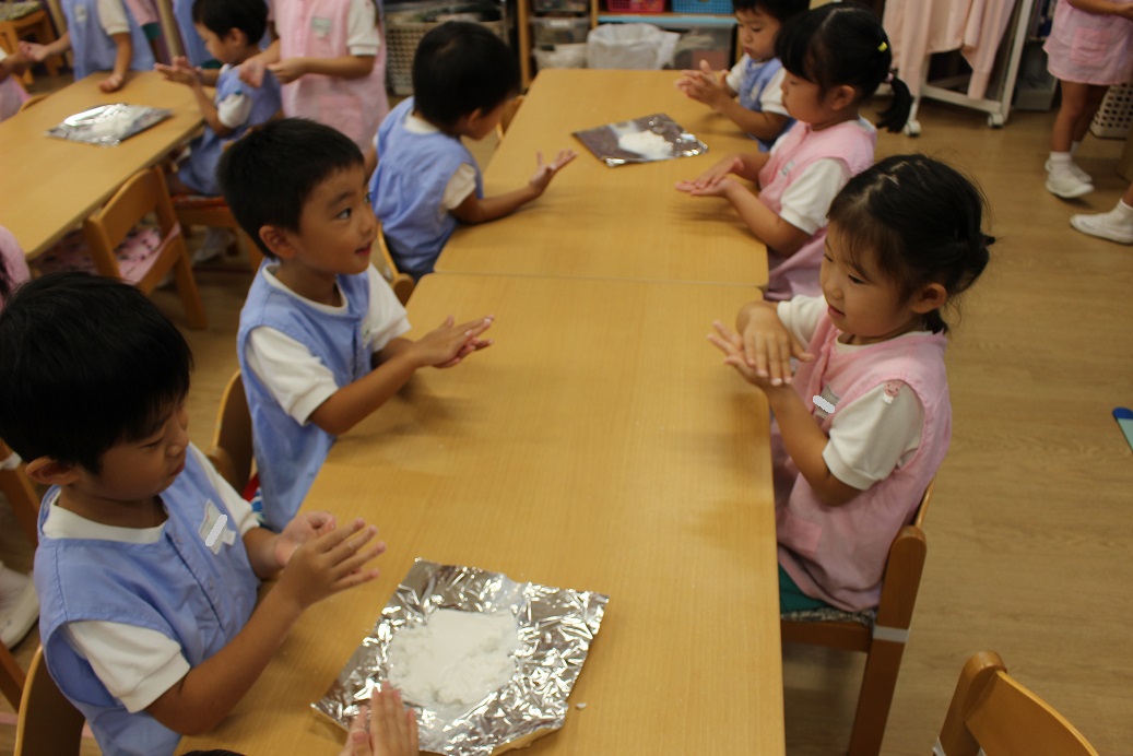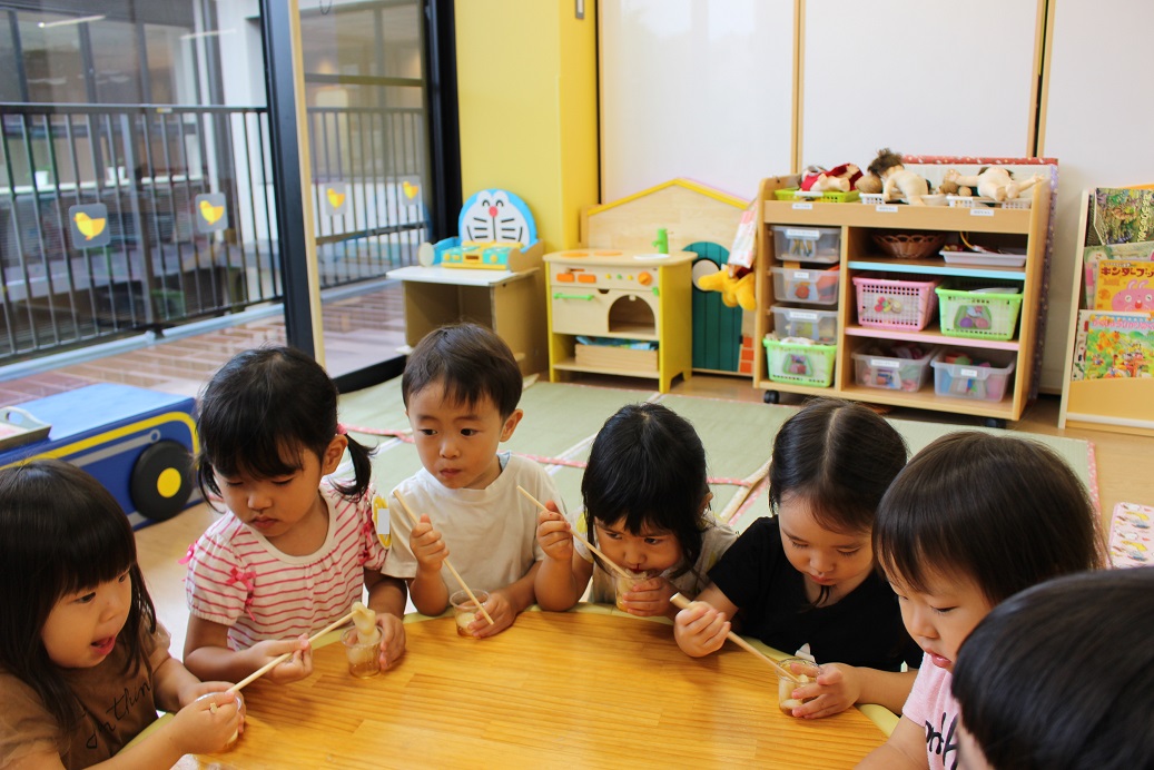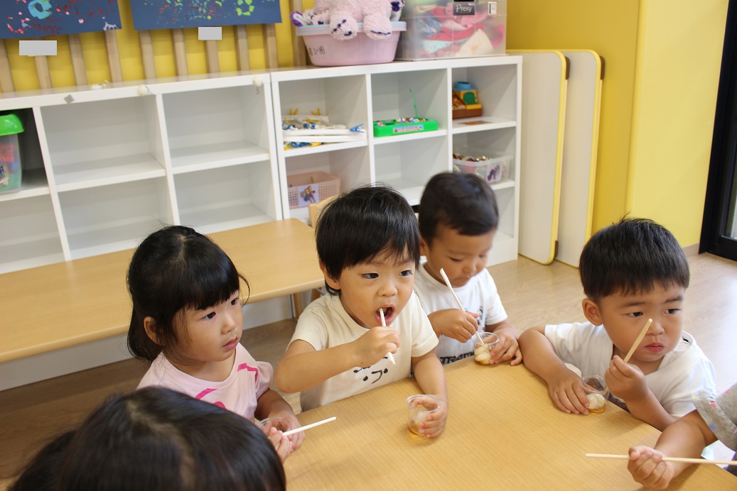 『せんせい 見て見て!ちっちゃい氷はいってるねん!』と嬉しそうに見せてくれました!