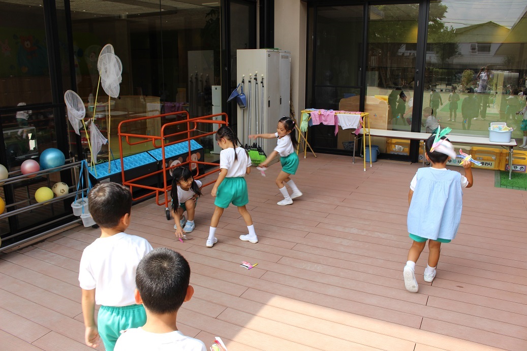 朝からトンボを飛ばして遊んでいたすずらん組の子どもたち!