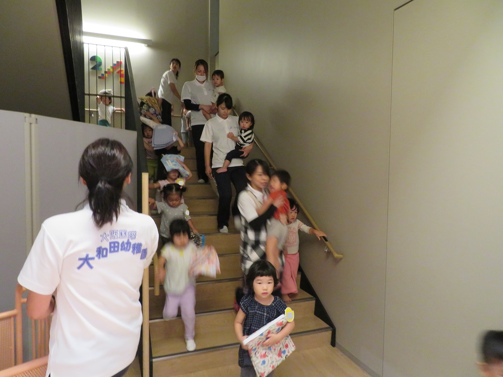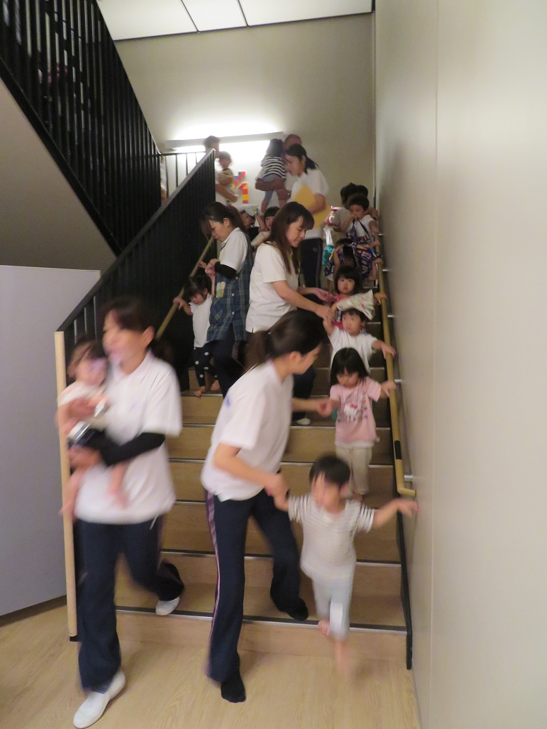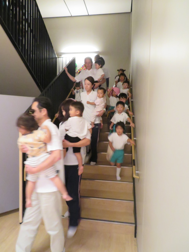 園長先生の放送を聞くと3号の子どもたちと先生は1階への移動を